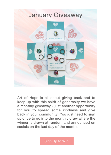 Thanks to the ongoing support of our loyal and wonderful customers we have been able to gift and donate over 40,000 Hearts of Hope since we started in 2020.