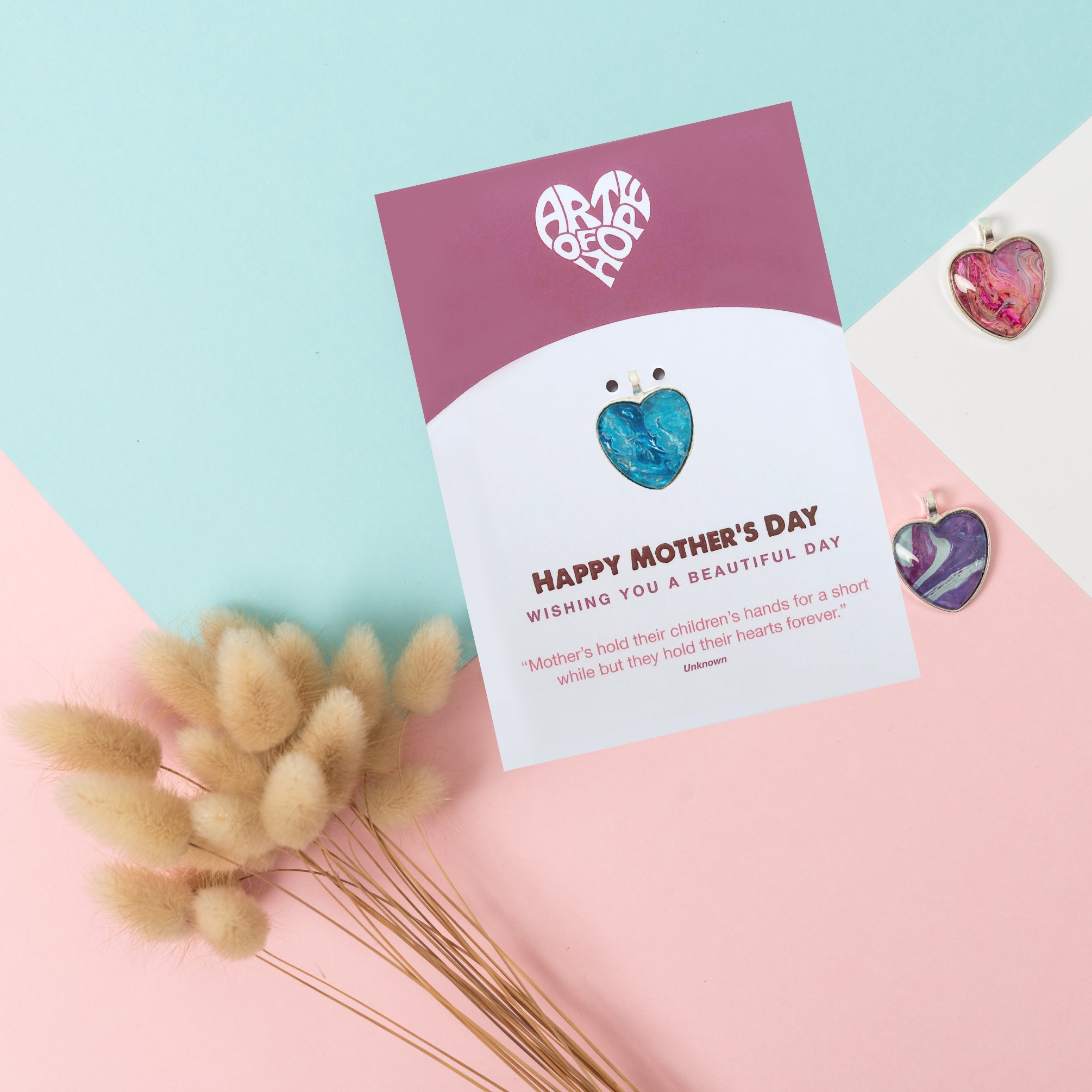 Celebrate this special day with some cherished mums. Save on this Bundle of Celebration for Mother's Day which includes 3 Hearts of Hope on rose gold embossed Happy Mother's Day cards. Each heart also has a keyring as well as a suede envelope gift pouch to make your gift extra special.