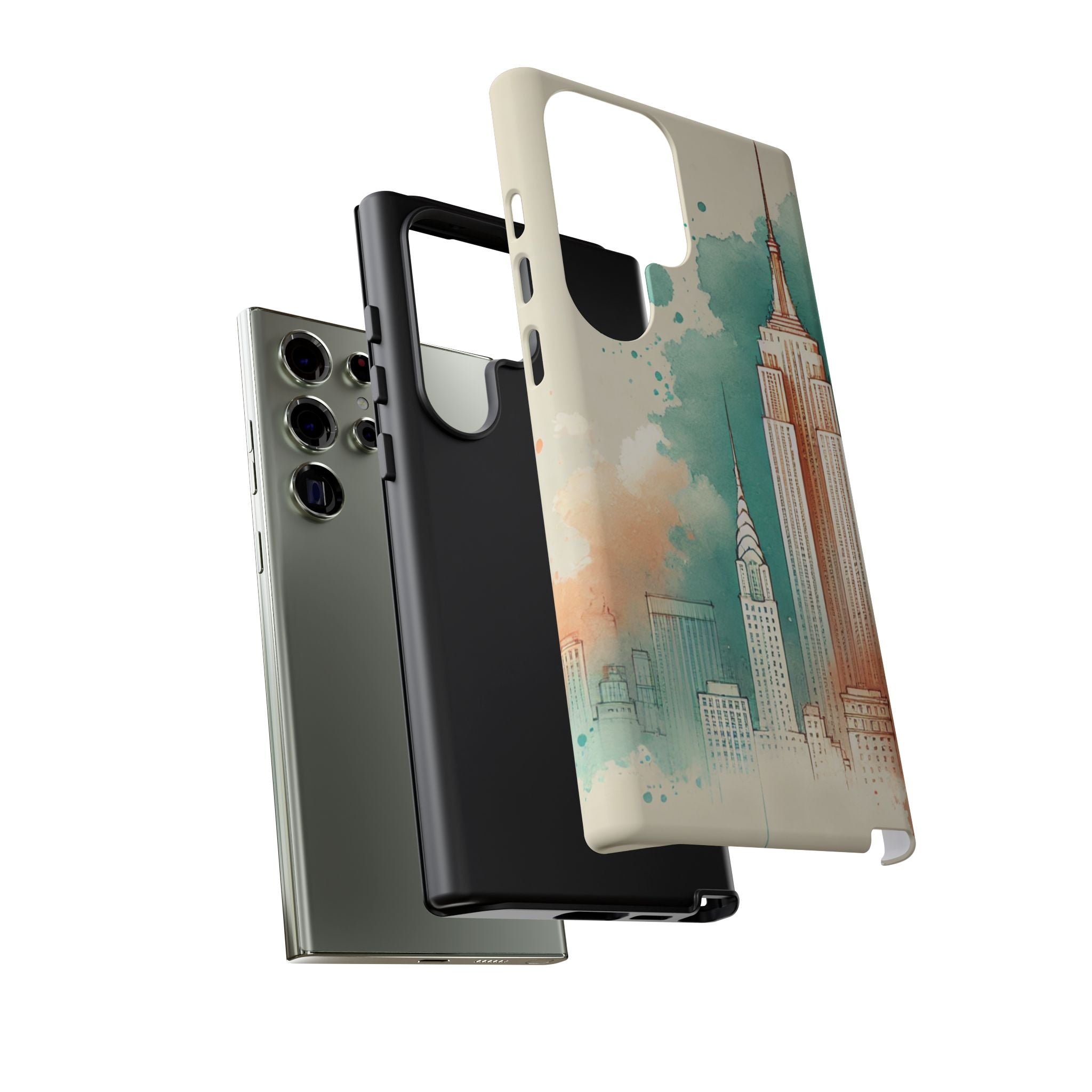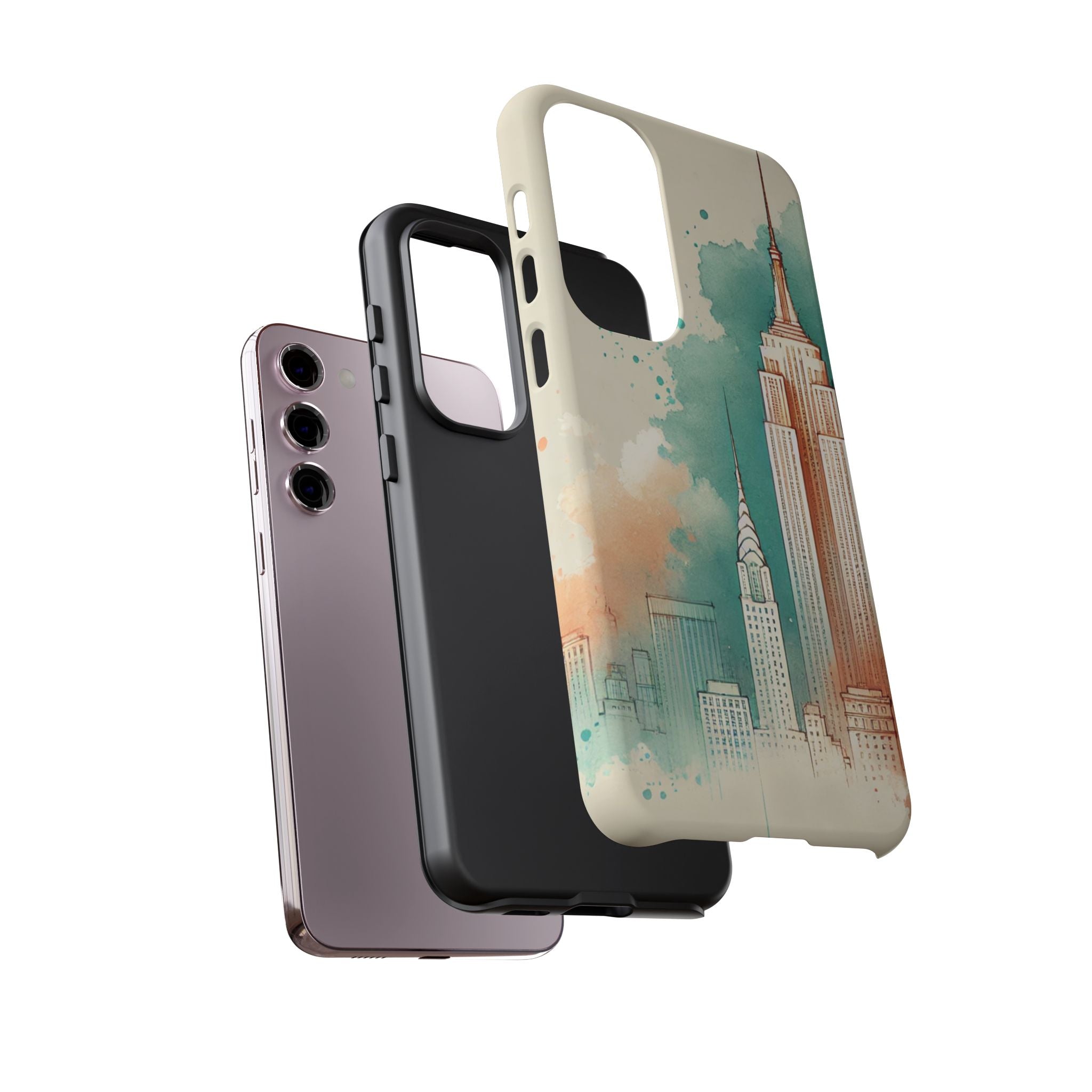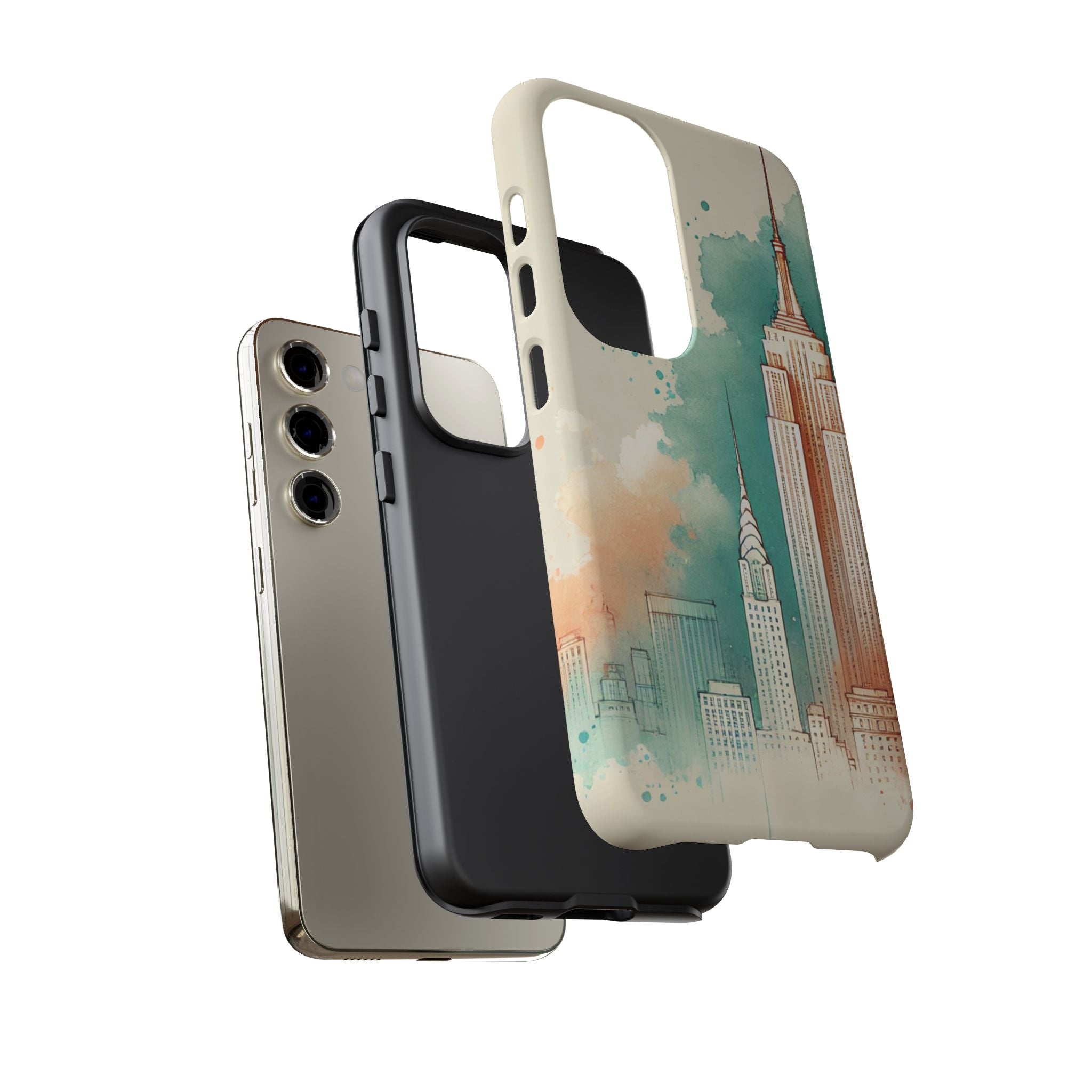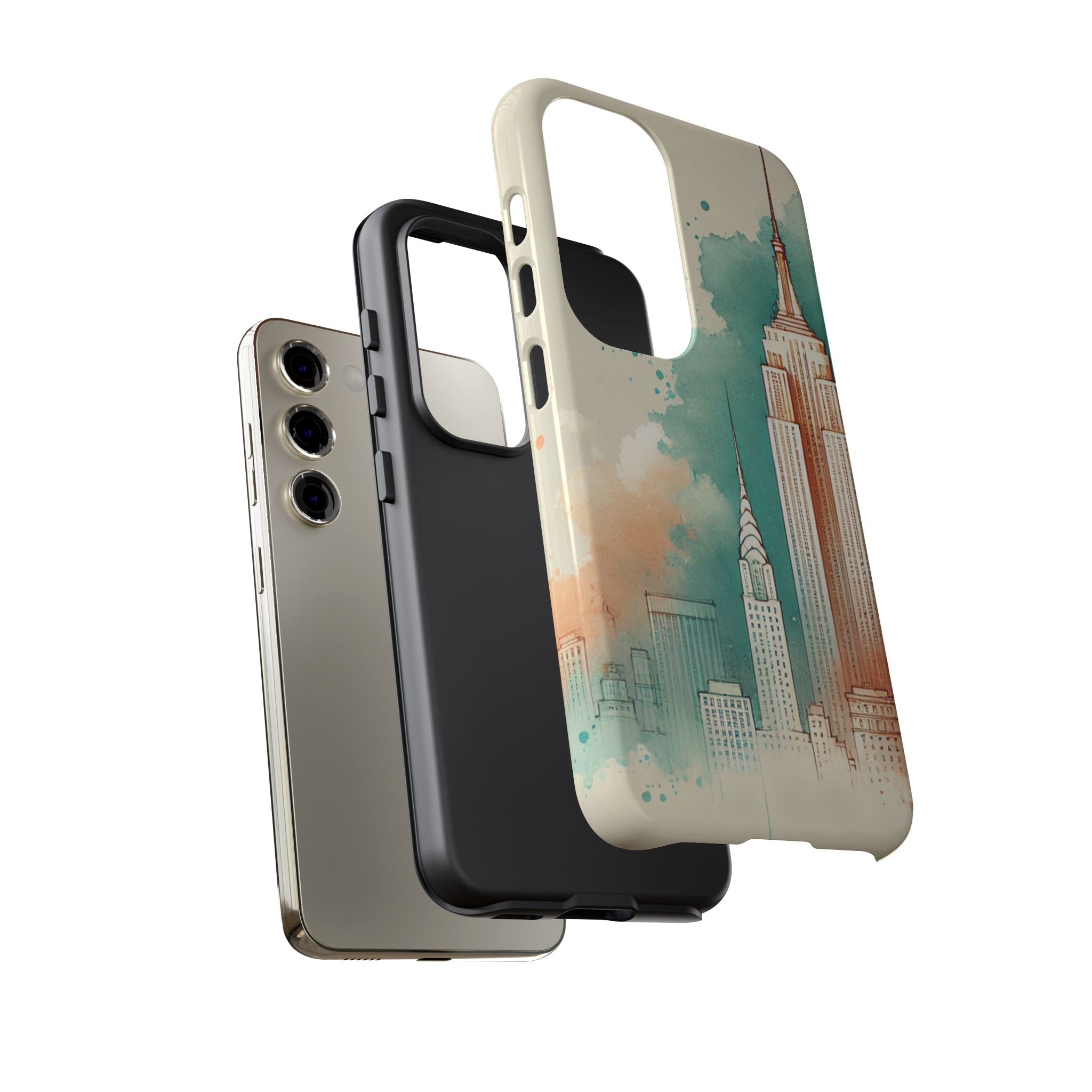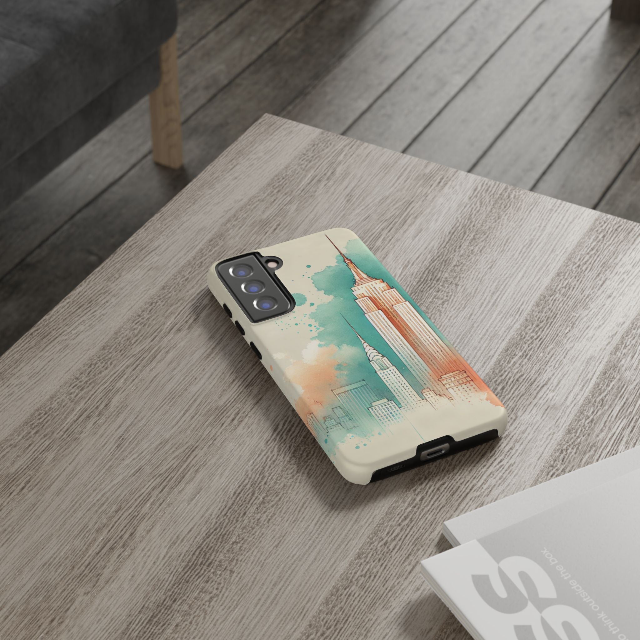 Experience the ultimate phone protection with the Tough Case - New York. This beautiful case features a stunning watercolor design of New York, highlighting the towering Empire State Building in bold hues, capturing the spirit and energy of the city that never sleeps. The design extends around the entire case and is sure to make a statement while protecting your phone with style.