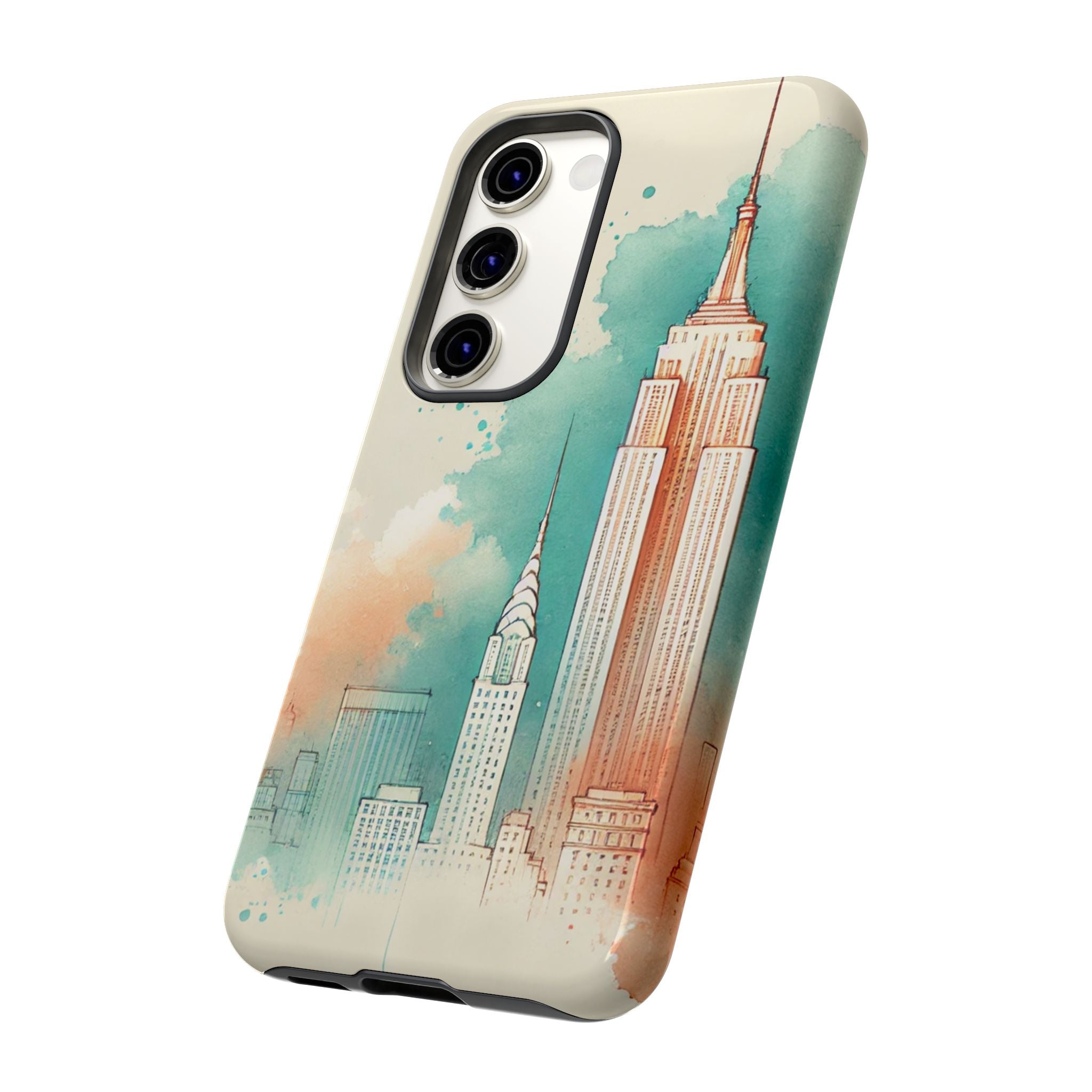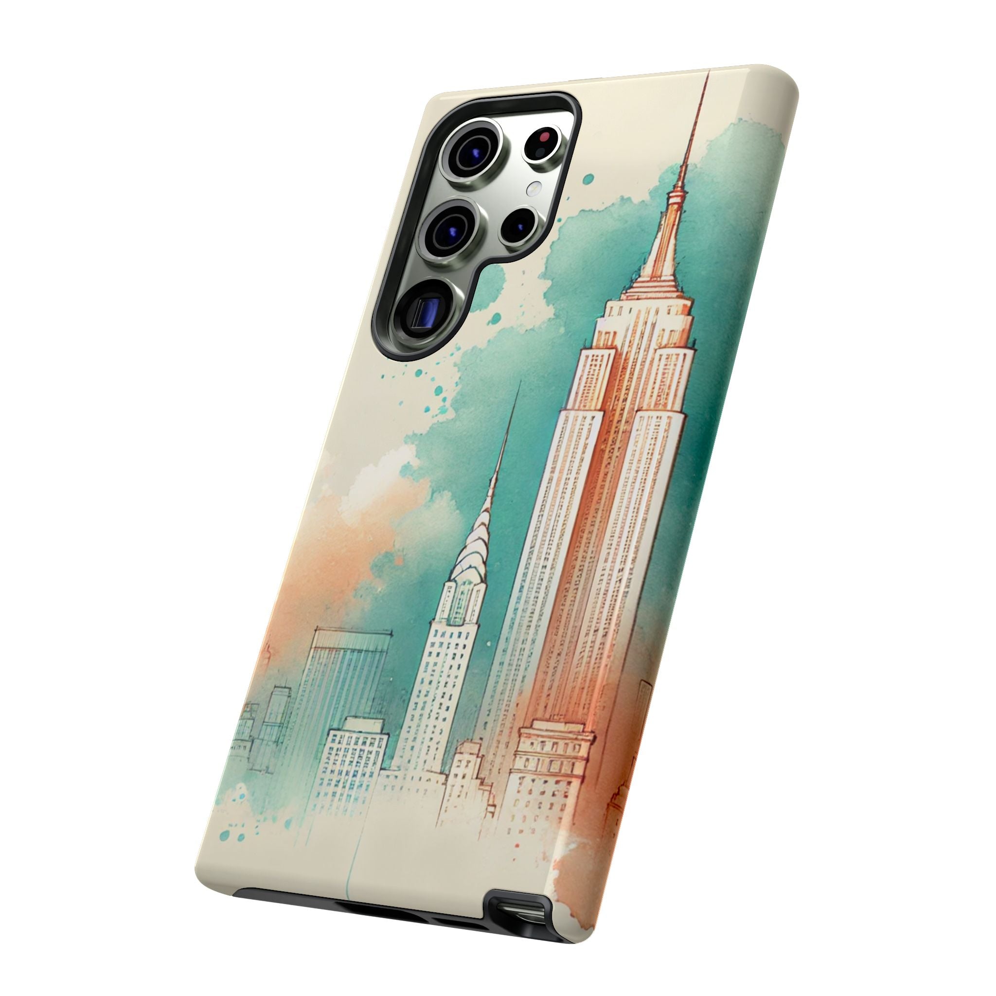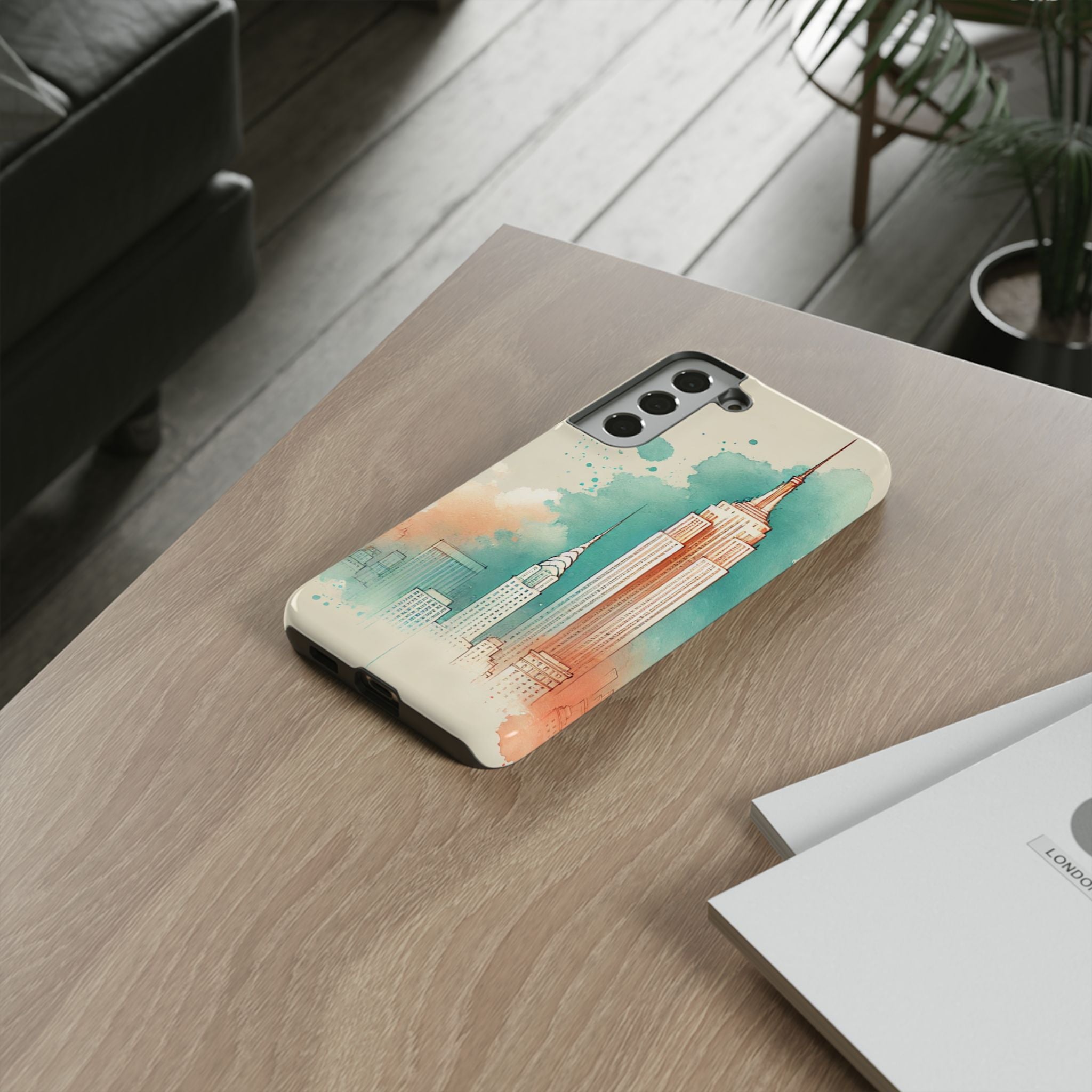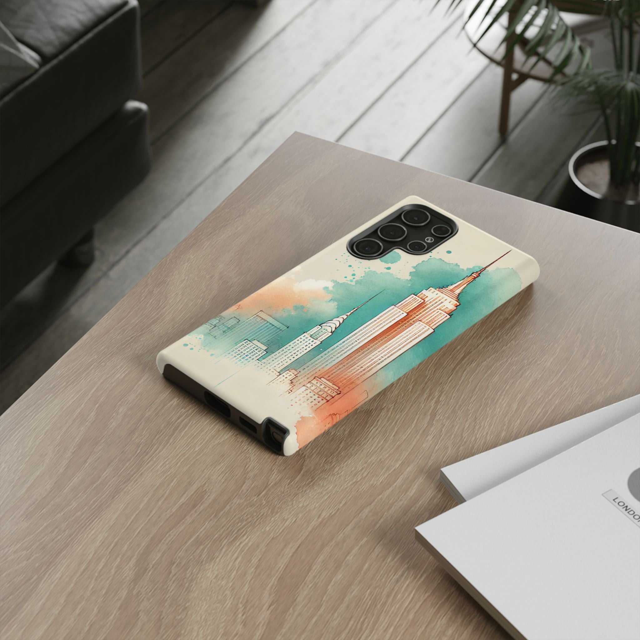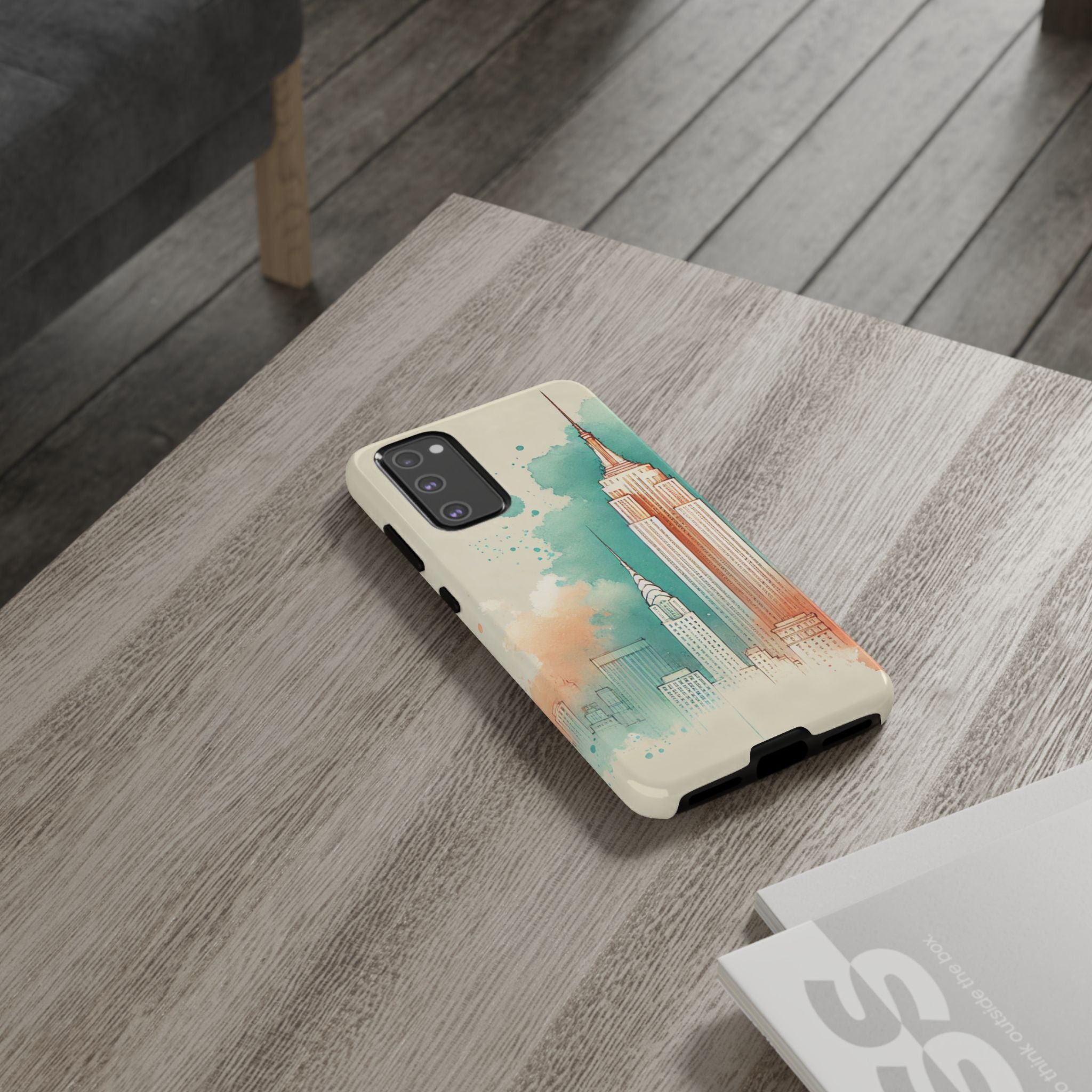 Experience the ultimate phone protection with the Tough Case - New York. This beautiful case features a stunning watercolor design of New York, highlighting the towering Empire State Building in bold hues, capturing the spirit and energy of the city that never sleeps. The design extends around the entire case and is sure to make a statement while protecting your phone with style.