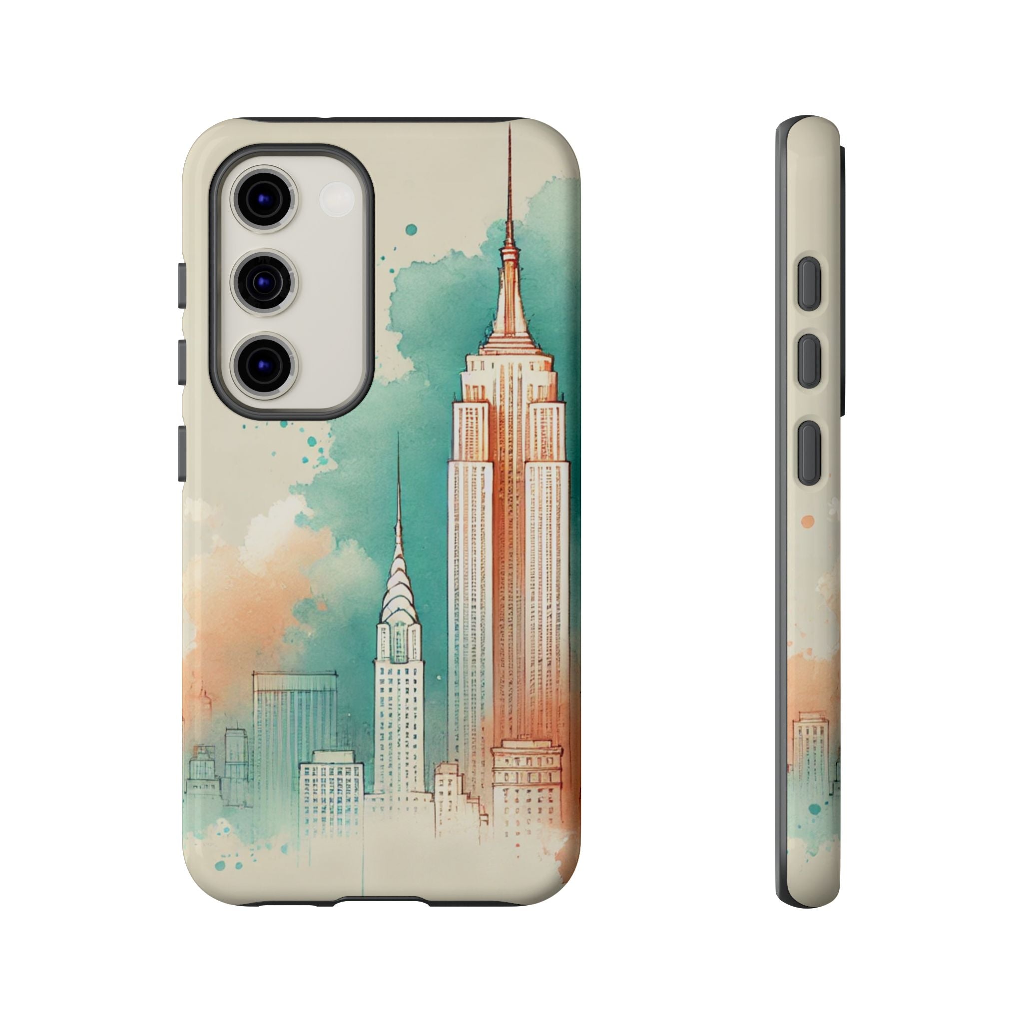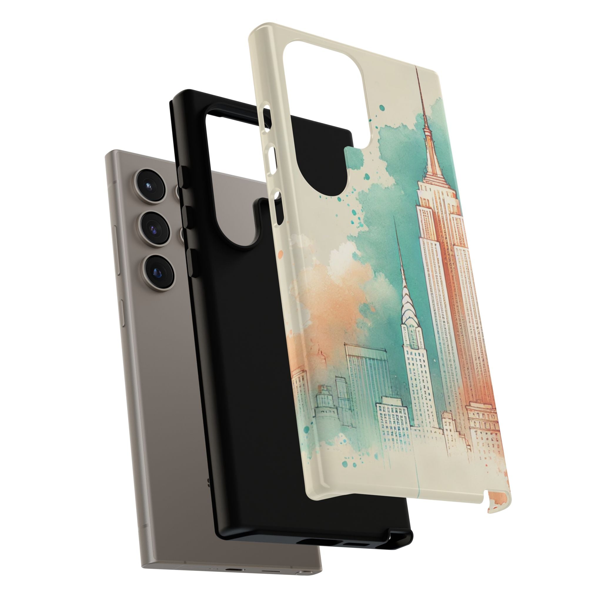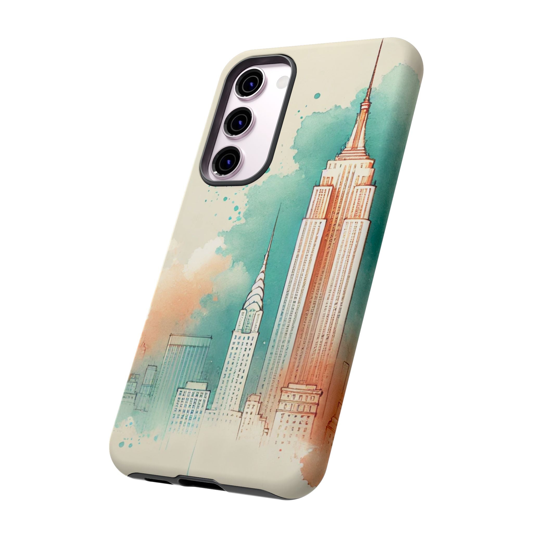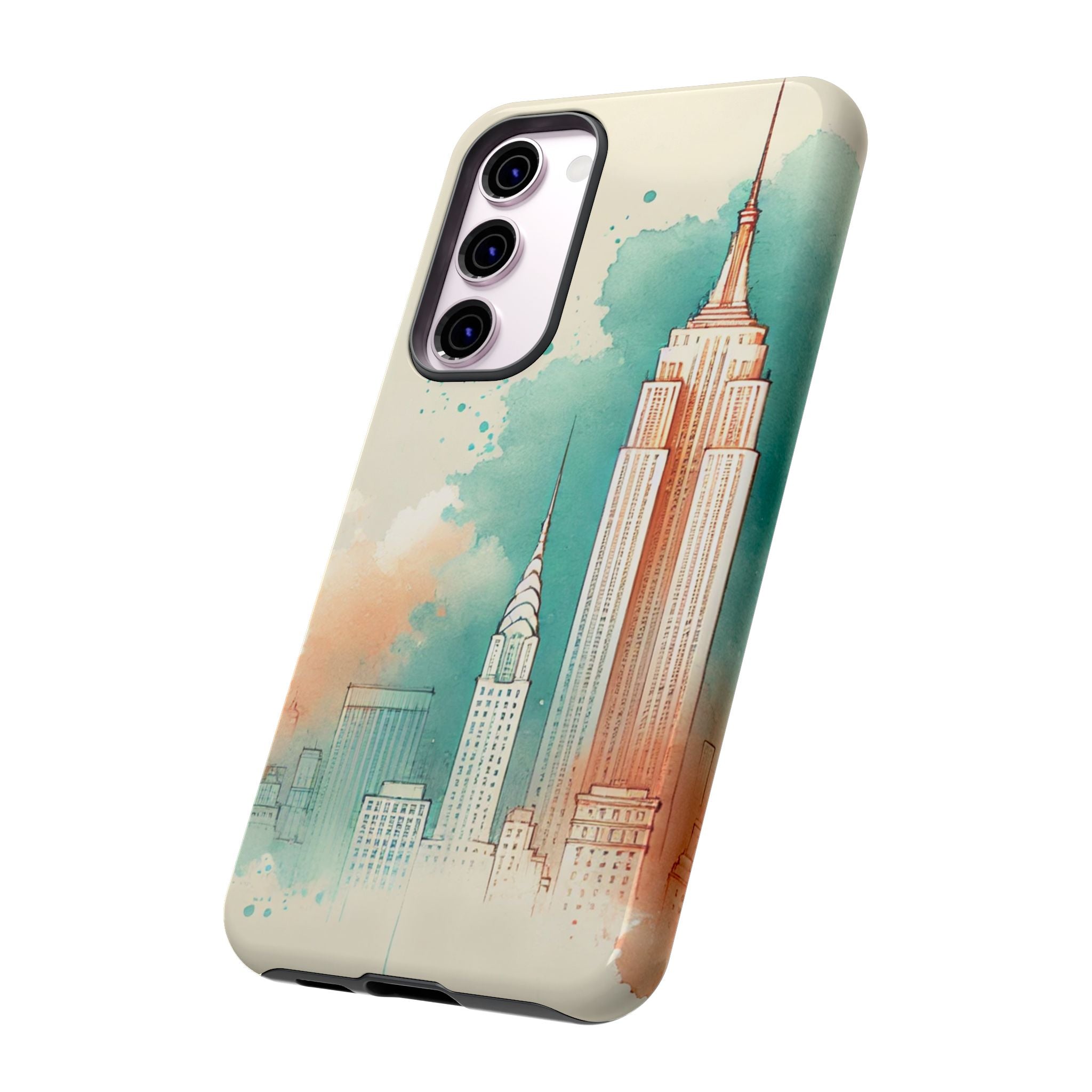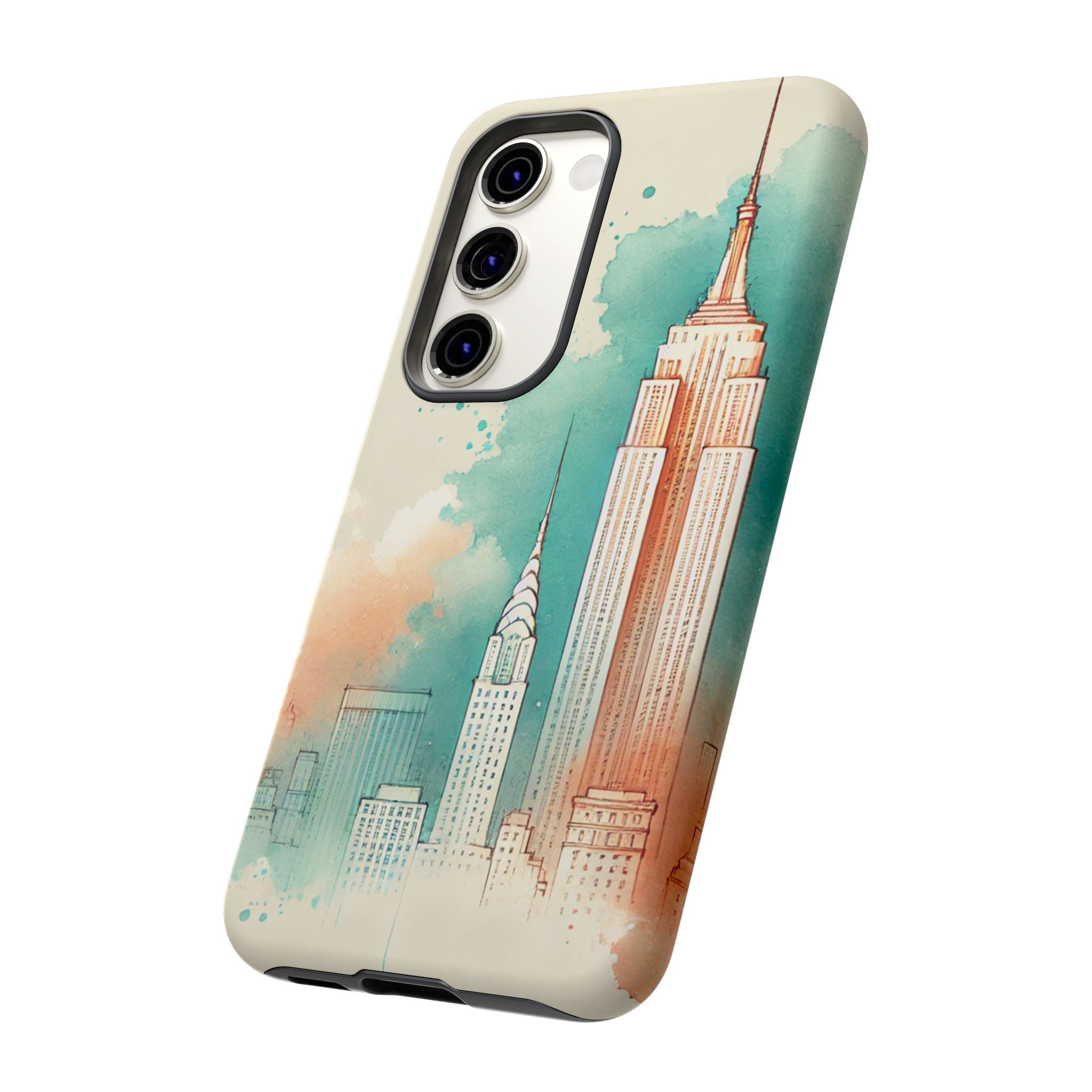 Experience the ultimate phone protection with the Tough Case - New York. This beautiful case features a stunning watercolor design of New York, highlighting the towering Empire State Building in bold hues, capturing the spirit and energy of the city that never sleeps. The design extends around the entire case and is sure to make a statement while protecting your phone with style.