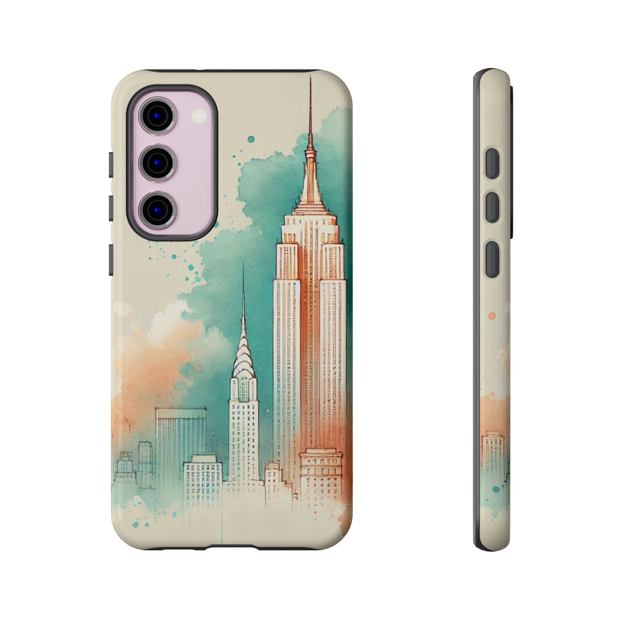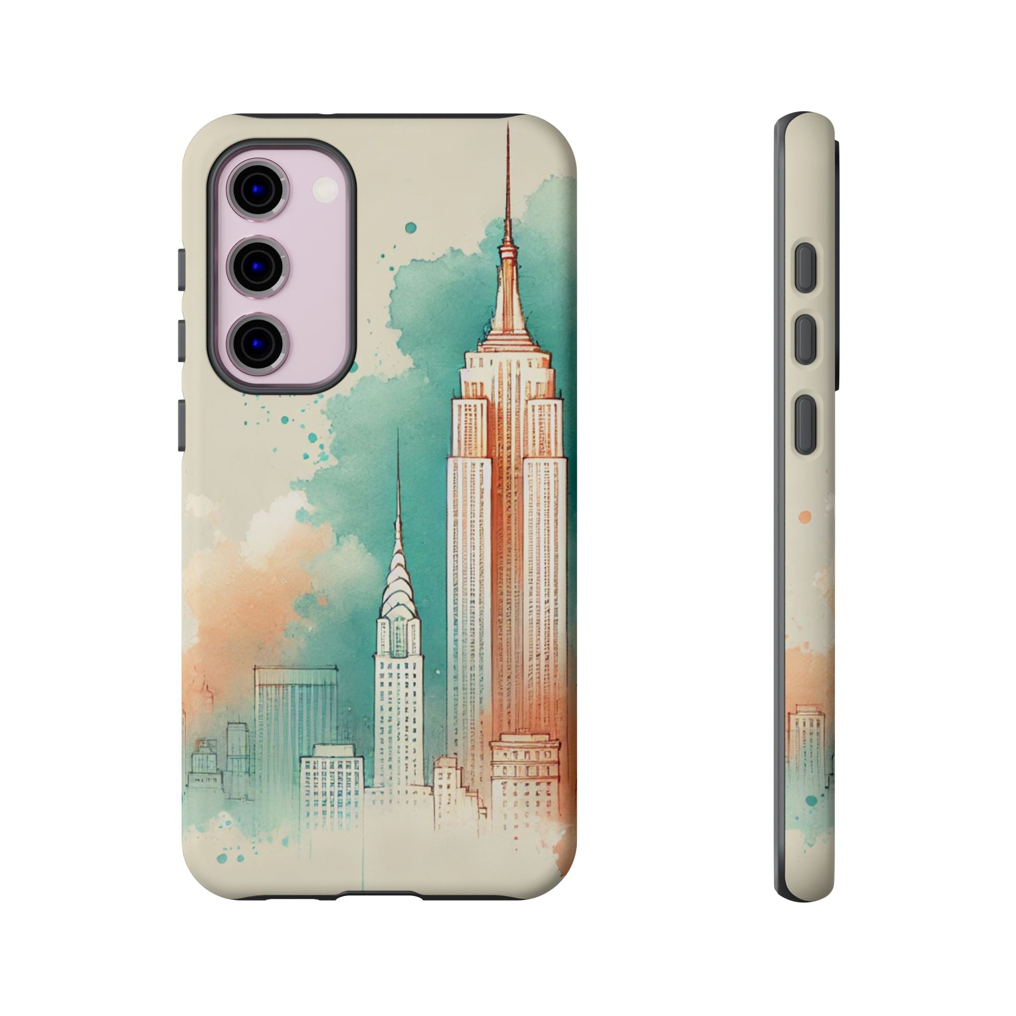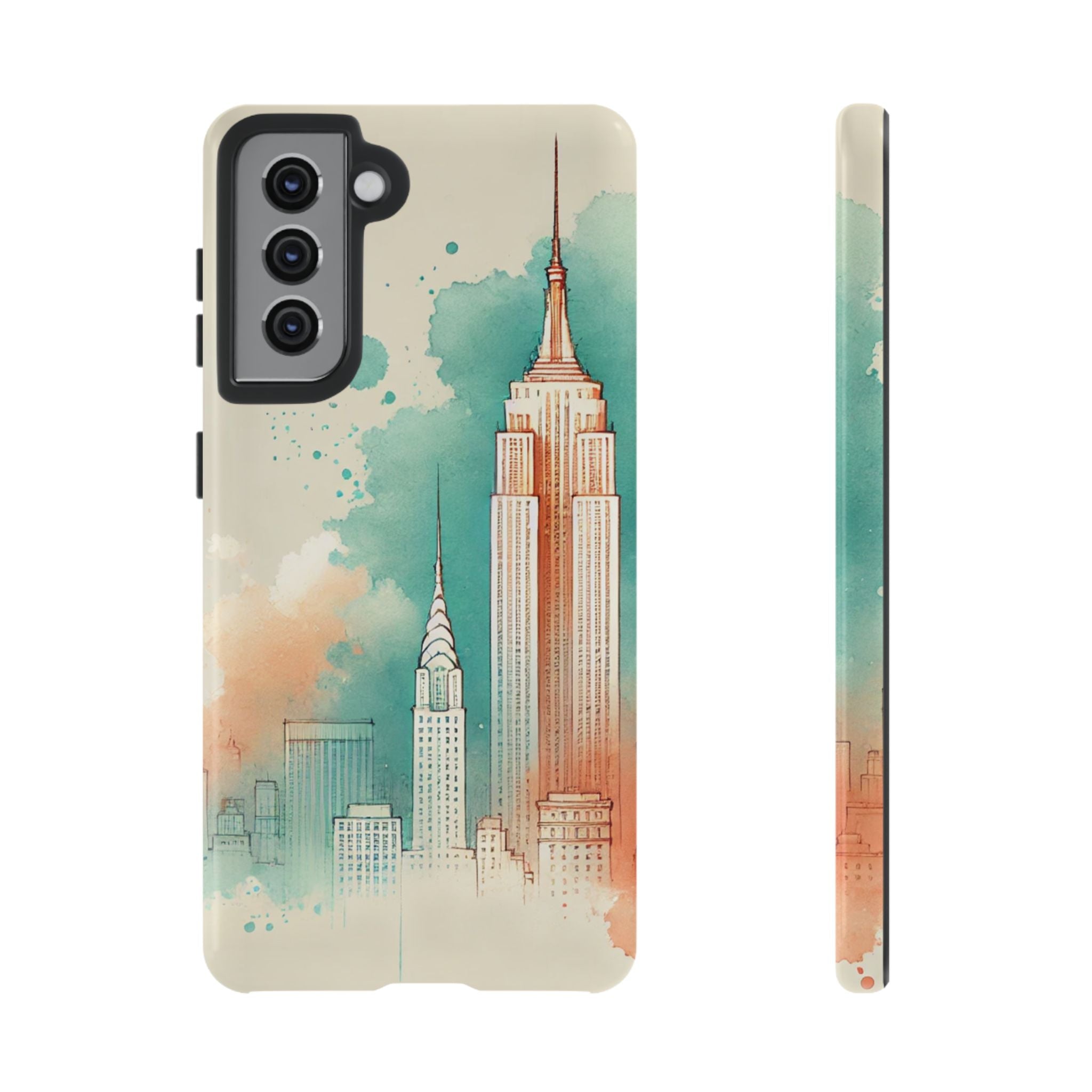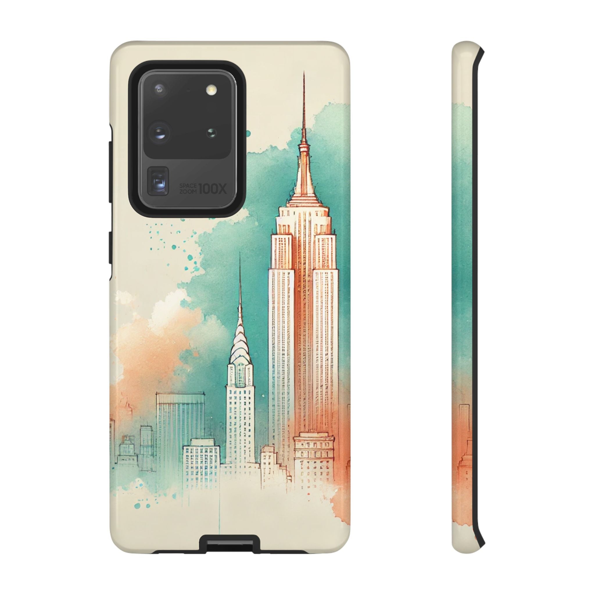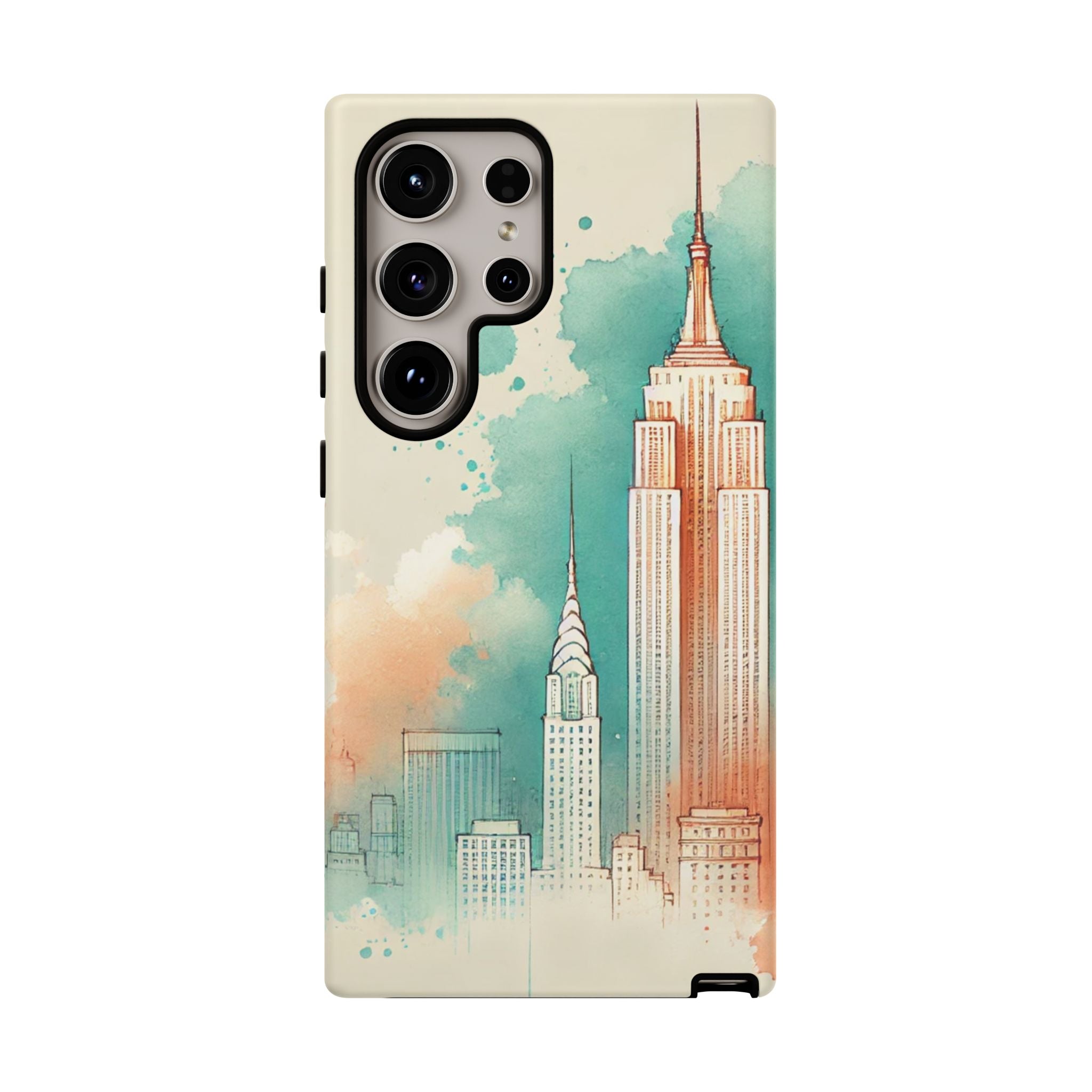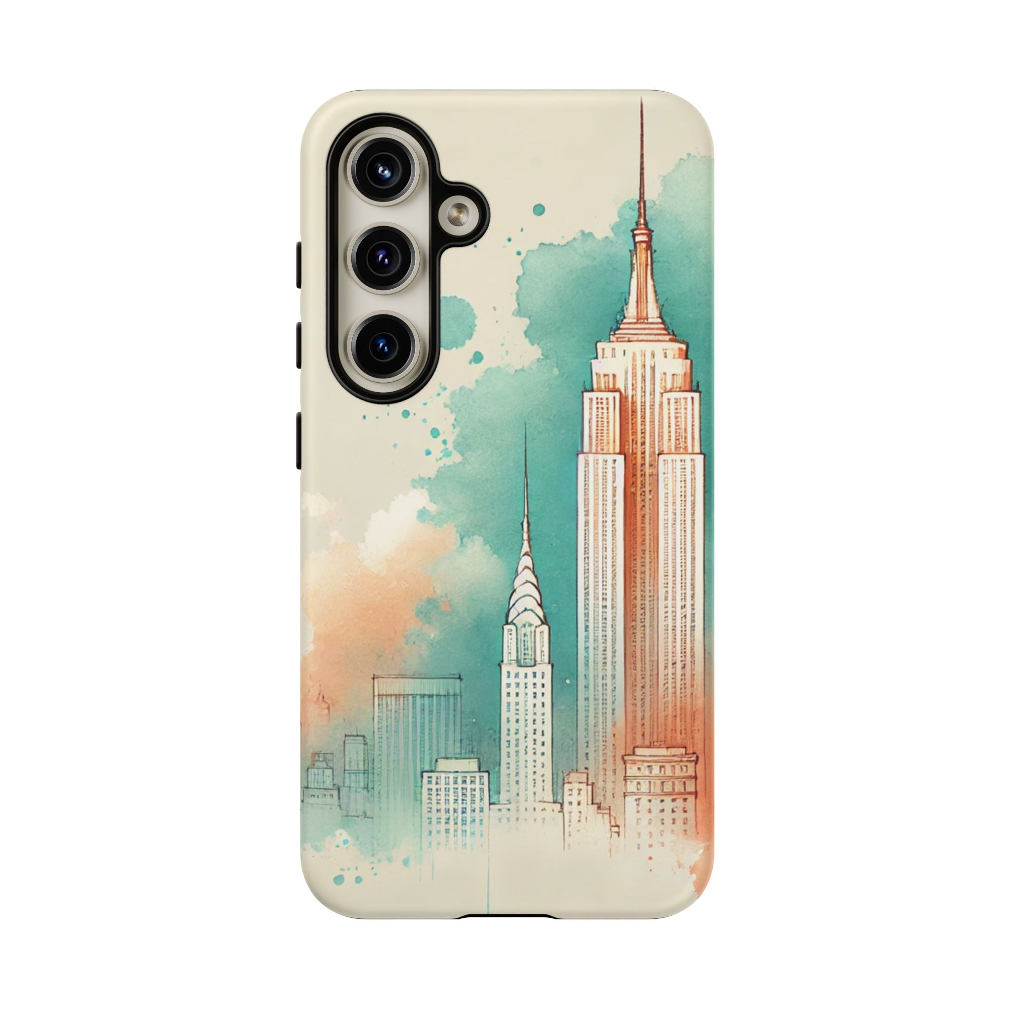 Experience the ultimate phone protection with the Tough Case - New York. This beautiful case features a stunning watercolor design of New York, highlighting the towering Empire State Building in bold hues, capturing the spirit and energy of the city that never sleeps. The design extends around the entire case and is sure to make a statement while protecting your phone with style.
