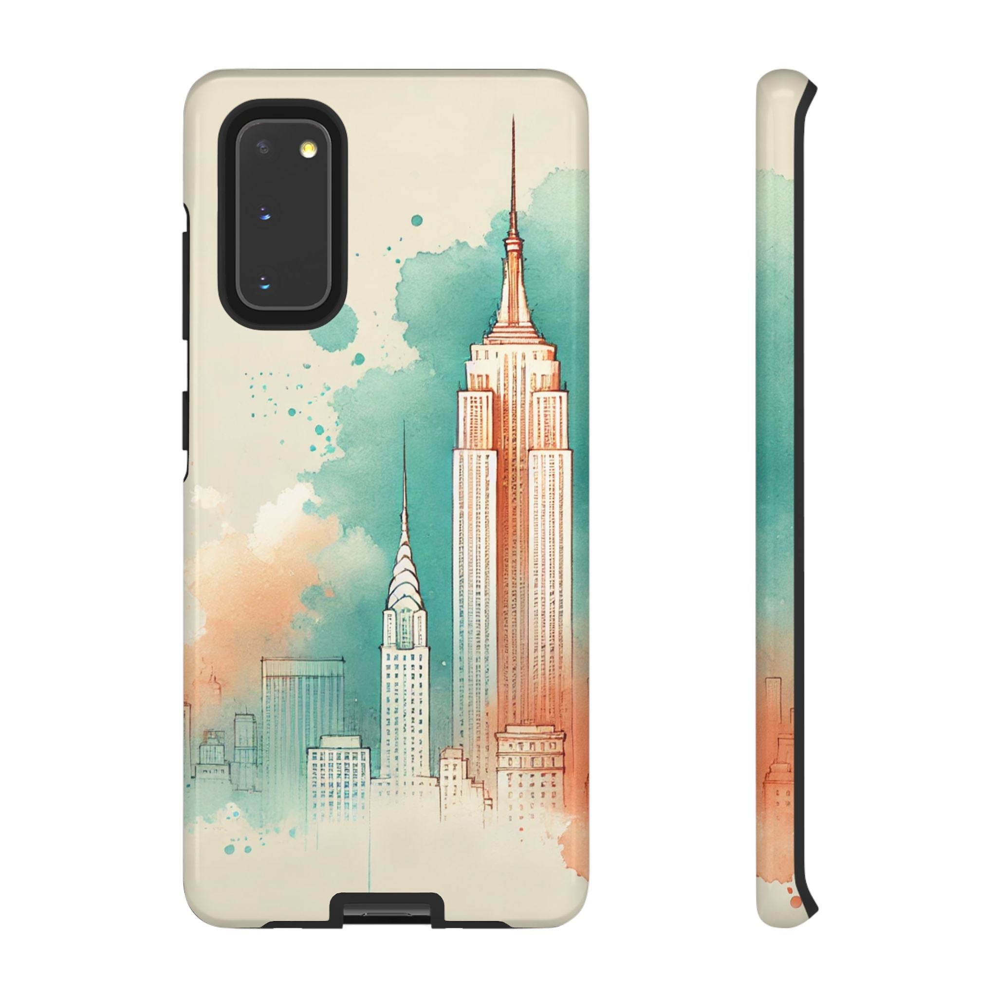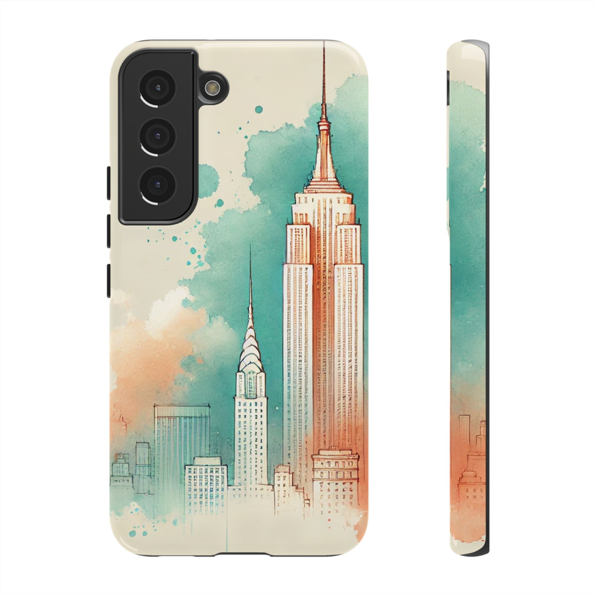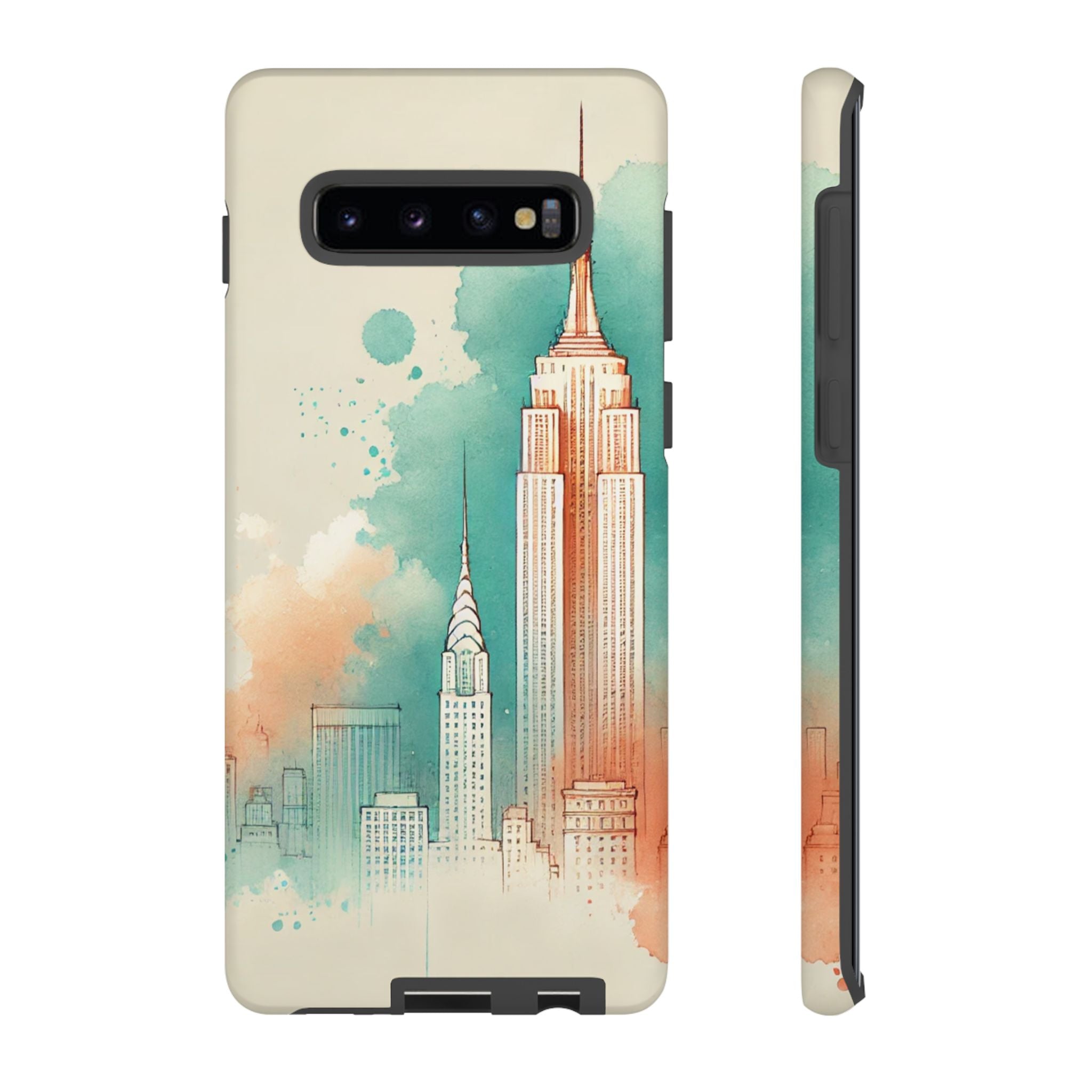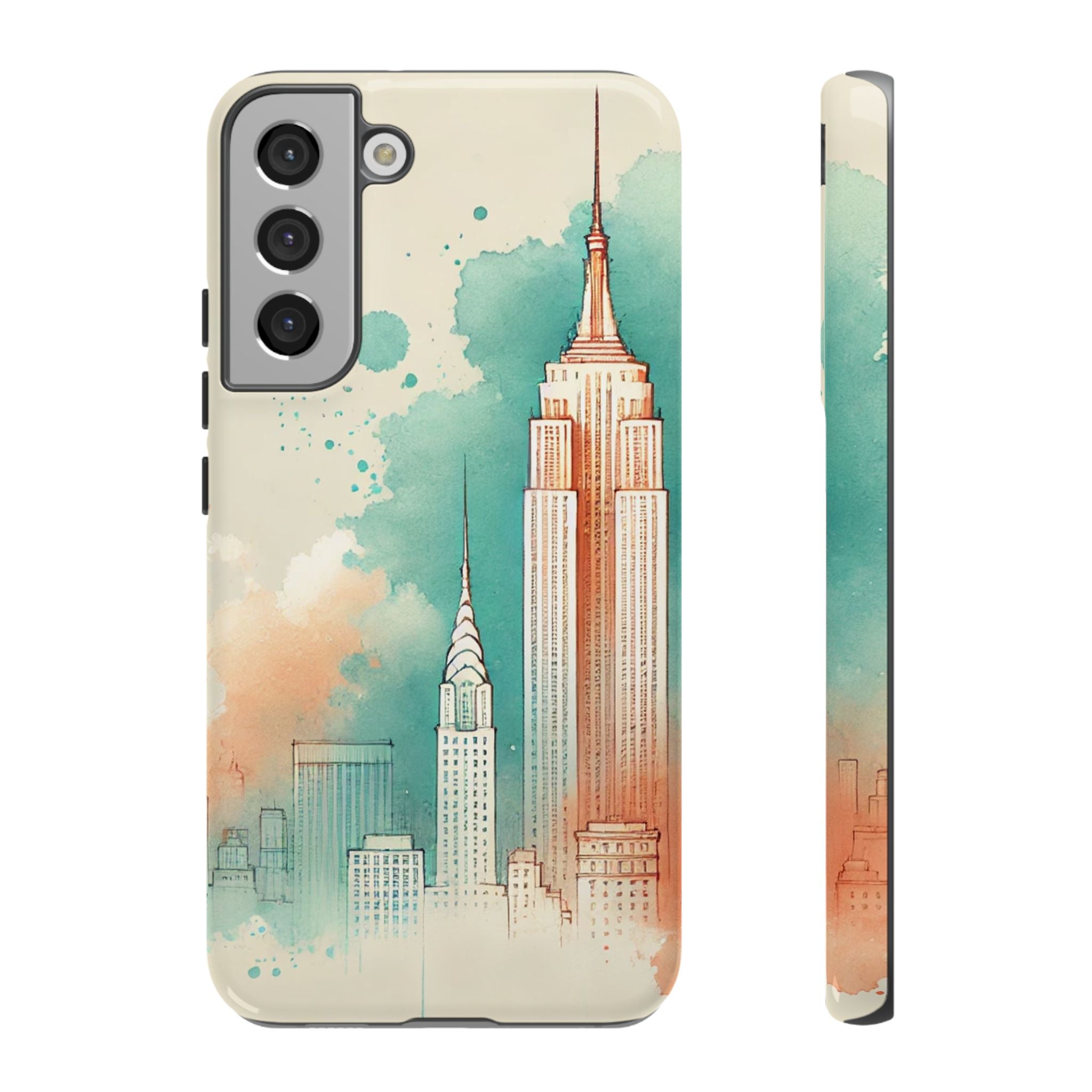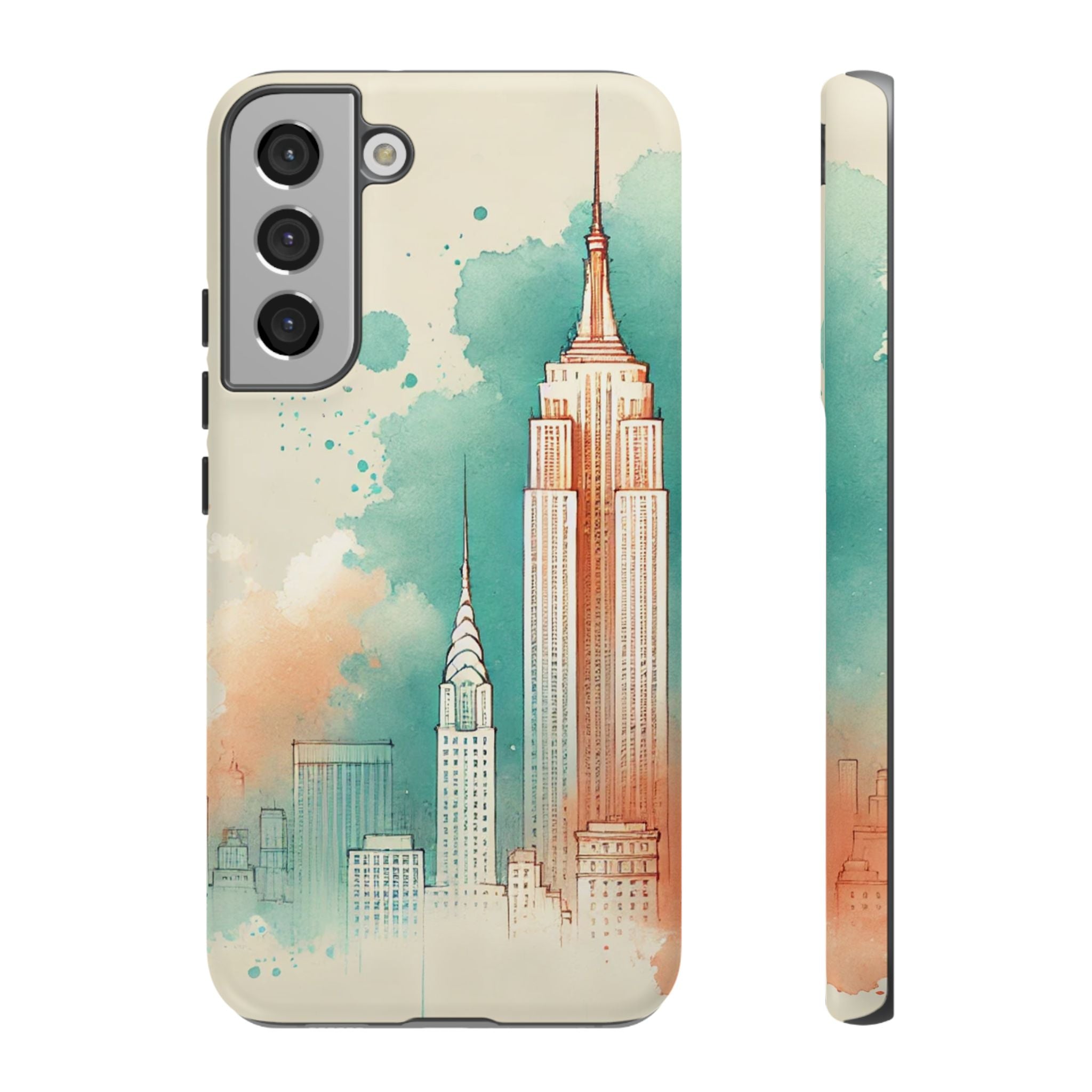 Experience the ultimate phone protection with the Tough Case - New York. This beautiful case features a stunning watercolor design of New York, highlighting the towering Empire State Building in bold hues, capturing the spirit and energy of the city that never sleeps. The design extends around the entire case and is sure to make a statement while protecting your phone with style.