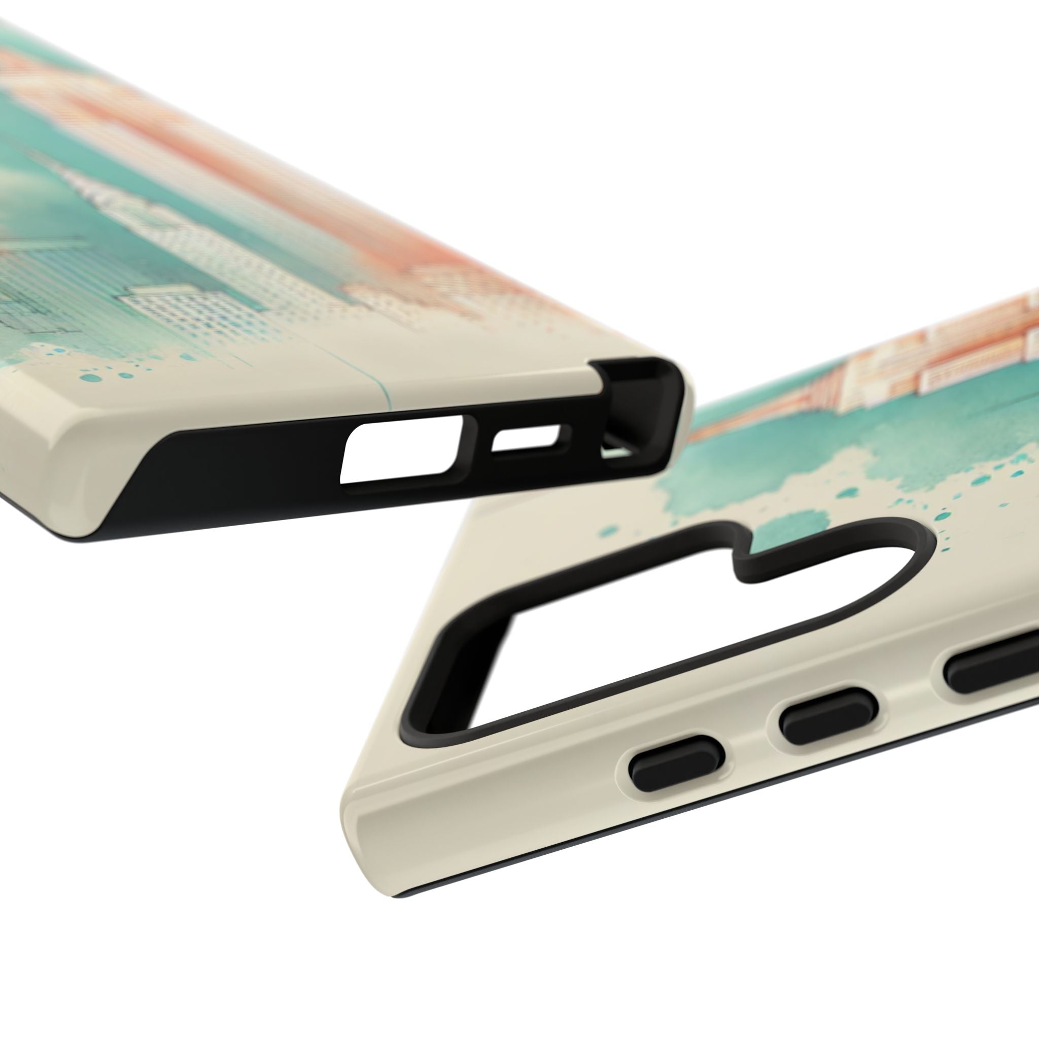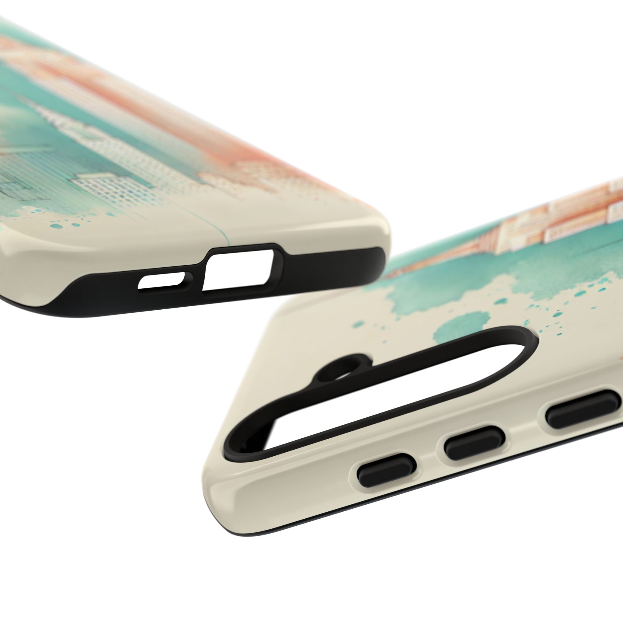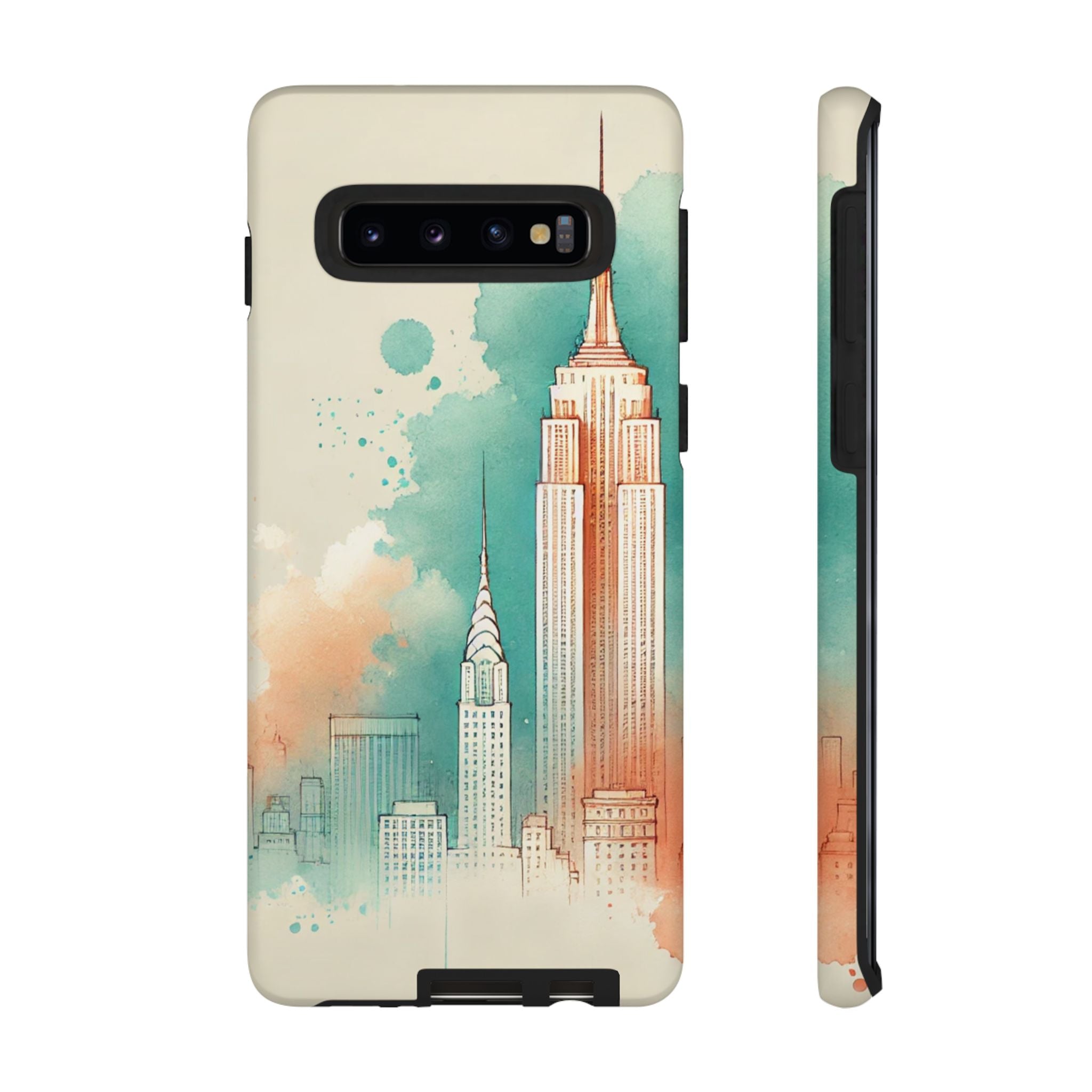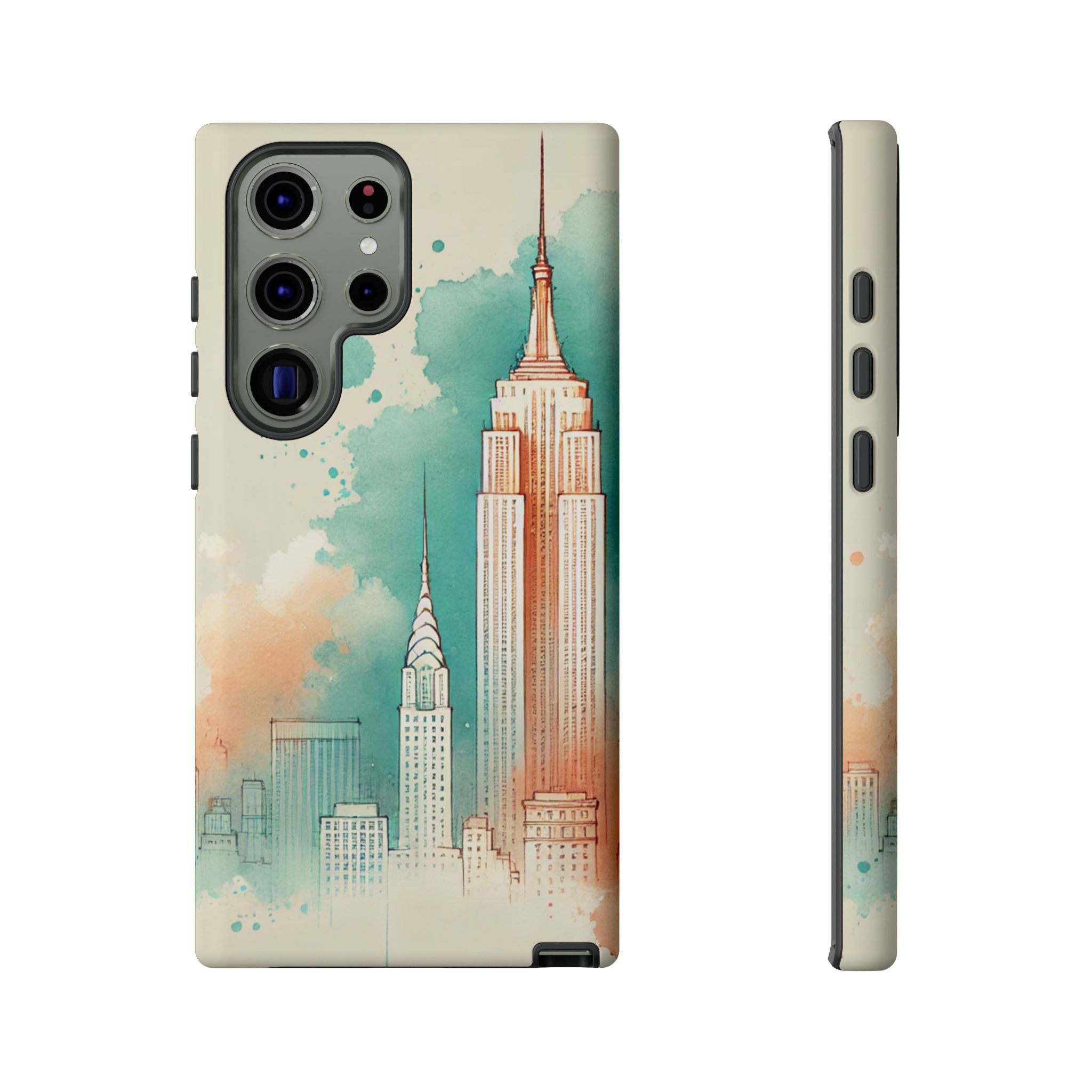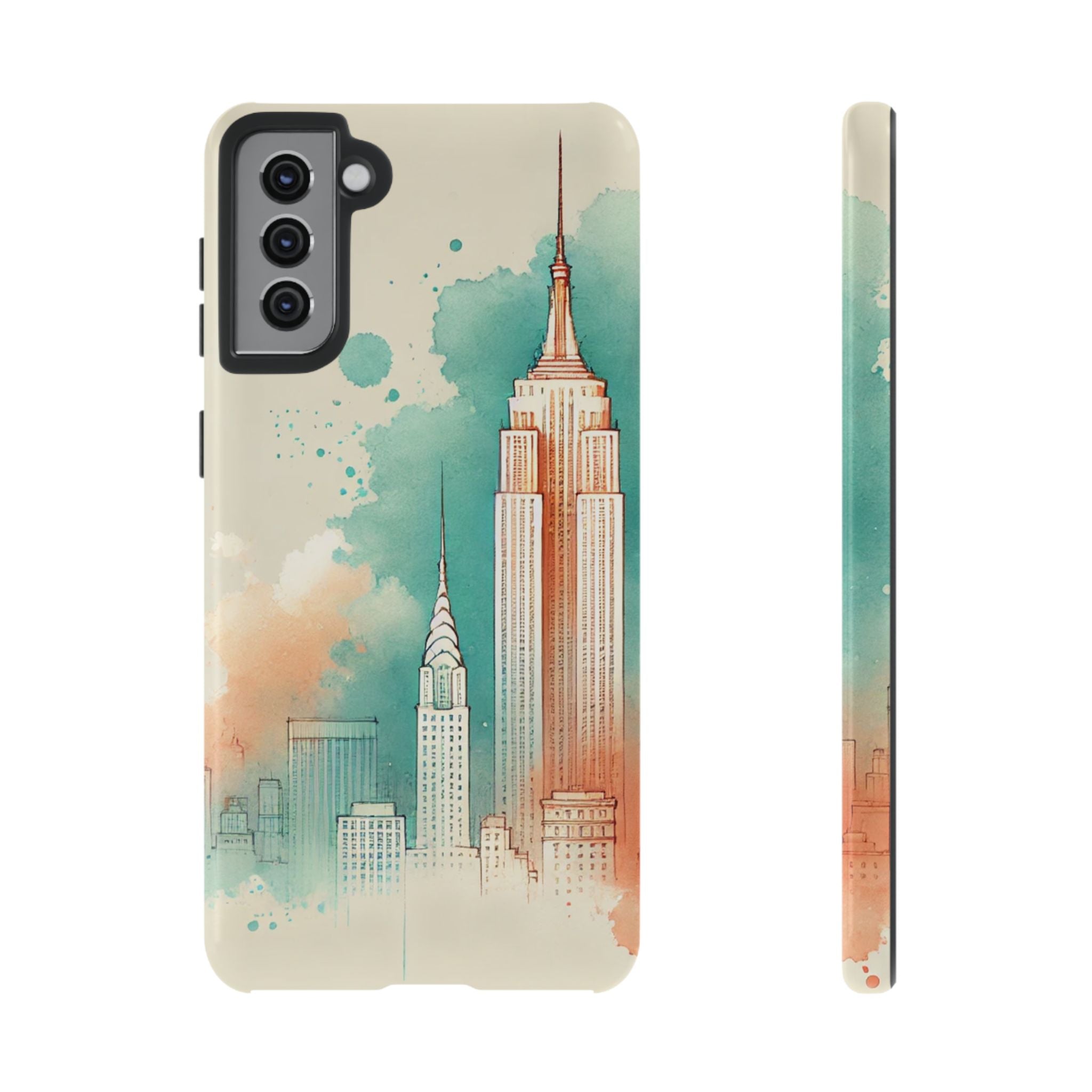 Experience the ultimate phone protection with the Tough Case - New York. This beautiful case features a stunning watercolor design of New York, highlighting the towering Empire State Building in bold hues, capturing the spirit and energy of the city that never sleeps. The design extends around the entire case and is sure to make a statement while protecting your phone with style.