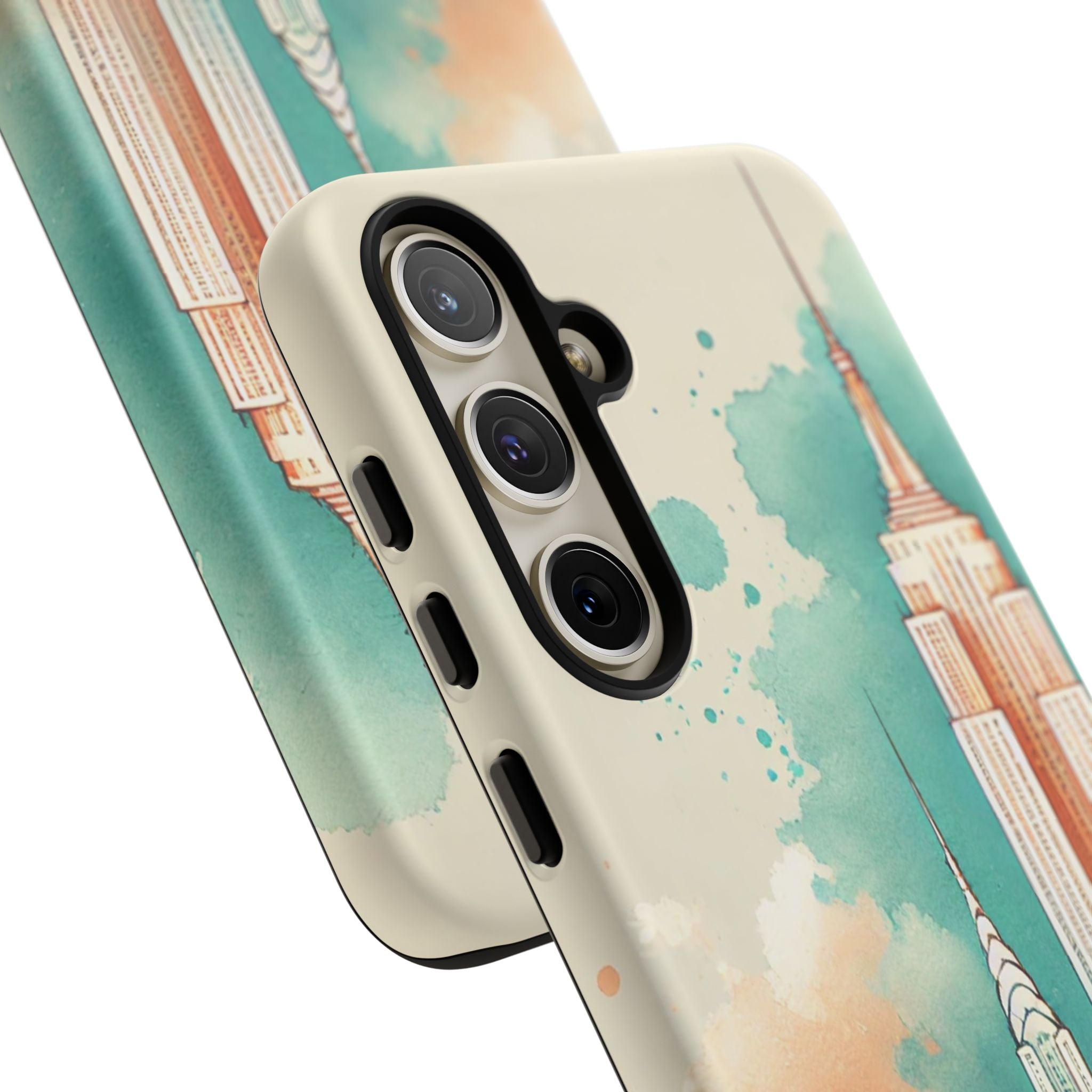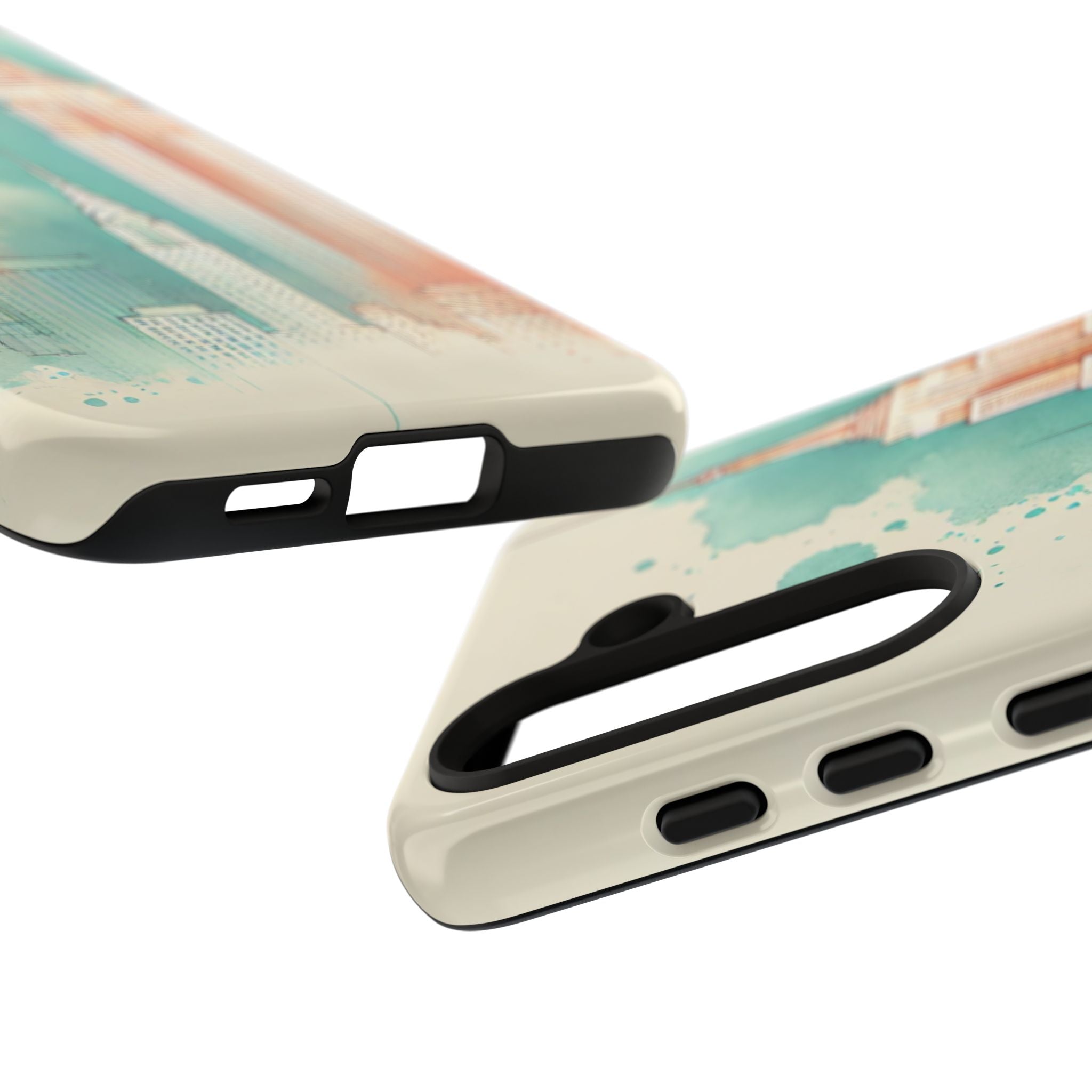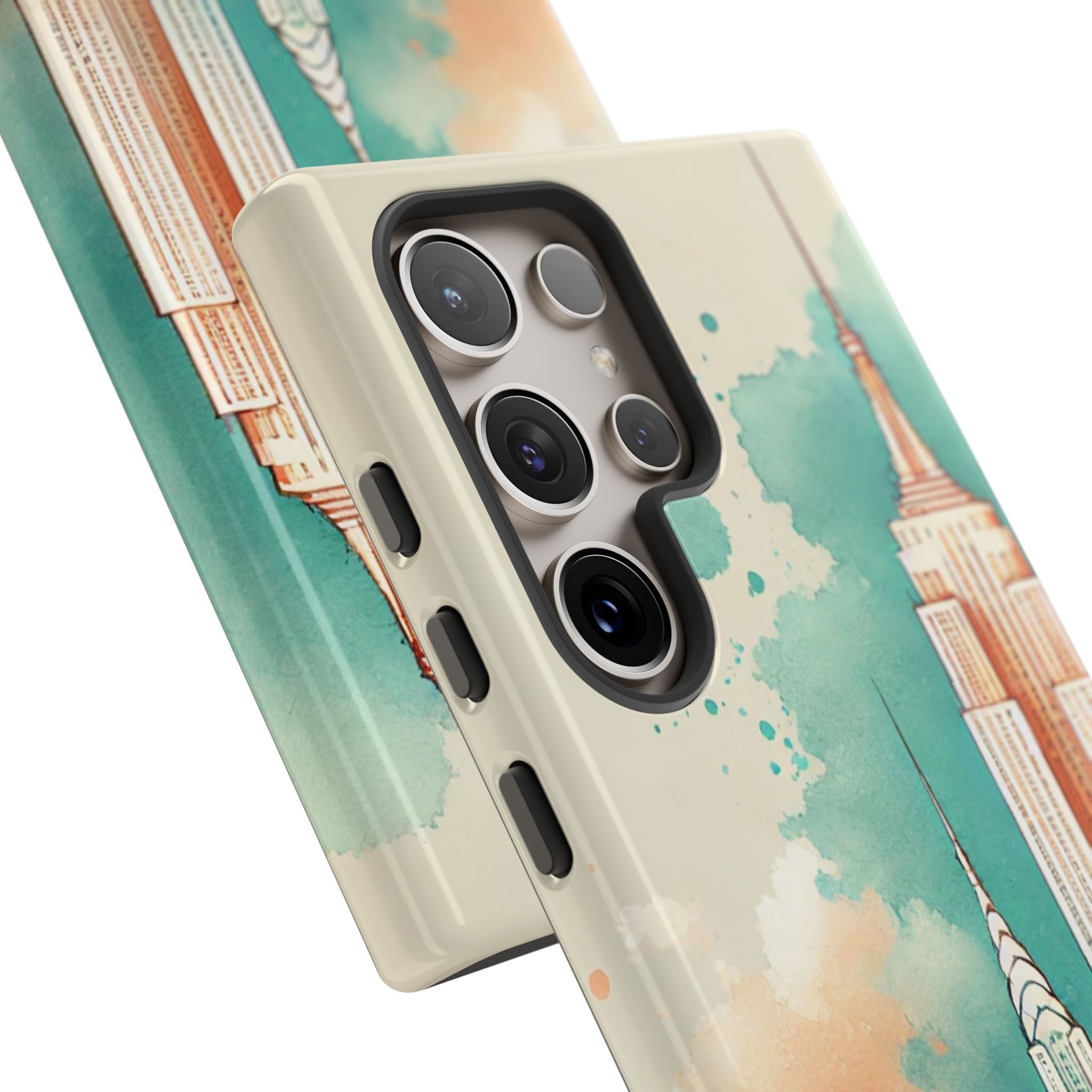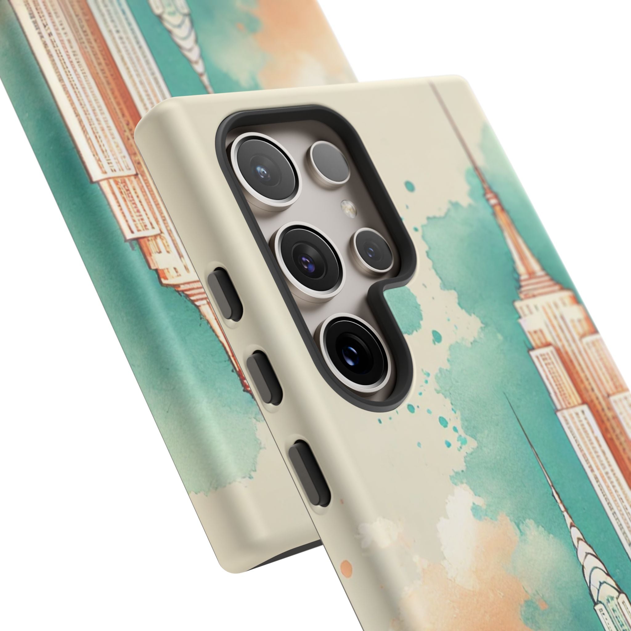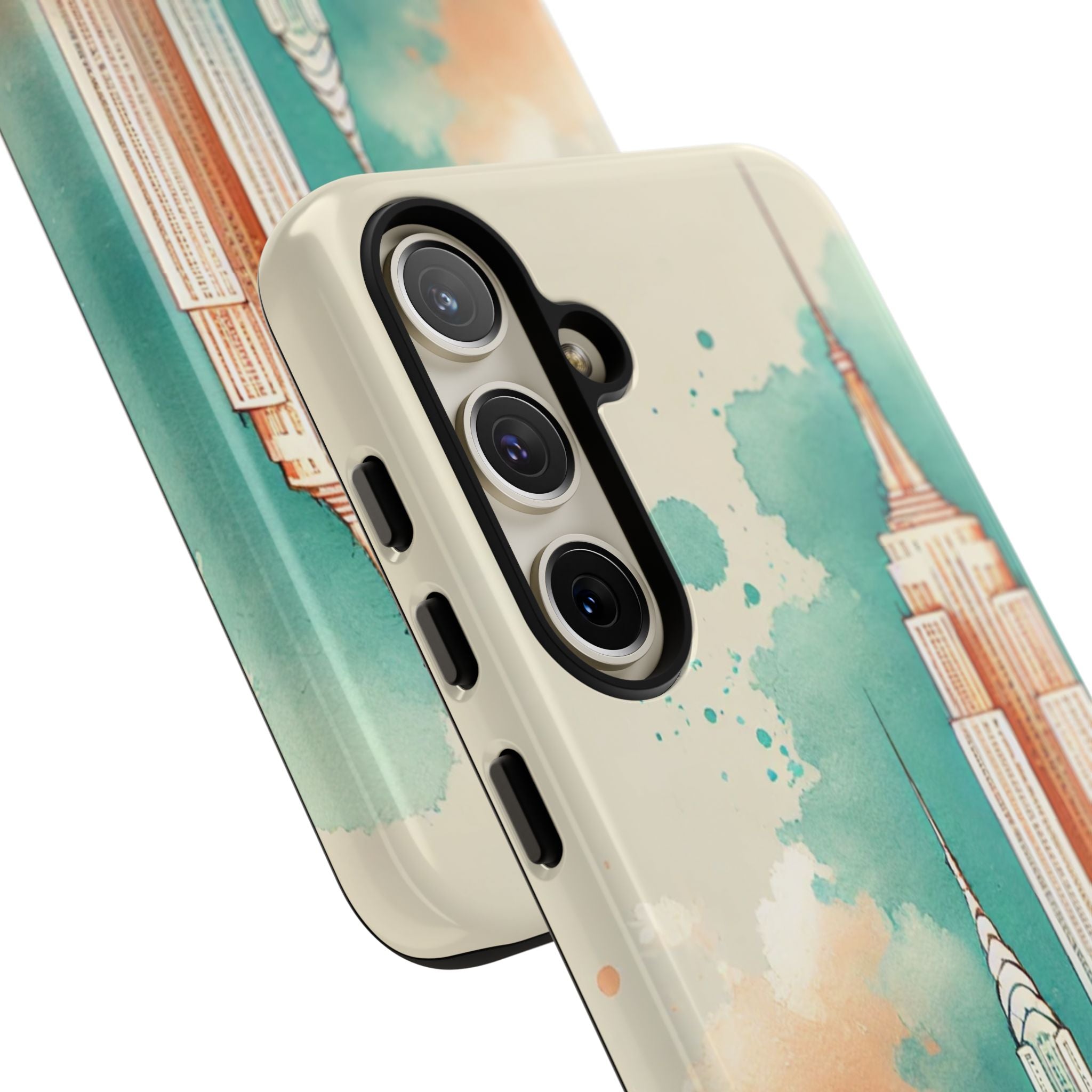 Experience the ultimate phone protection with the Tough Case - New York. This beautiful case features a stunning watercolor design of New York, highlighting the towering Empire State Building in bold hues, capturing the spirit and energy of the city that never sleeps. The design extends around the entire case and is sure to make a statement while protecting your phone with style.