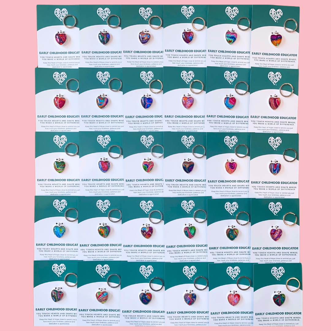 Each and every Early Childhood Educator deserves to be acknowledged for the incredible work they do. Giving a unique and beautiful handcrafted heart pendant with a message of gratitude and acknowledgement will make hearts sing - including yours!