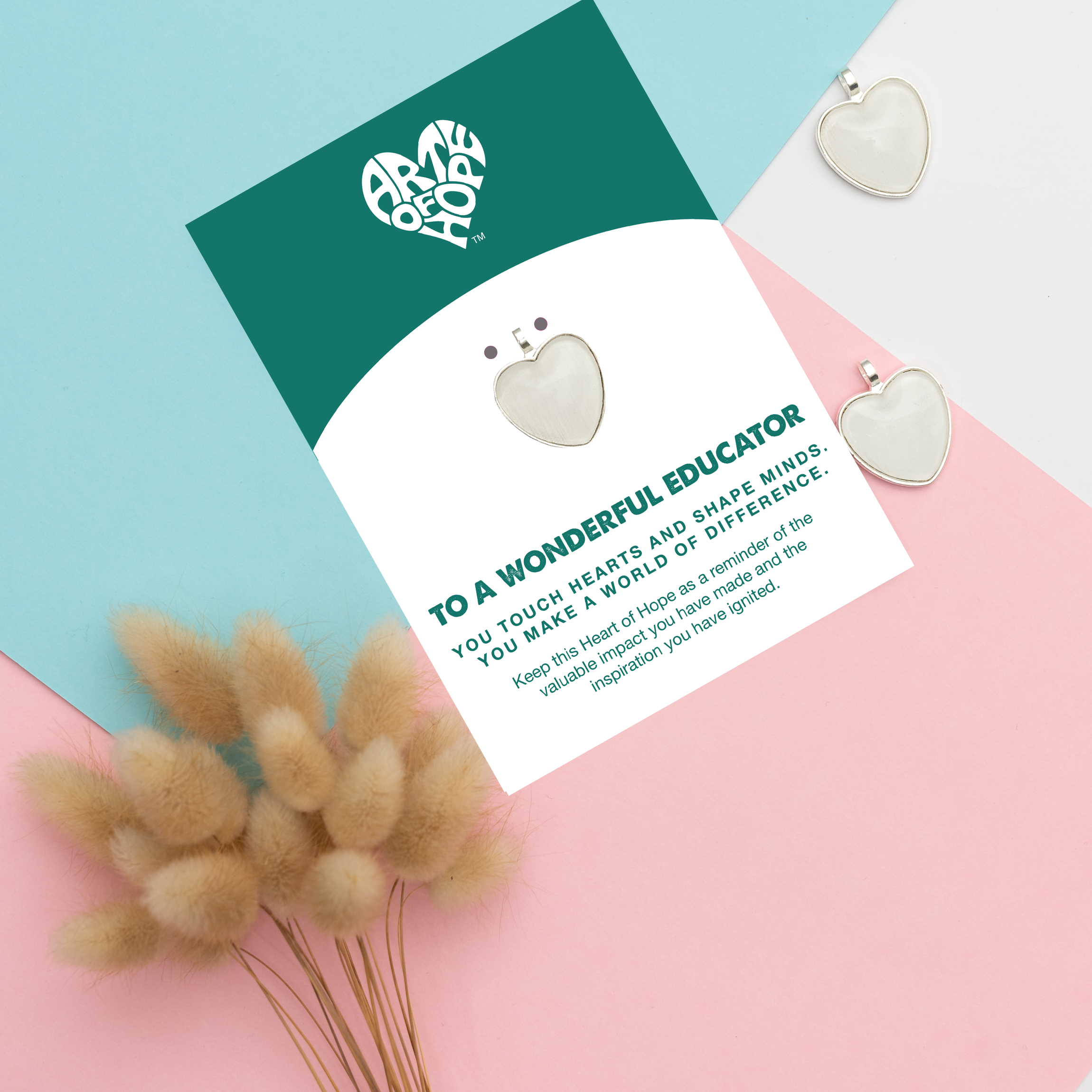 MESSAGE: "To a wonderful educator. You touch hearts and shape minds. You make a world of difference. Keep this Heart of Hope as a reminder of the valuable impact you have made and the inspiration you have ignited."