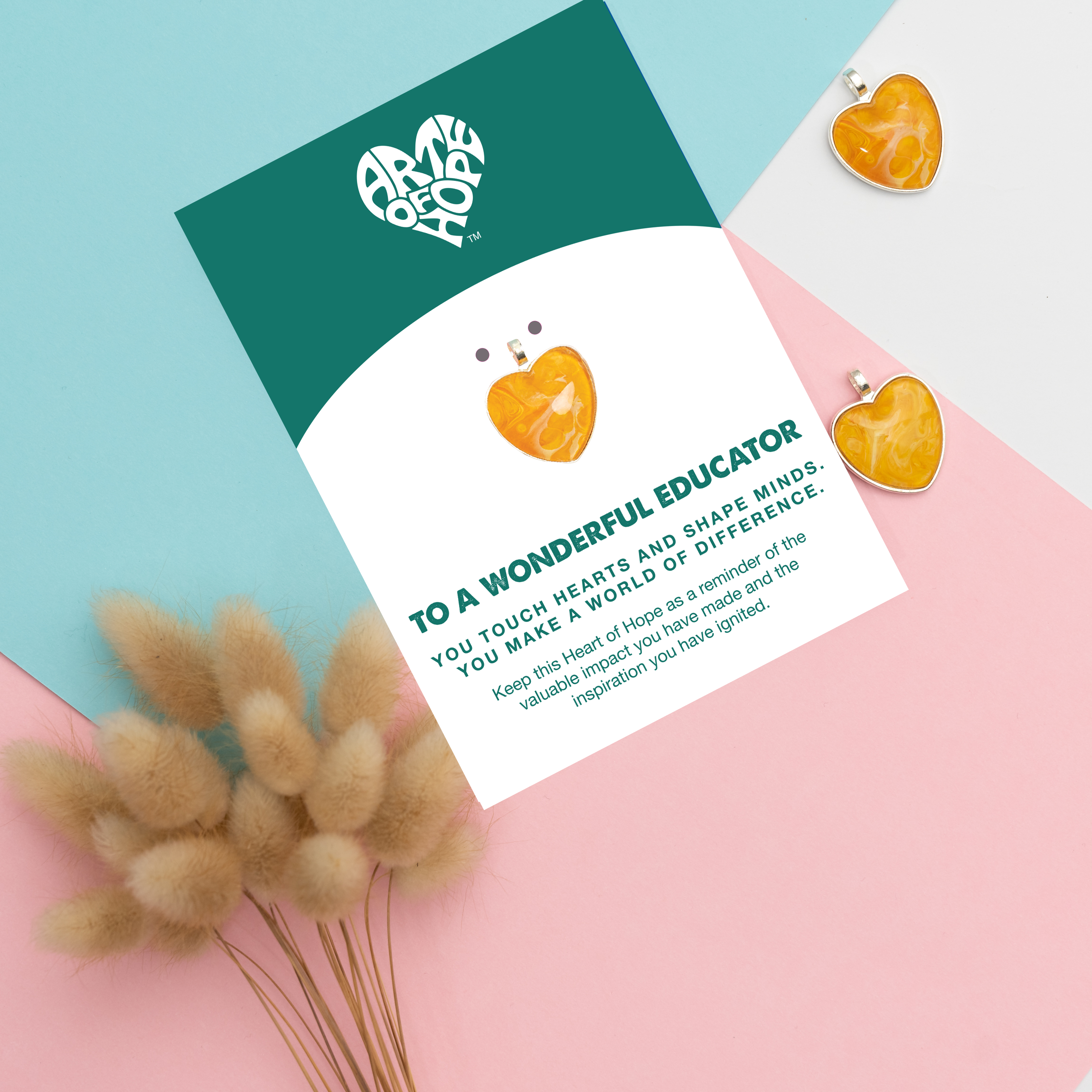 MESSAGE: "To a wonderful educator. You touch hearts and shape minds. You make a world of difference. Keep this Heart of Hope as a reminder of the valuable impact you have made and the inspiration you have ignited."