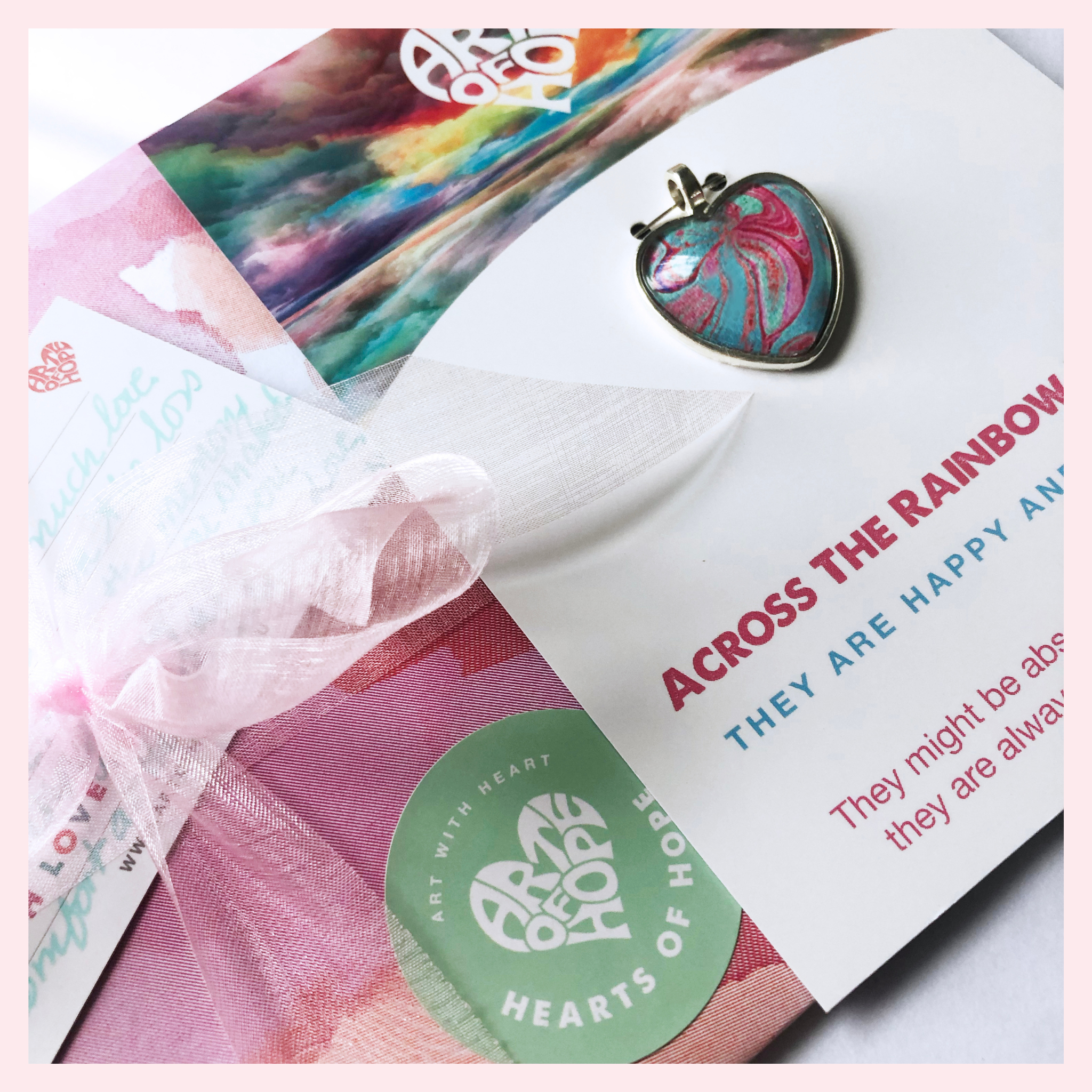 We love to gift wrap your Hearts of Hope. You can select either our beautiful ART OF HOPE gift wrapping or our Christmas gift wrapping.