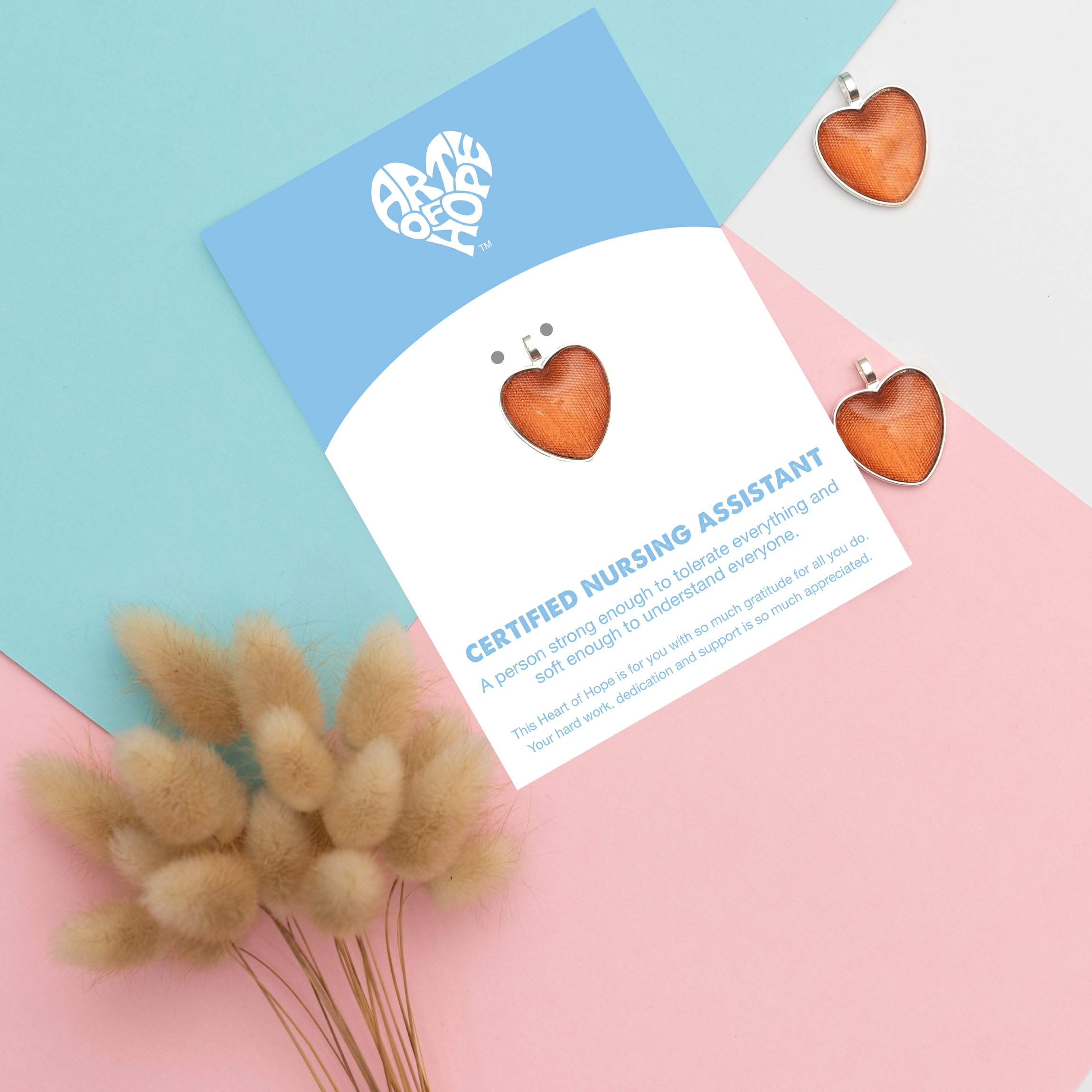 MESSAGE: "Certified Nursing Assistant. A person strong enough to tolerate everything and soft enough to understand everyone. This Heart of Hope is for you with so much gratitude for all you do. Your hard work, dedication and support is so much appreciated"