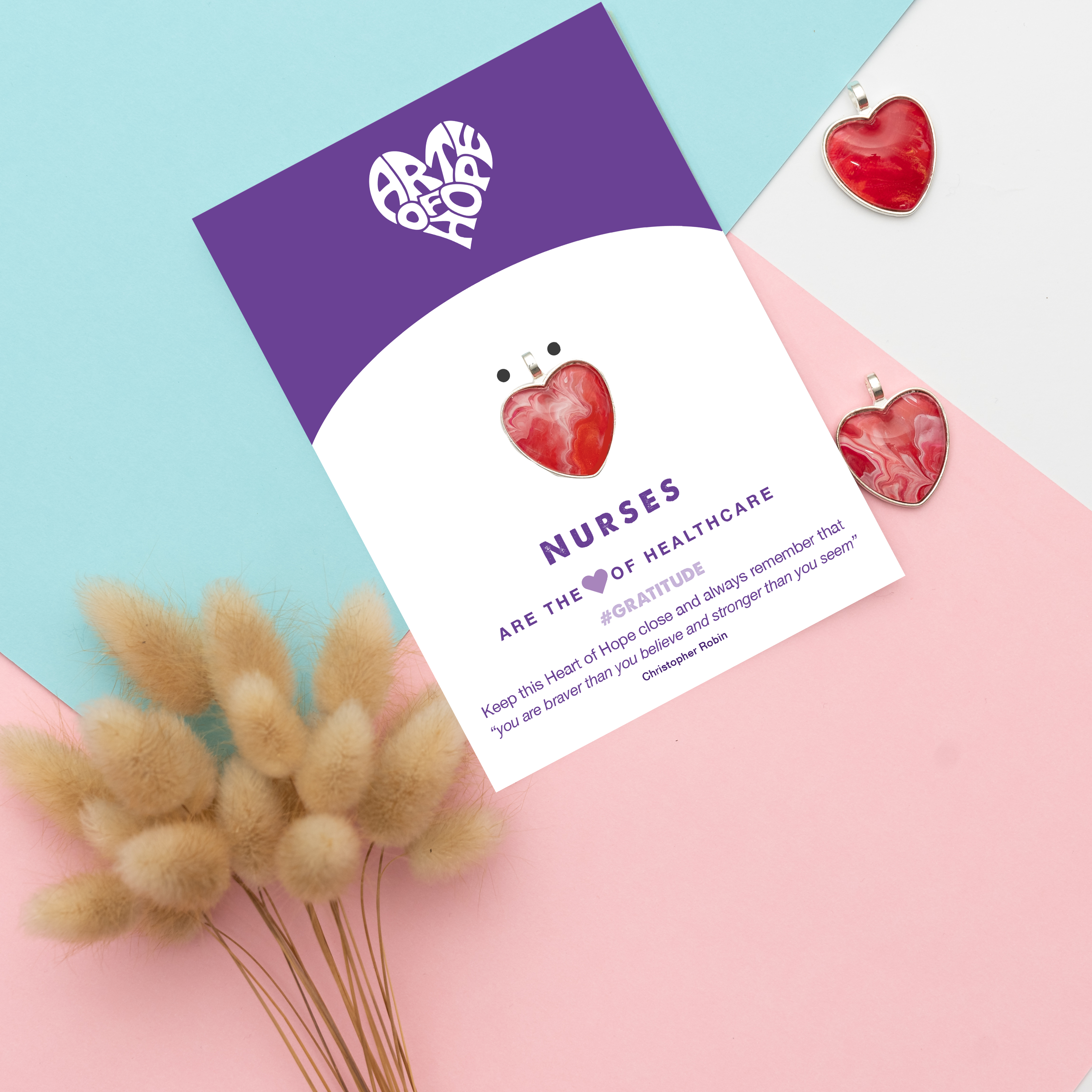 MESSAGE: "Nurses are the heart of healthcare. #gratitude. Keep this Heart of Hope close and always remember that "you are braver than you believe and stronger than you seem" Christopher Robin