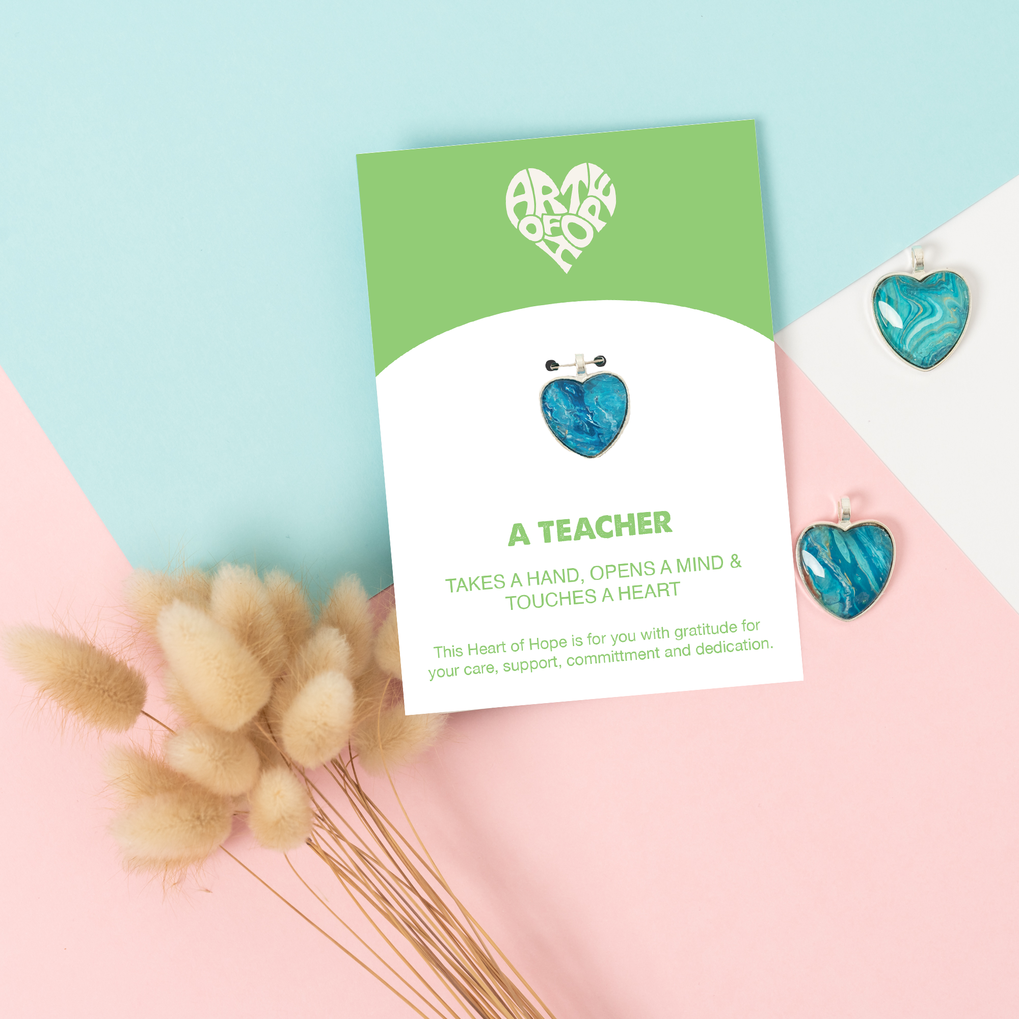 A teacher takes a hand, opens a mind and touches a heart. Acknowledge a special teacher who had gone above and beyond with a Heart of Hope.