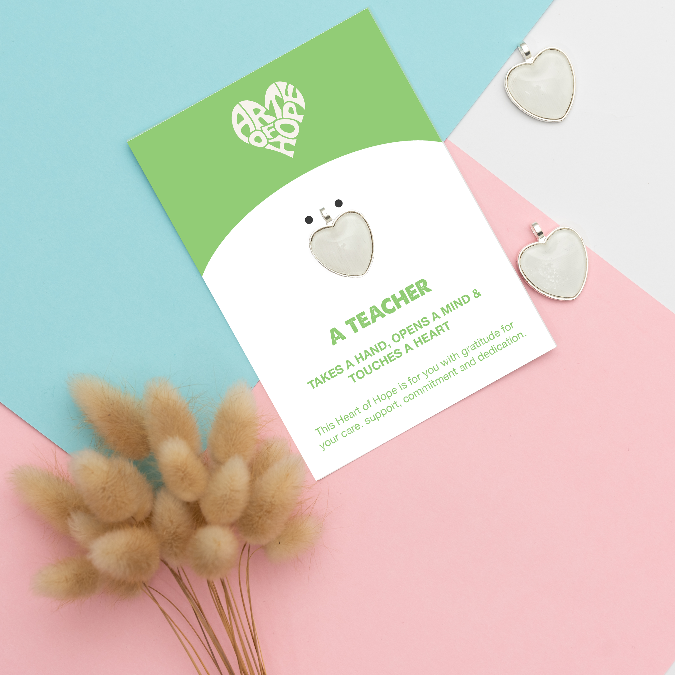 A teacher takes a hand, opens a mind and touches a heart. Acknowledge a special teacher who had gone above and beyond with a Heart of Hope.