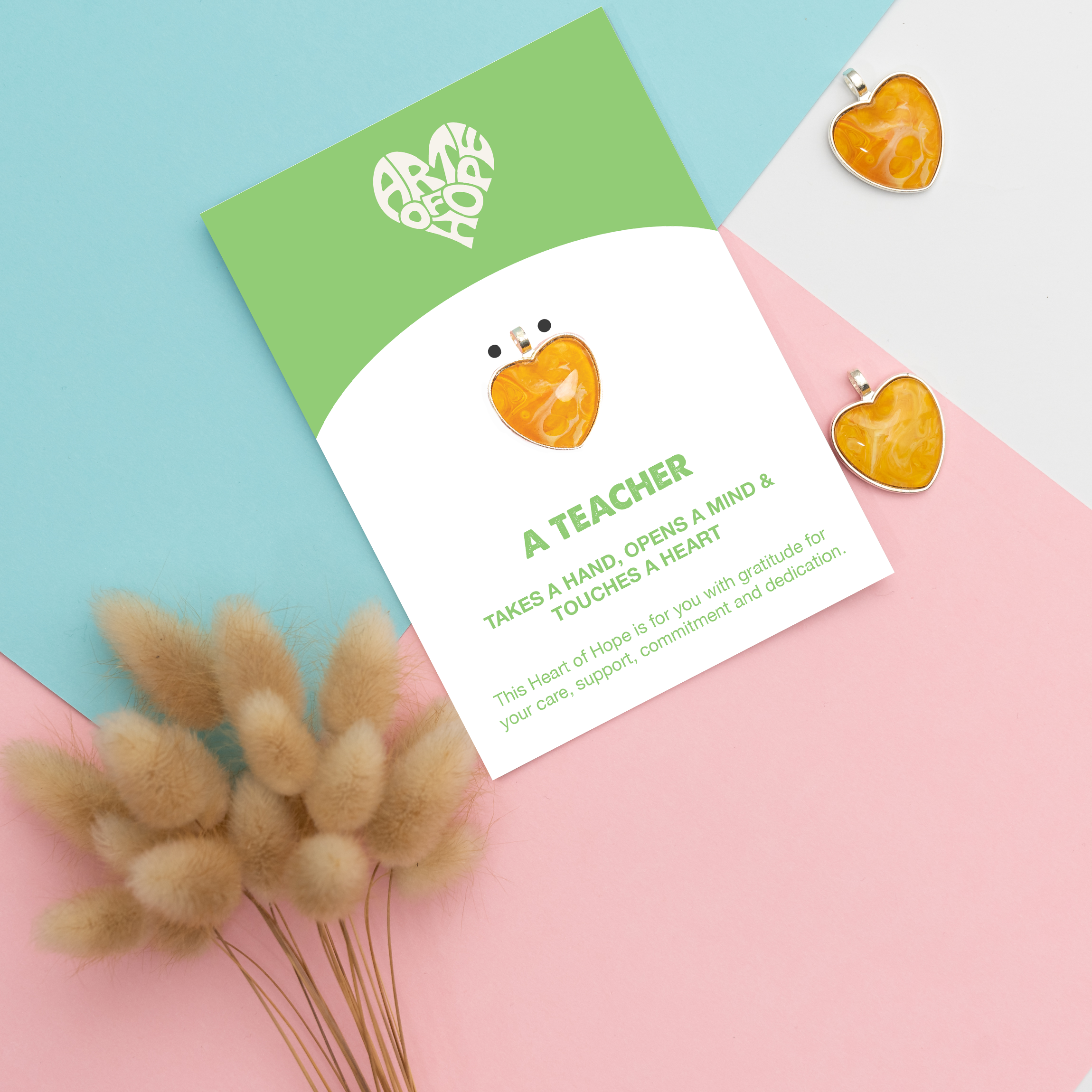 A teacher takes a hand, opens a mind and touches a heart. Acknowledge a special teacher who had gone above and beyond with a Heart of Hope.