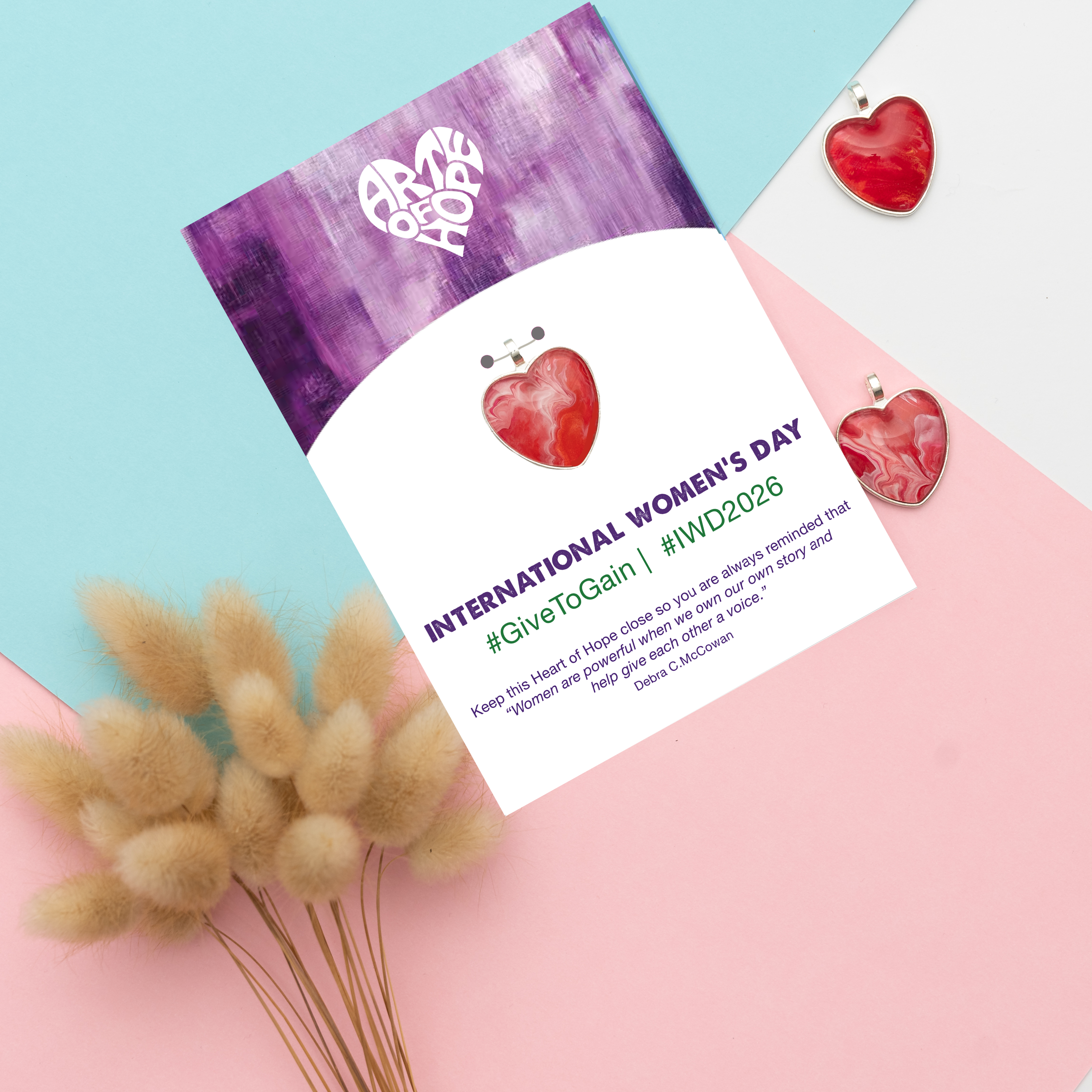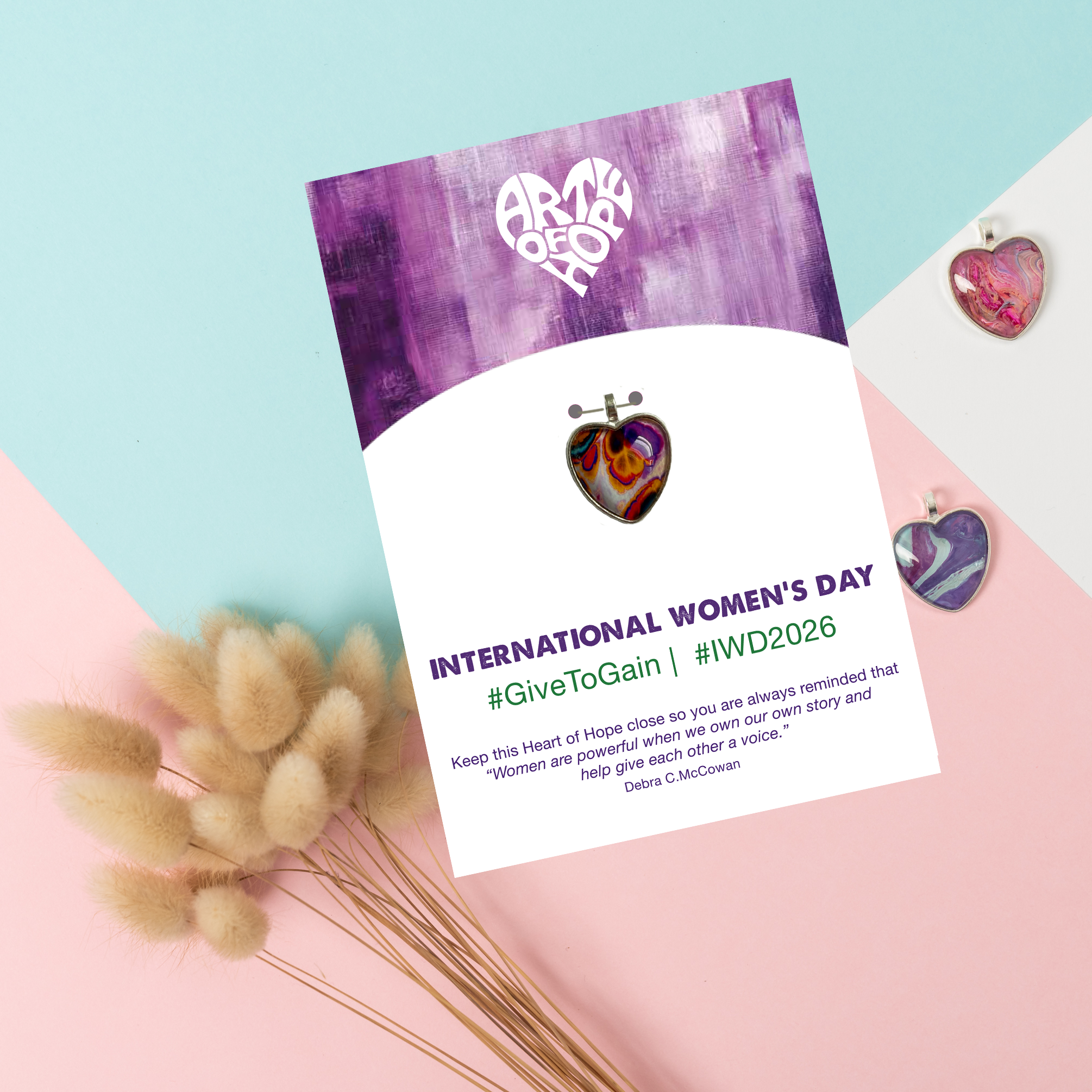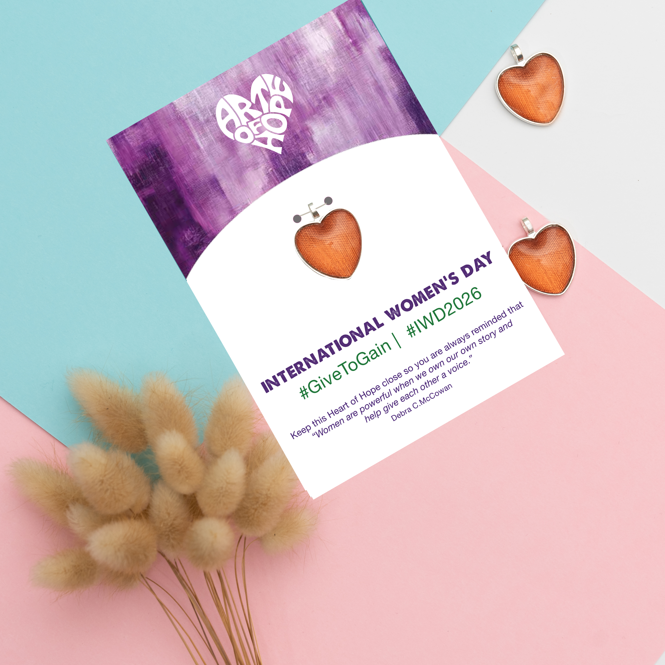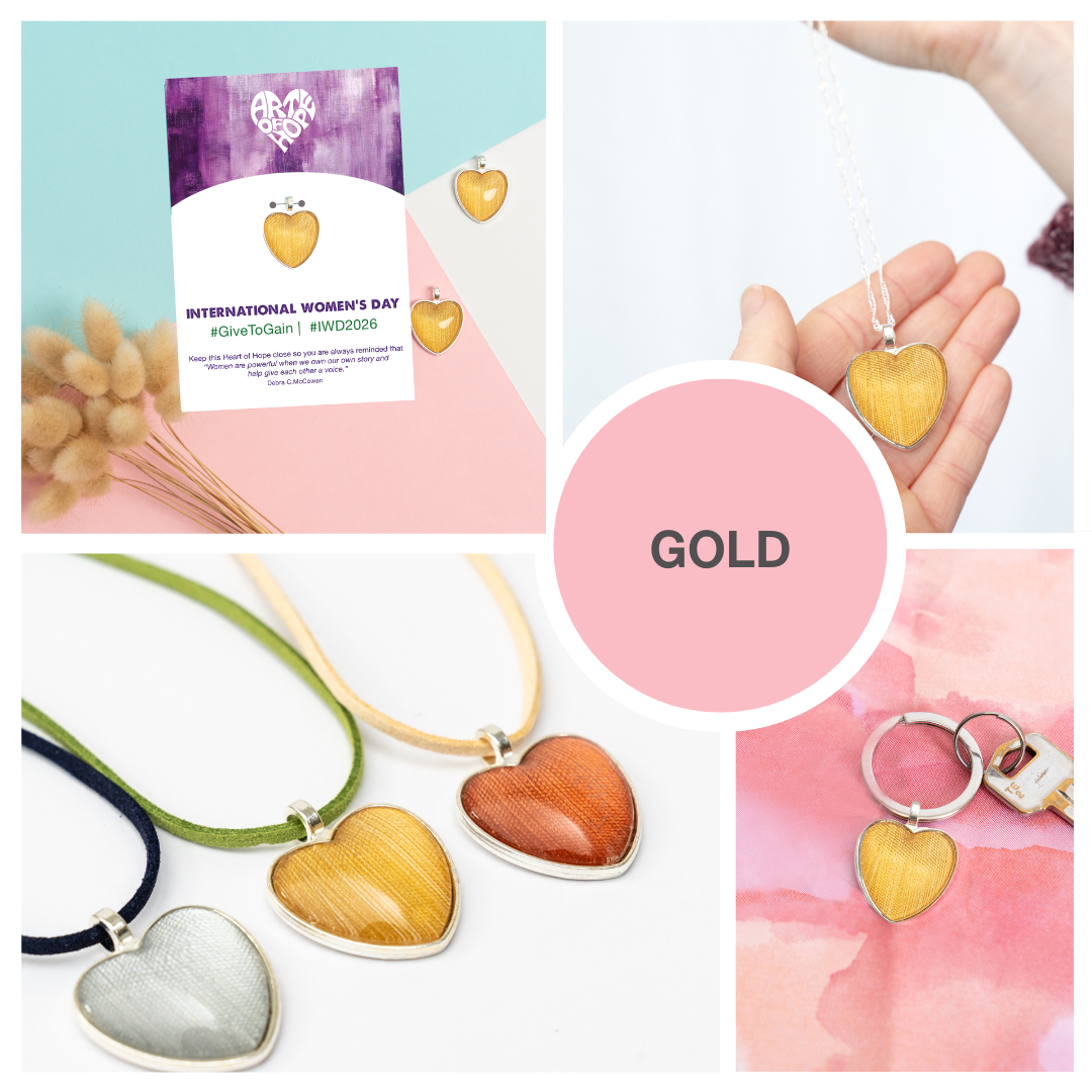 Celebrate International Women's Day 2026 with us. Let's honour and uplift women everywhere — because every woman is truly remarkable and one of a kind. Give the amazing women in your life a unique, handcrafted Heart of Hope on a beautiful card paired with an inspiring message and the 2026 hashtag #GiveToGain & #IWD2026