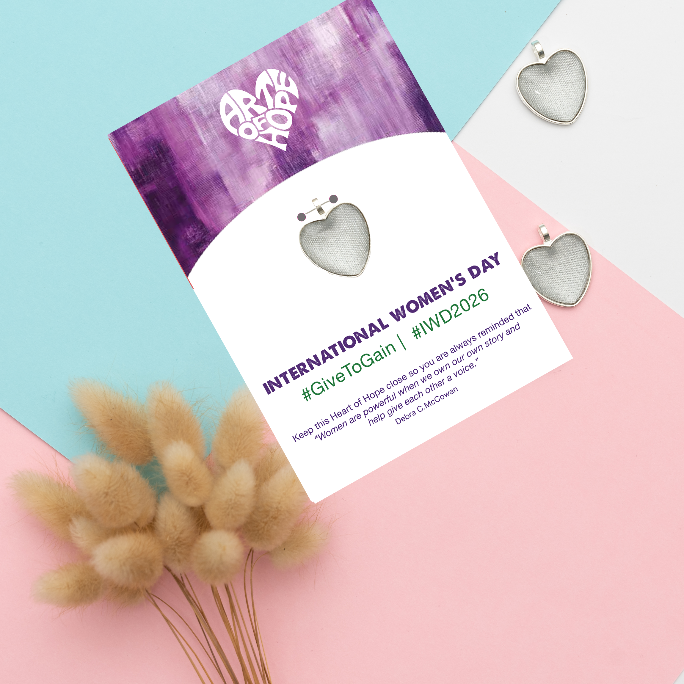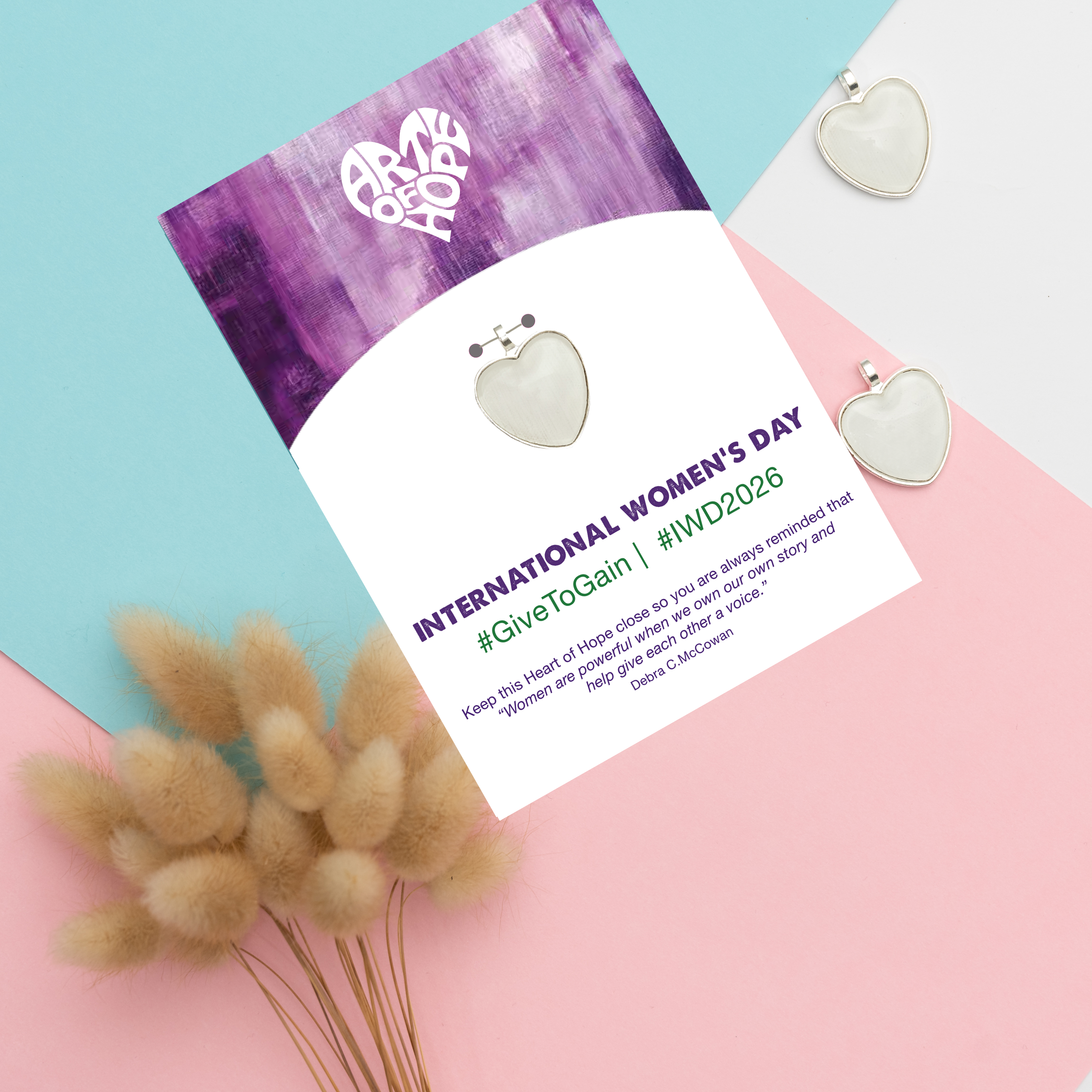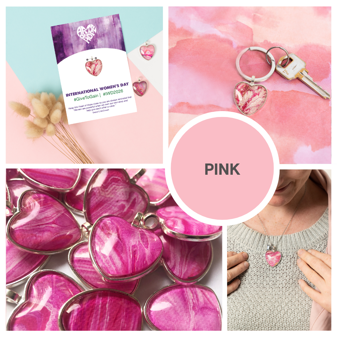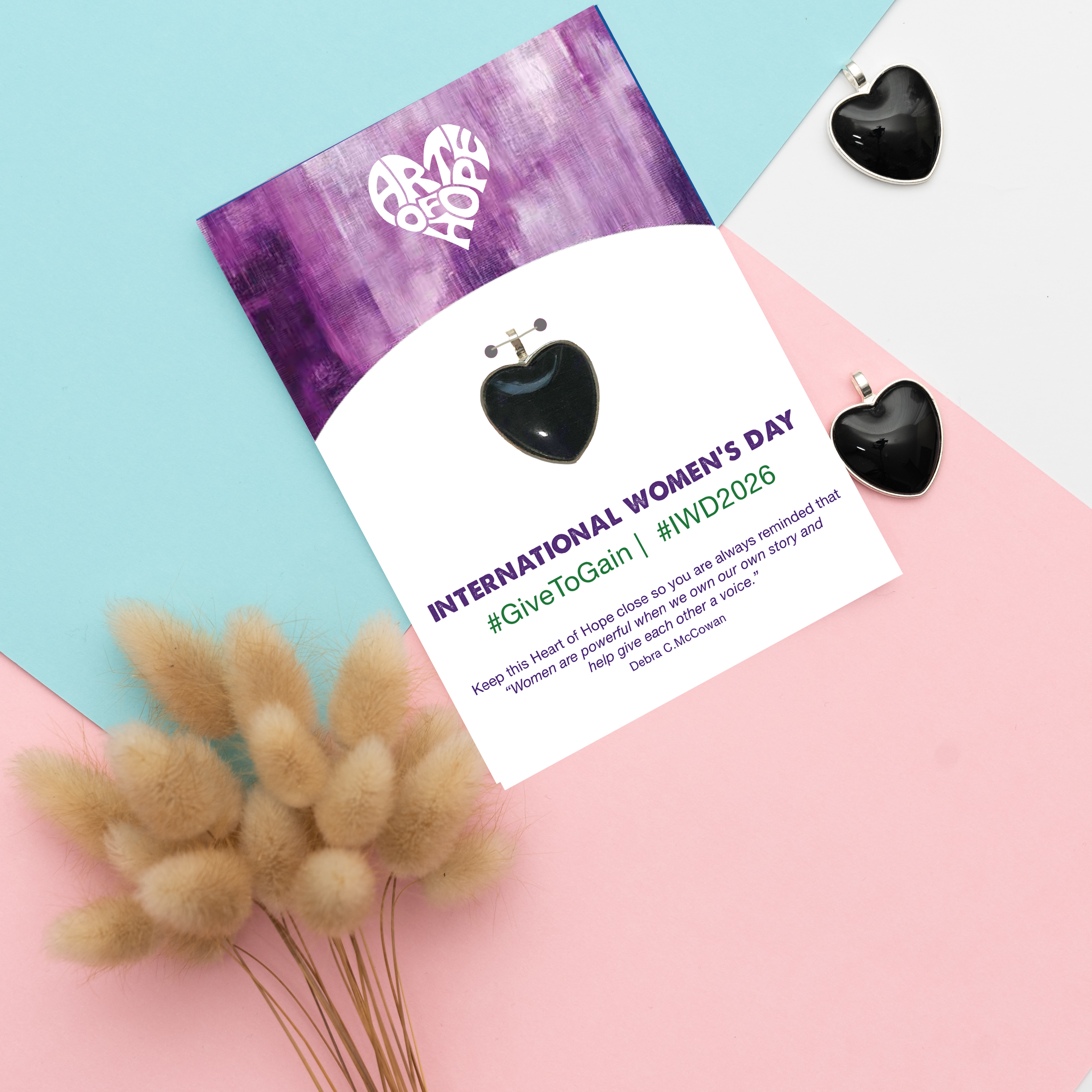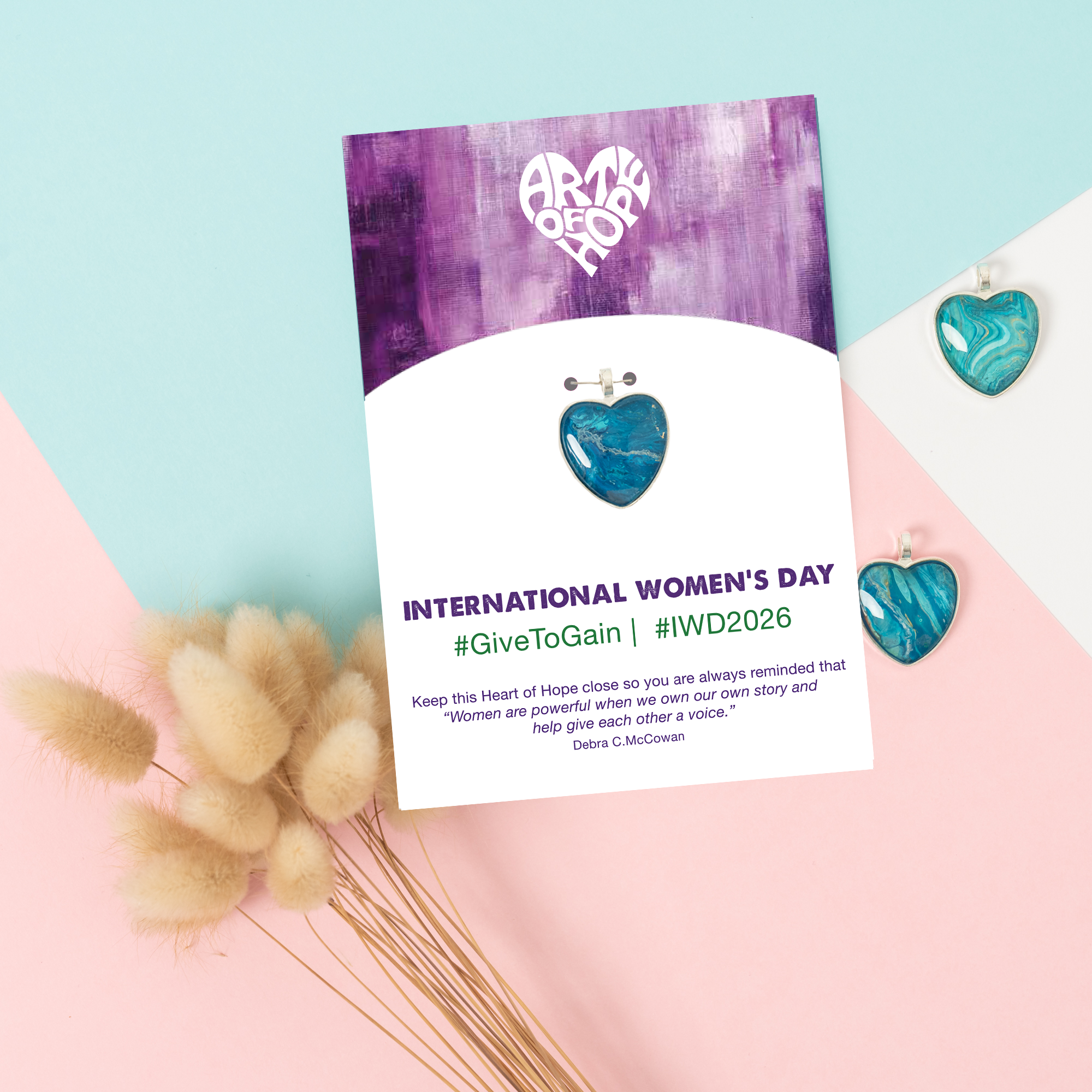 Celebrate International Women's Day 2026 with us. Let's honour and uplift women everywhere — because every woman is truly remarkable and one of a kind. Give the amazing women in your life a unique, handcrafted Heart of Hope on a beautiful card paired with an inspiring message and the 2026 hashtag #GiveToGain & #IWD2026