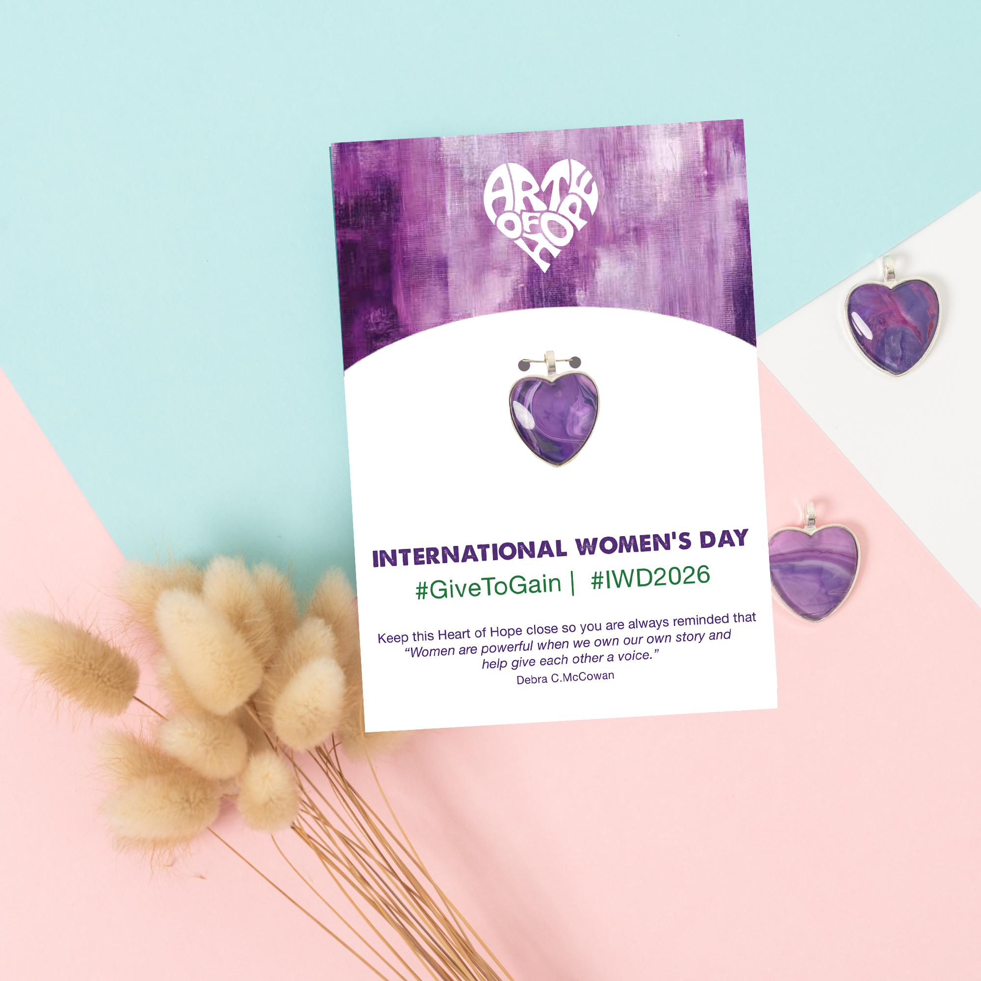 MESSAGE: International Women's Day #GiveToGain. Keep this Heart of Hope close so that you are always reminded "Women are powerful when we own our own story and help give each other a voice." Debra C. McCowan