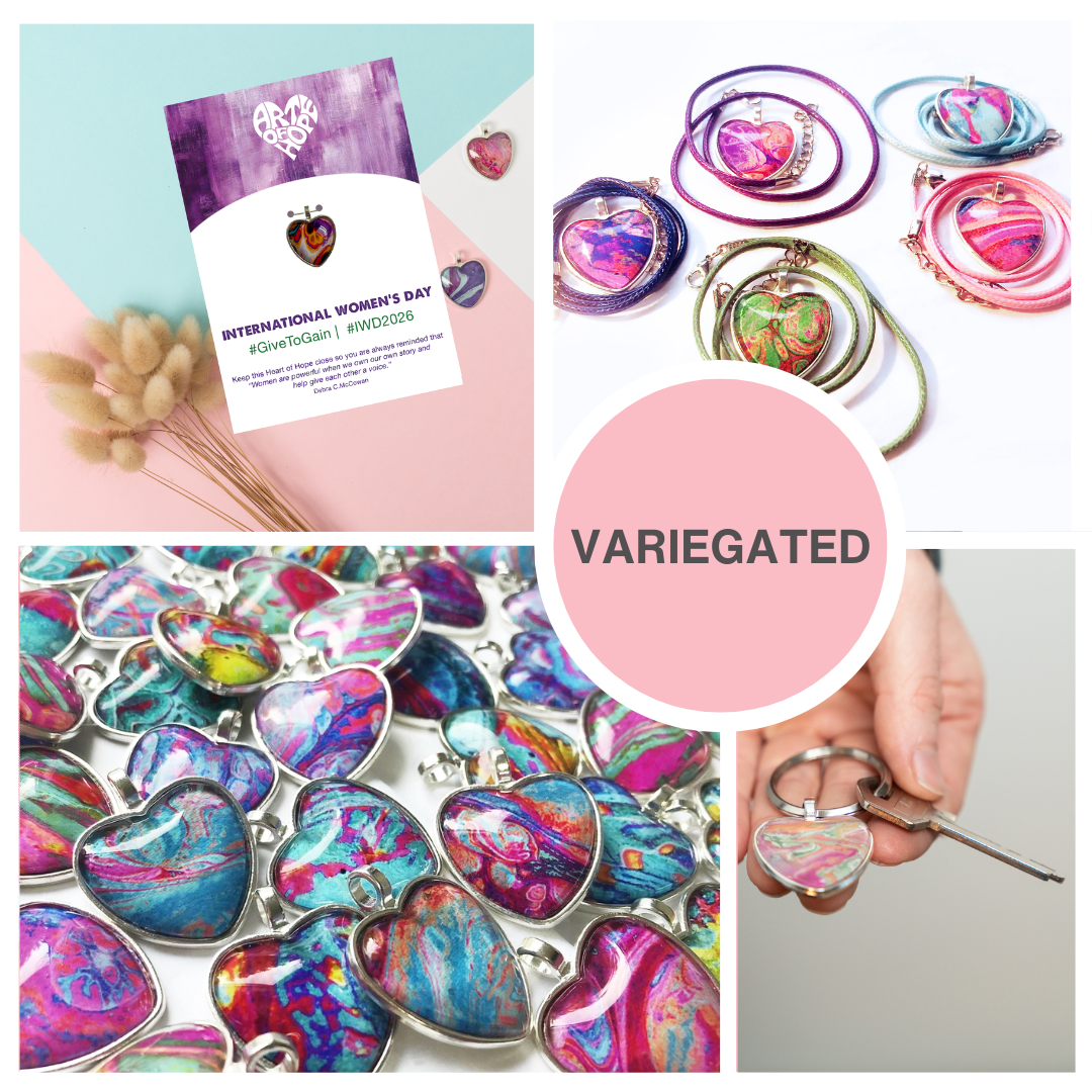 The hearts are made with love and care in our Sydney studio and each one is attached to a card with a safety pin so they can be worn on uniforms, clothes and scrubs. They also include a keyring so they can be kept close on keys and bags. Each one is enclosed in a cellophane bag for protection and there is space at the back of the card for you to write a personal message. Our most popular hearts are the variegated ones which are a delightful mix of colours and shapes. If you prefer, individual colours are also available. Make your Heart of Hope extra special by adding a necklace - chain, wax or suede cord - a suede gift pouch or beautiful gift wrapping.