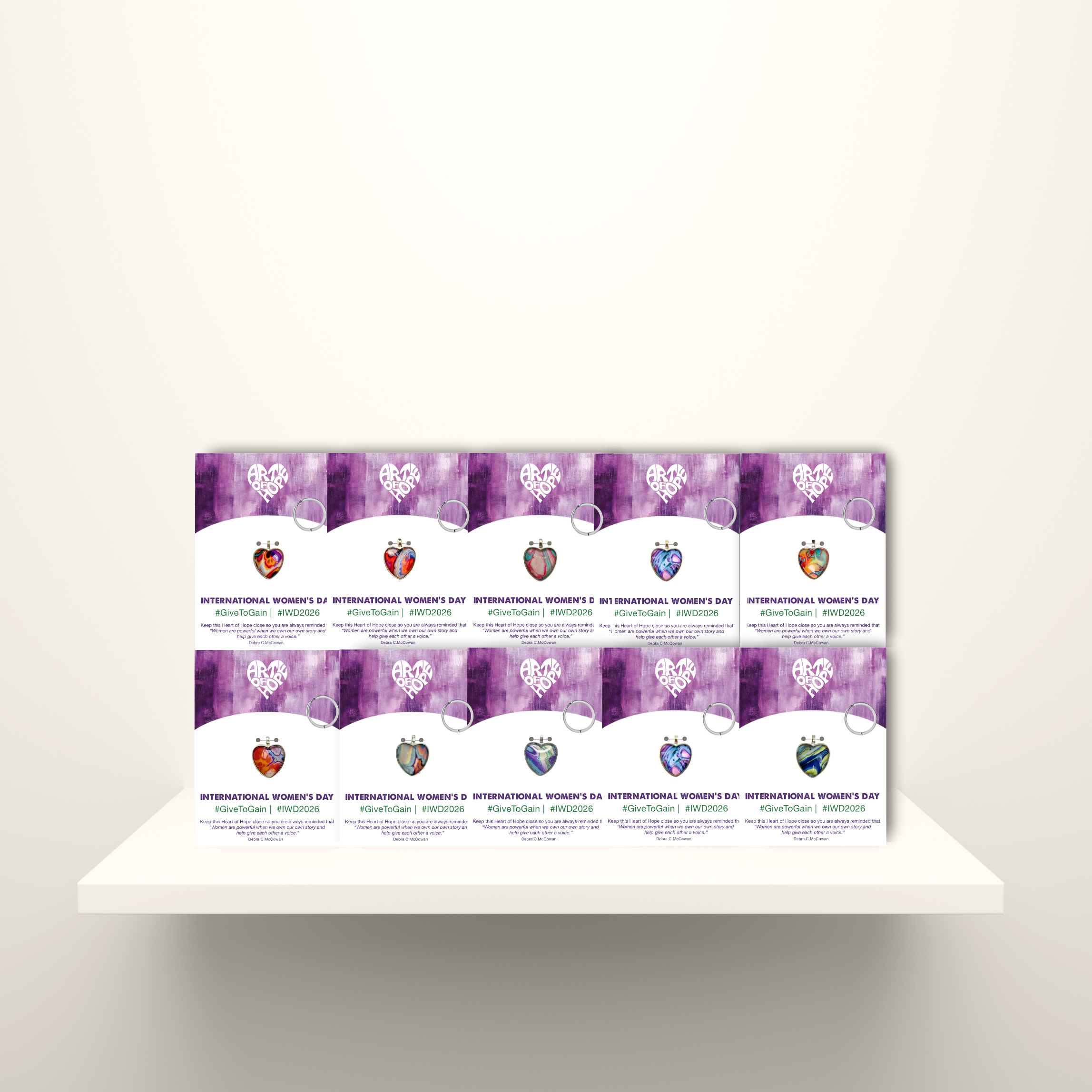 Celebrate women everywhere with a unique and beautiful handmade Heart of Hope on a gorgeous card with a message of inspiration and 2026 hashtag #GiveToGain & #IWD2026