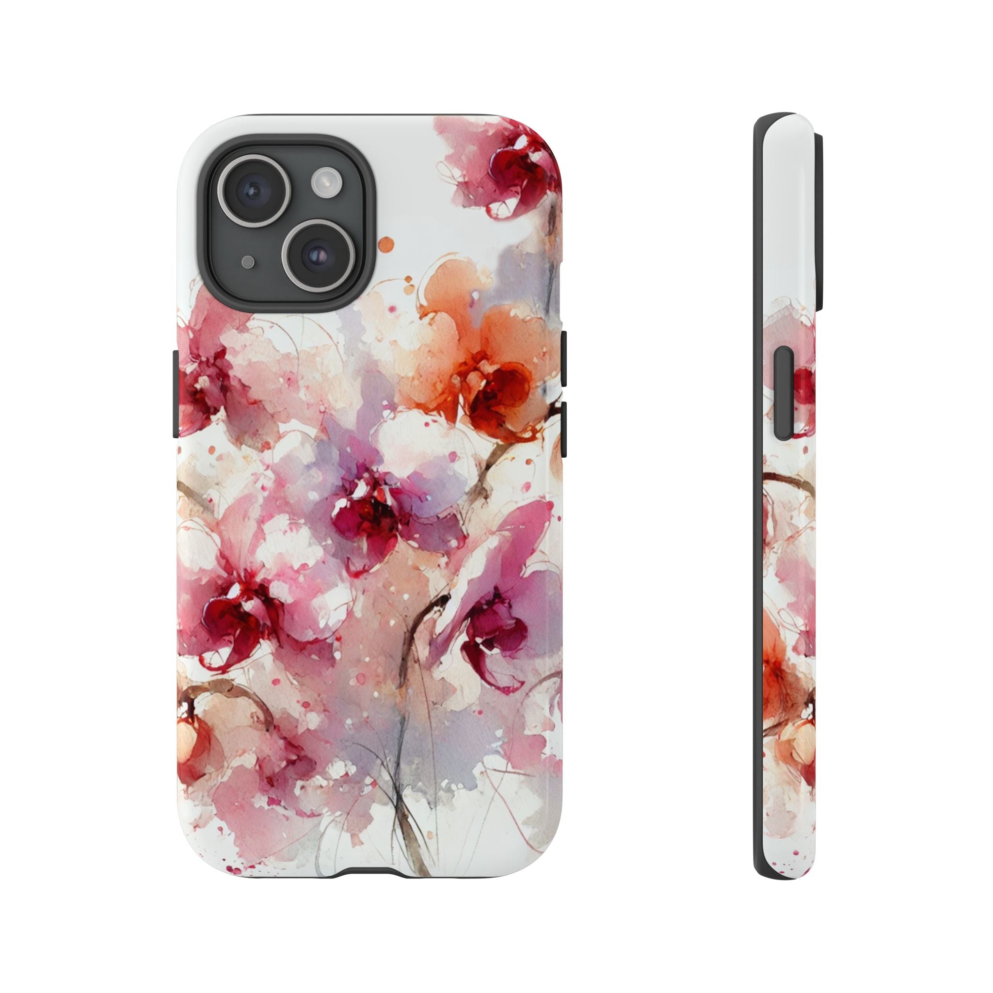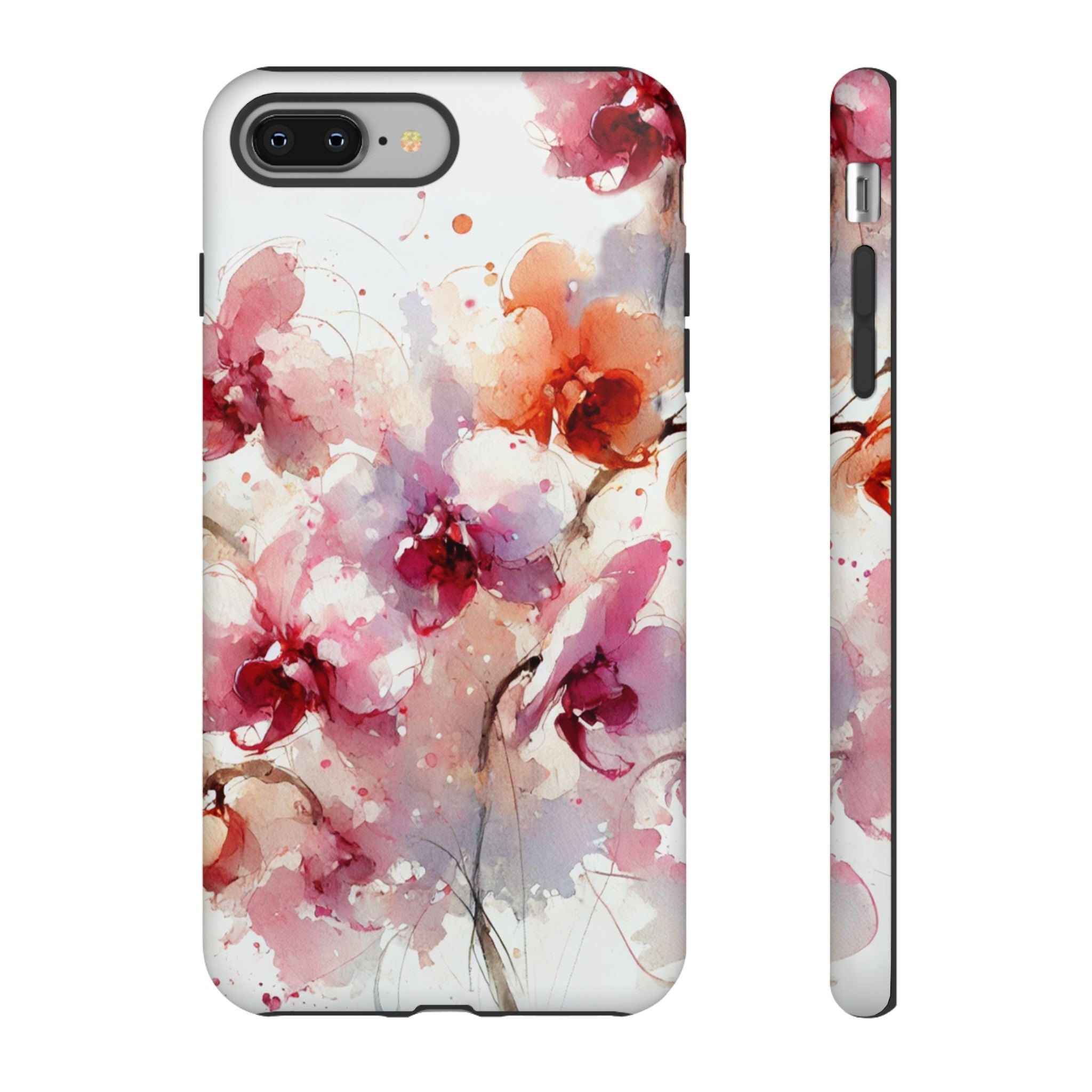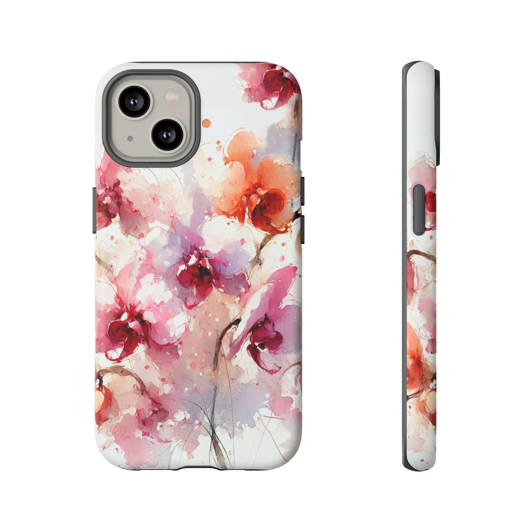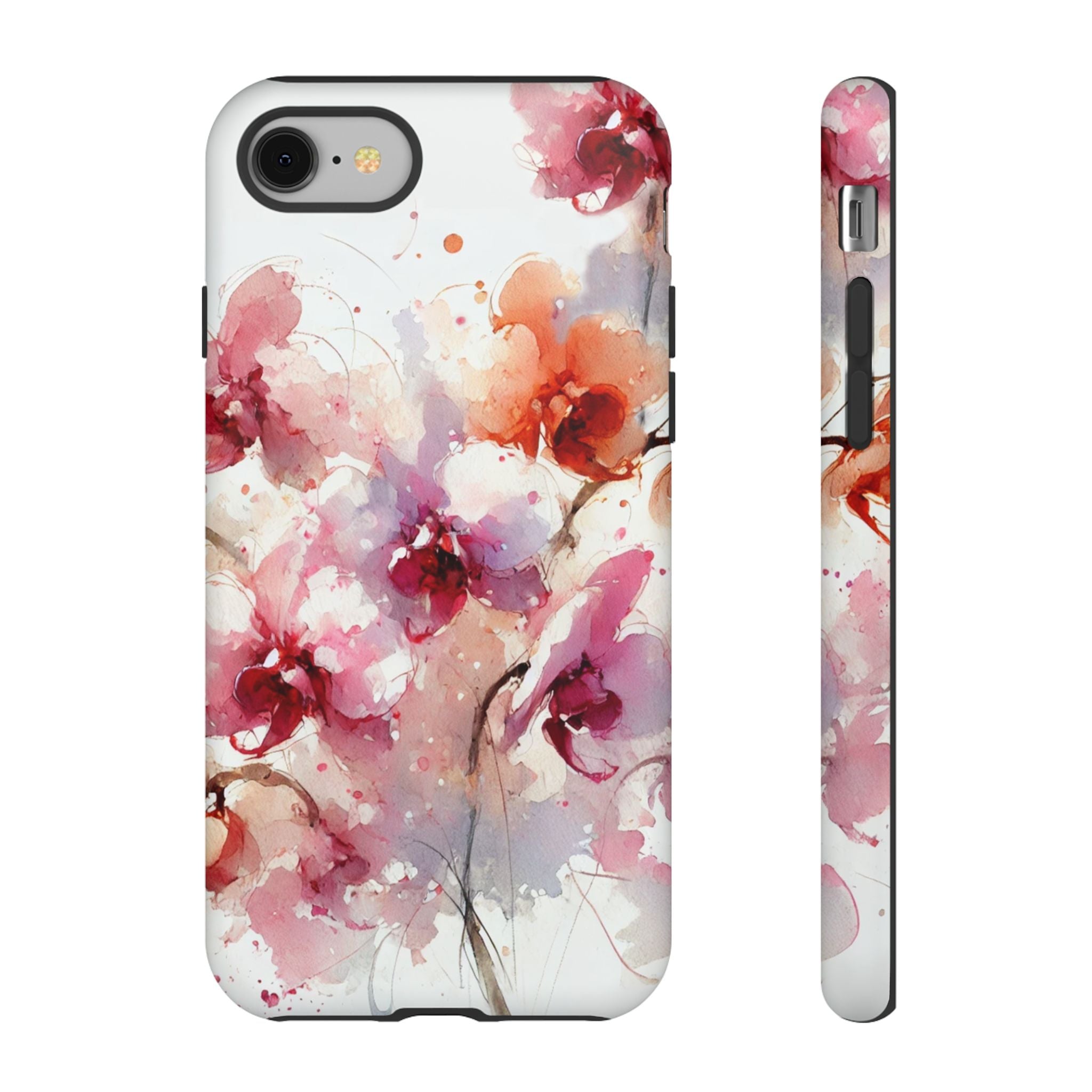 Experience the ultimate phone protection with the Tough Case - Autumn. This beautiful case features a stunning watercolor design of orchids in soft pinks and warm oranges, capturing the gentle, radiant beauty of nature in autumn. The design extends around the entire case and is sure to make a statement while protecting your phone with style.