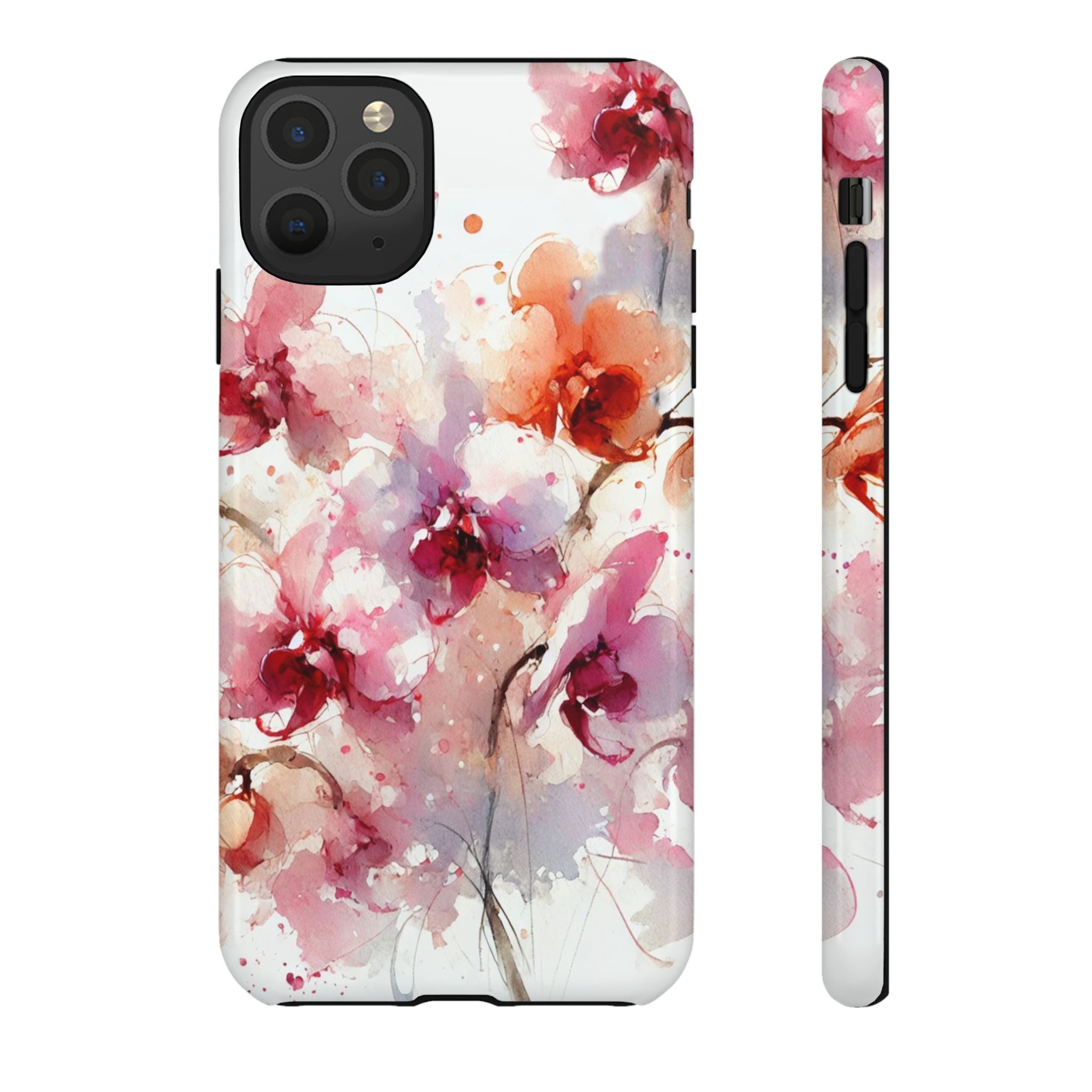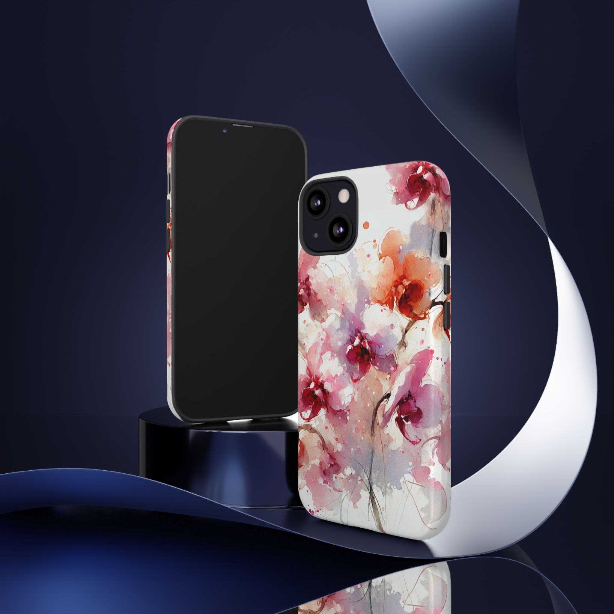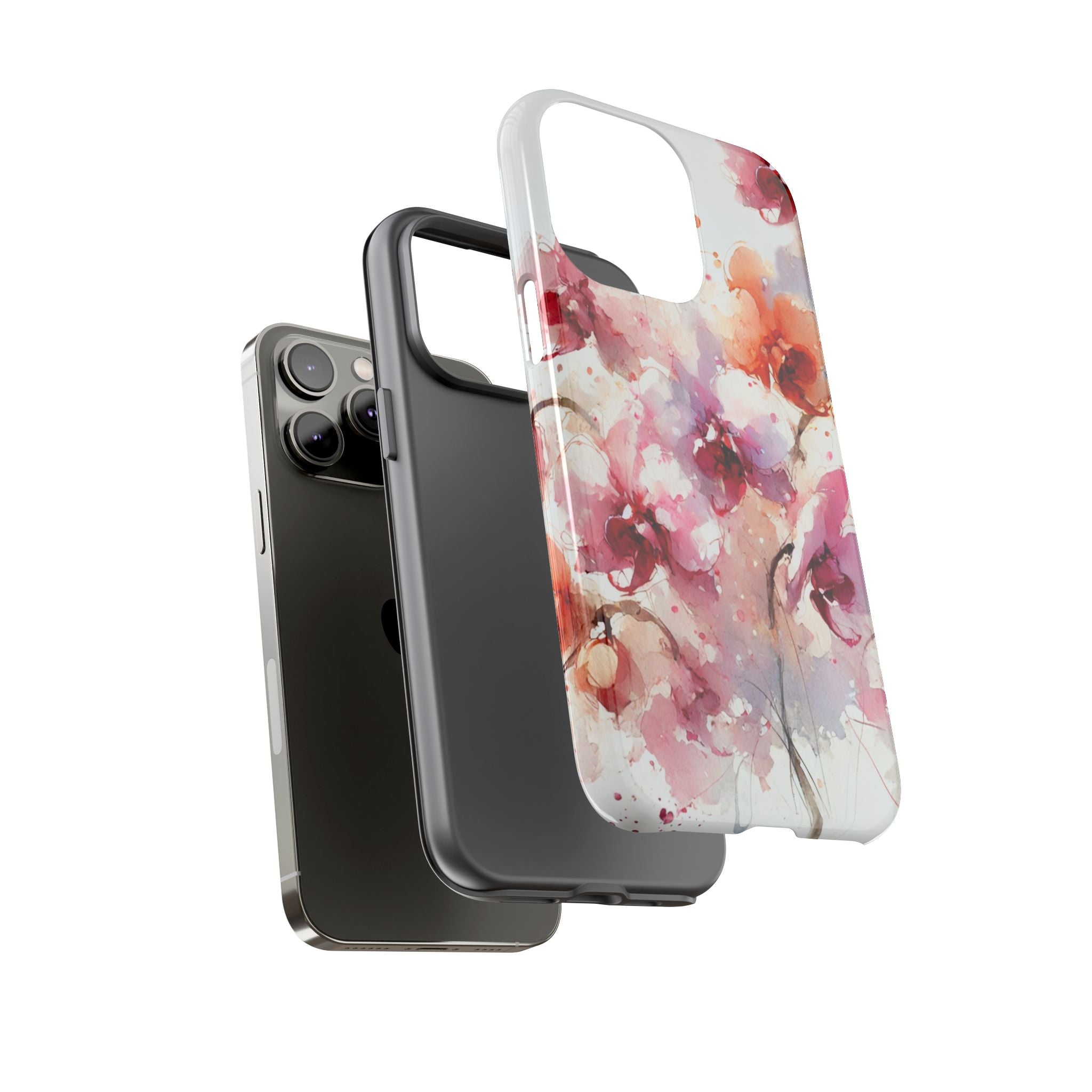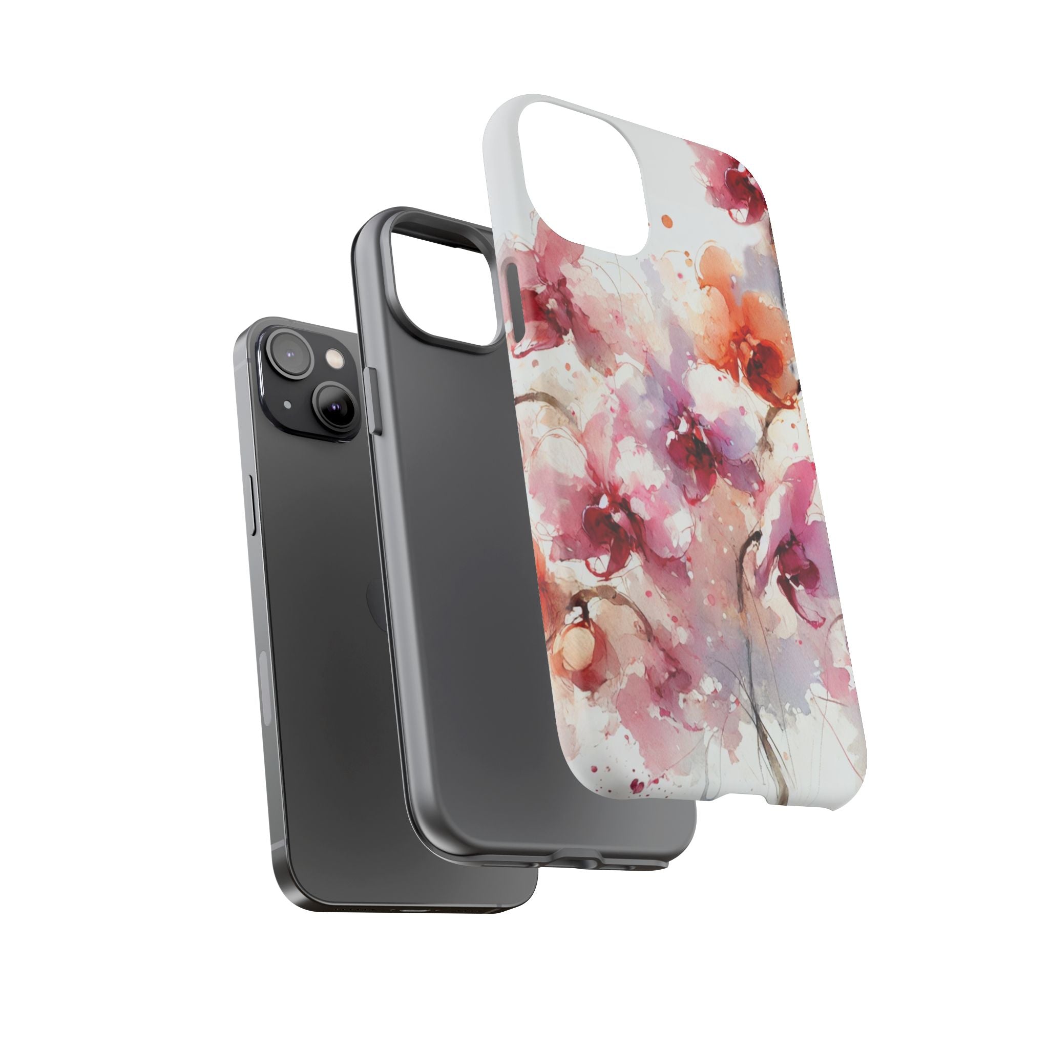Experience the ultimate phone protection with the Tough Case - Autumn. This beautiful case features a stunning watercolor design of orchids in soft pinks and warm oranges, capturing the gentle, radiant beauty of nature in autumn. The design extends around the entire case and is sure to make a statement while protecting your phone with style.