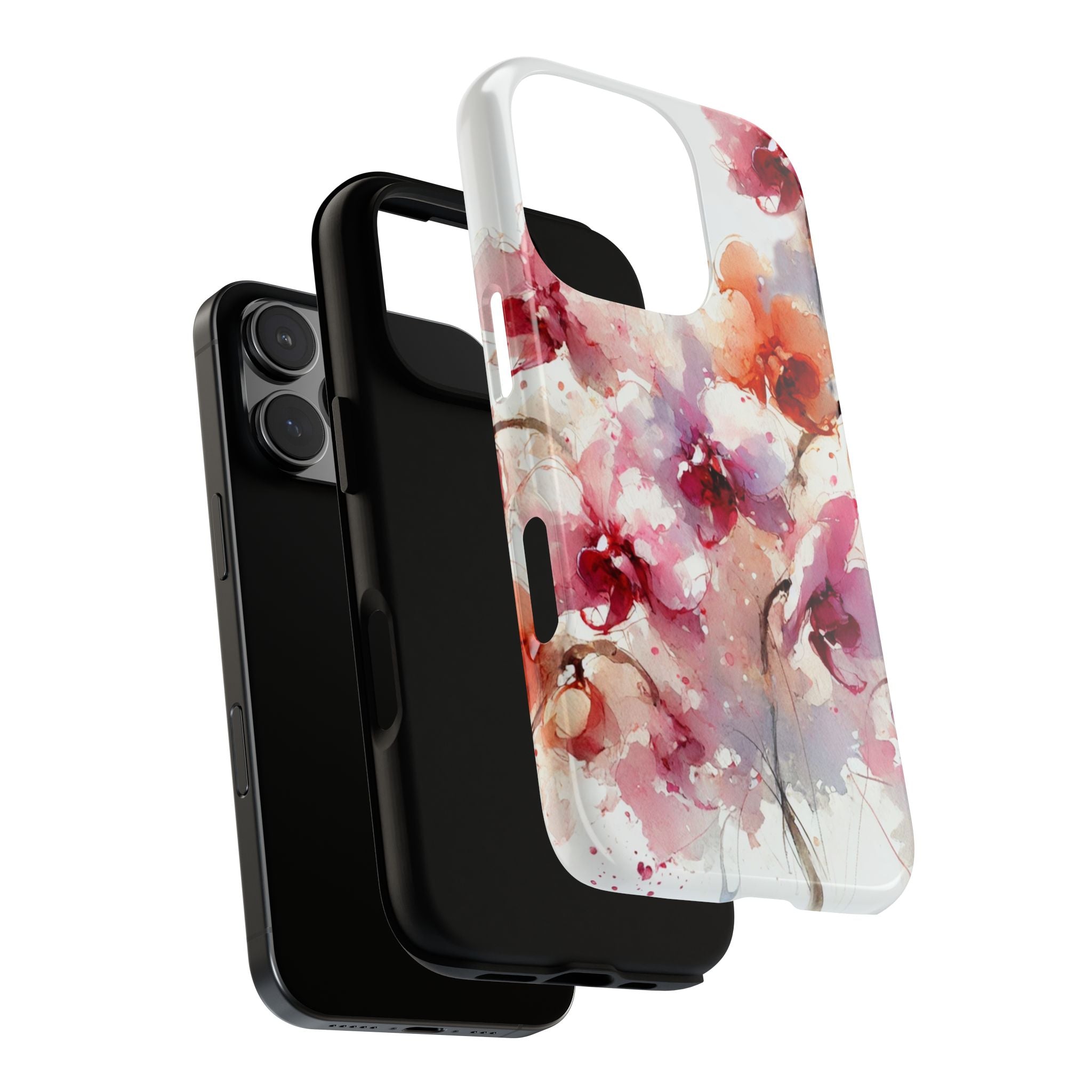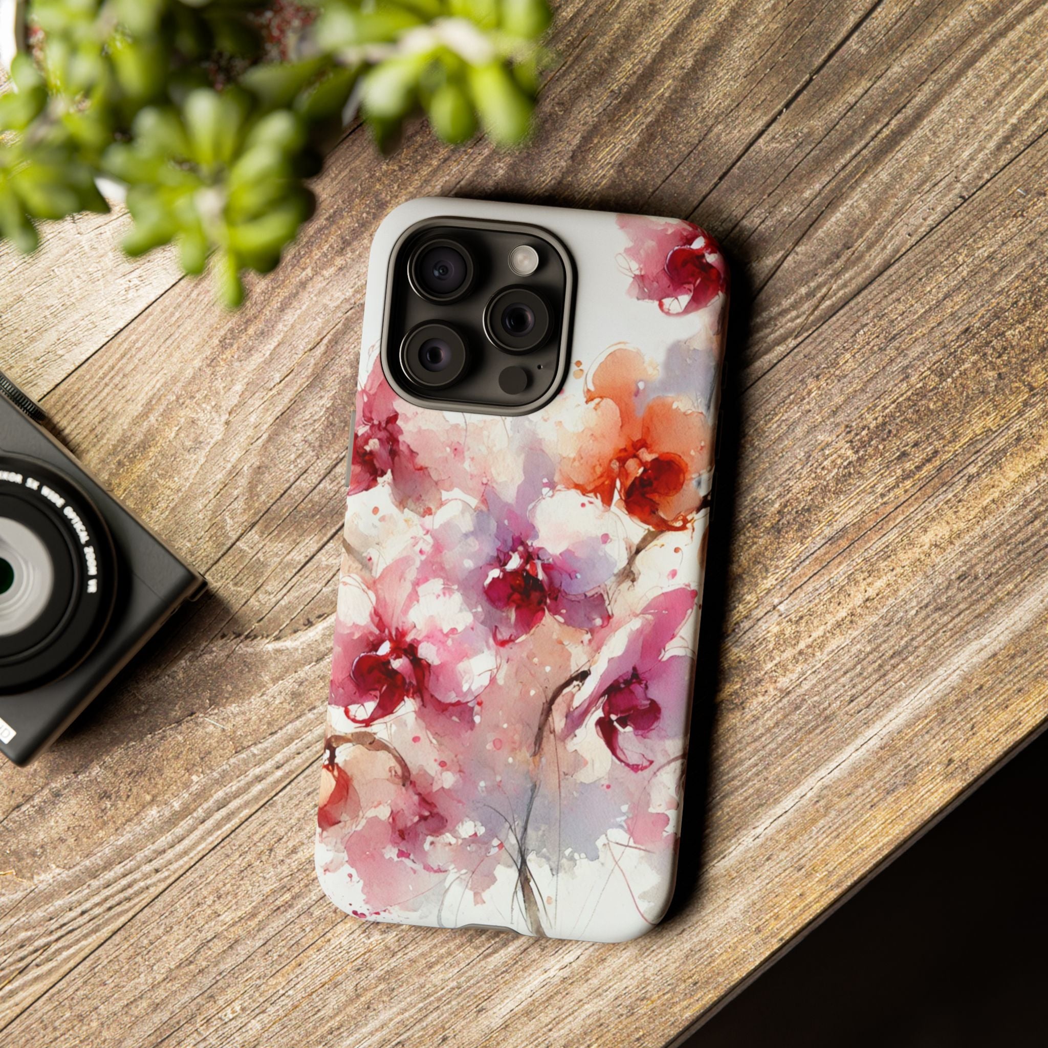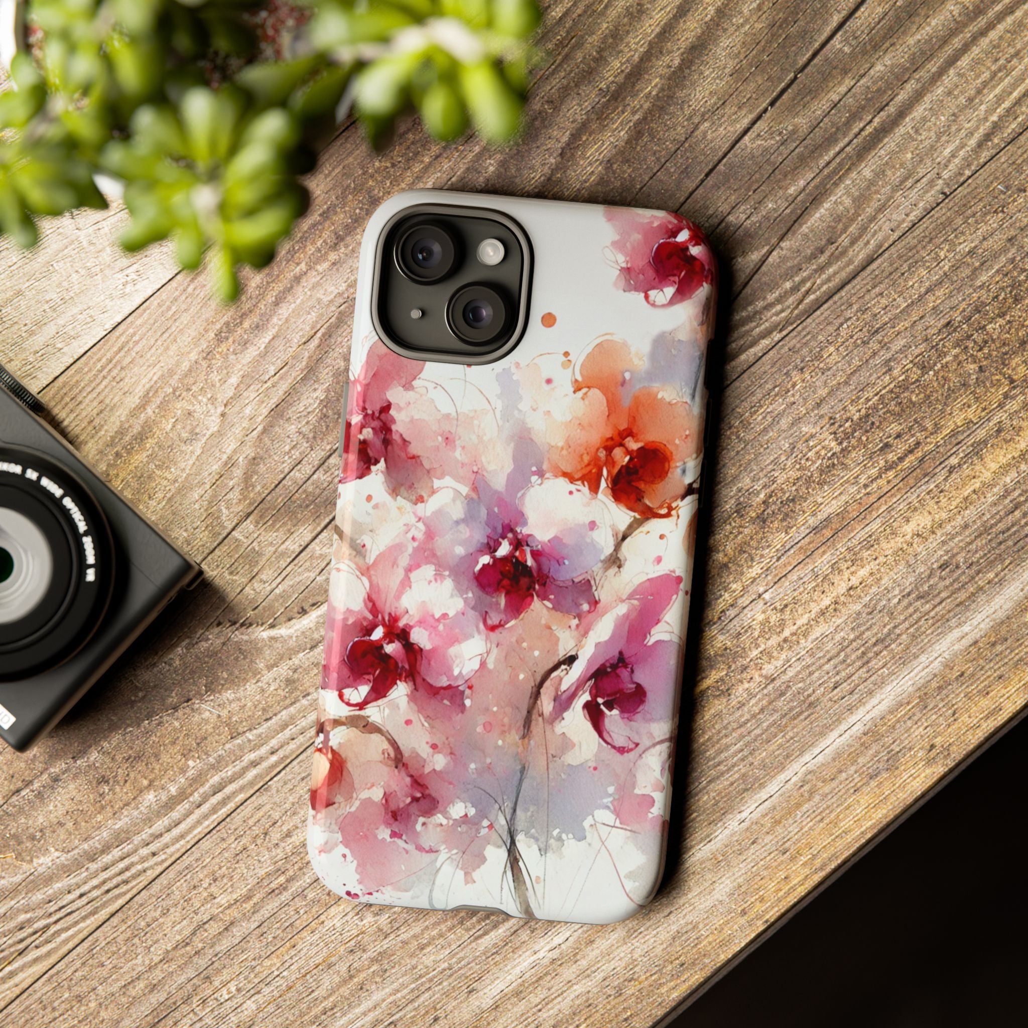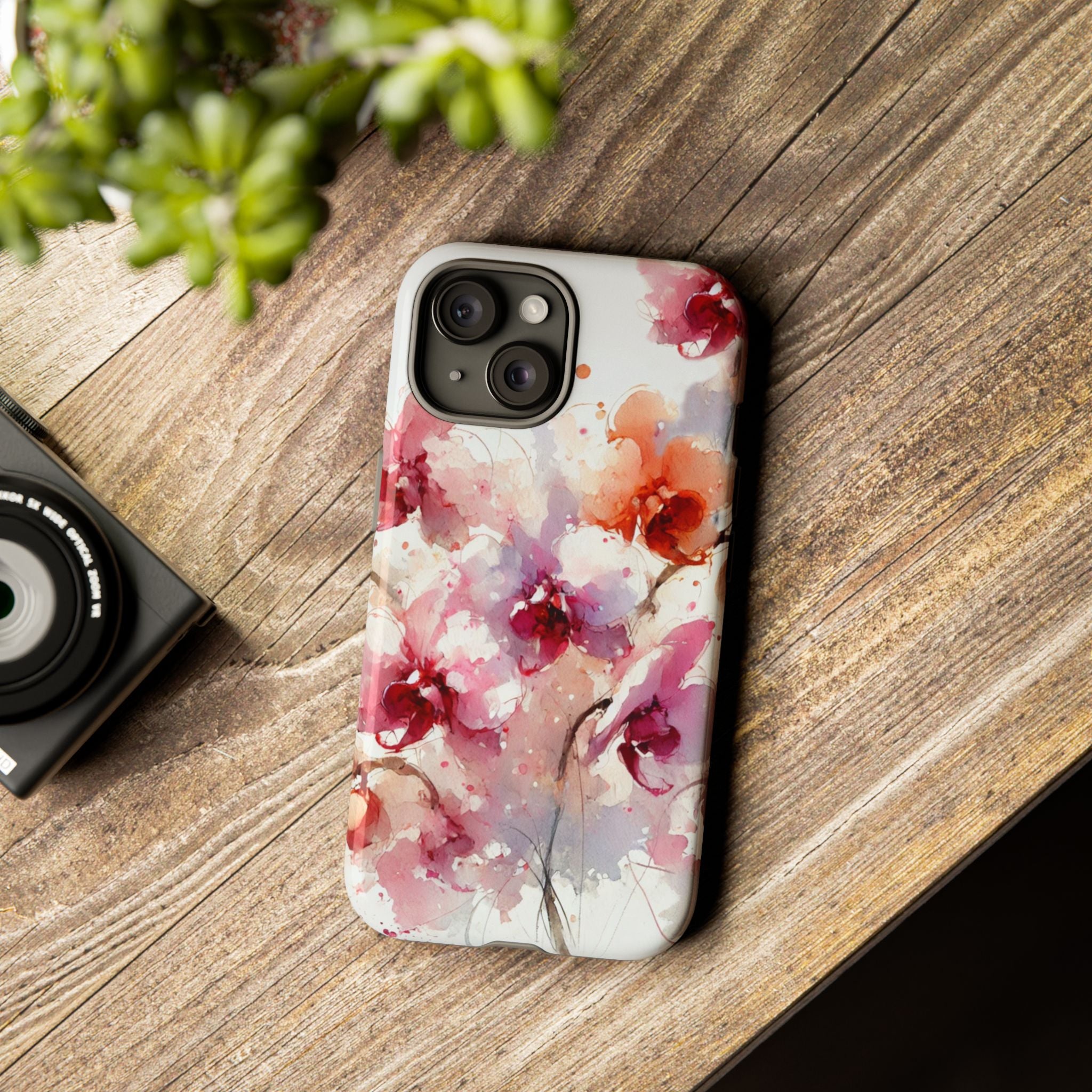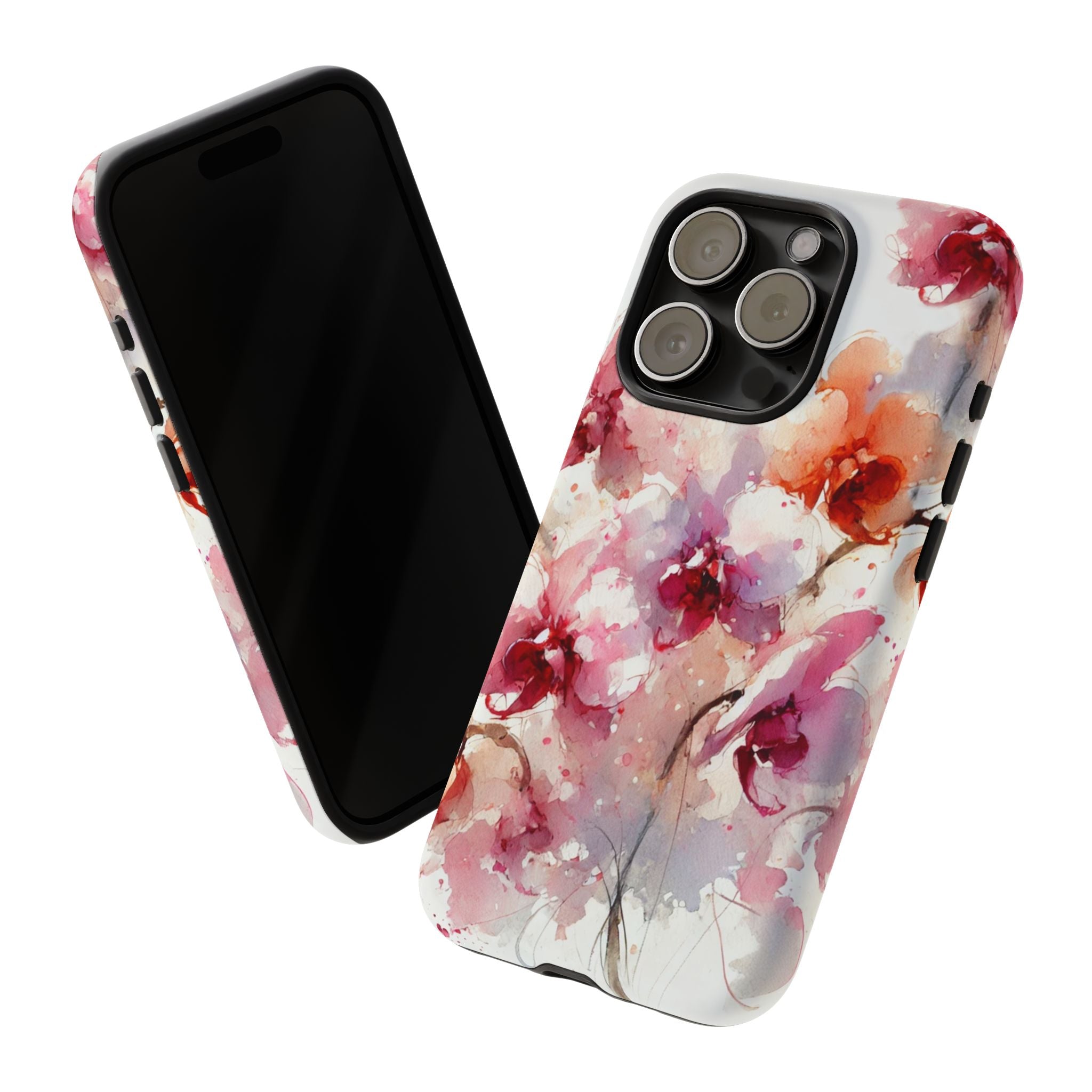 Experience the ultimate phone protection with the Tough Case - Autumn. This beautiful case features a stunning watercolor design of orchids in soft pinks and warm oranges, capturing the gentle, radiant beauty of nature in autumn. The design extends around the entire case and is sure to make a statement while protecting your phone with style.