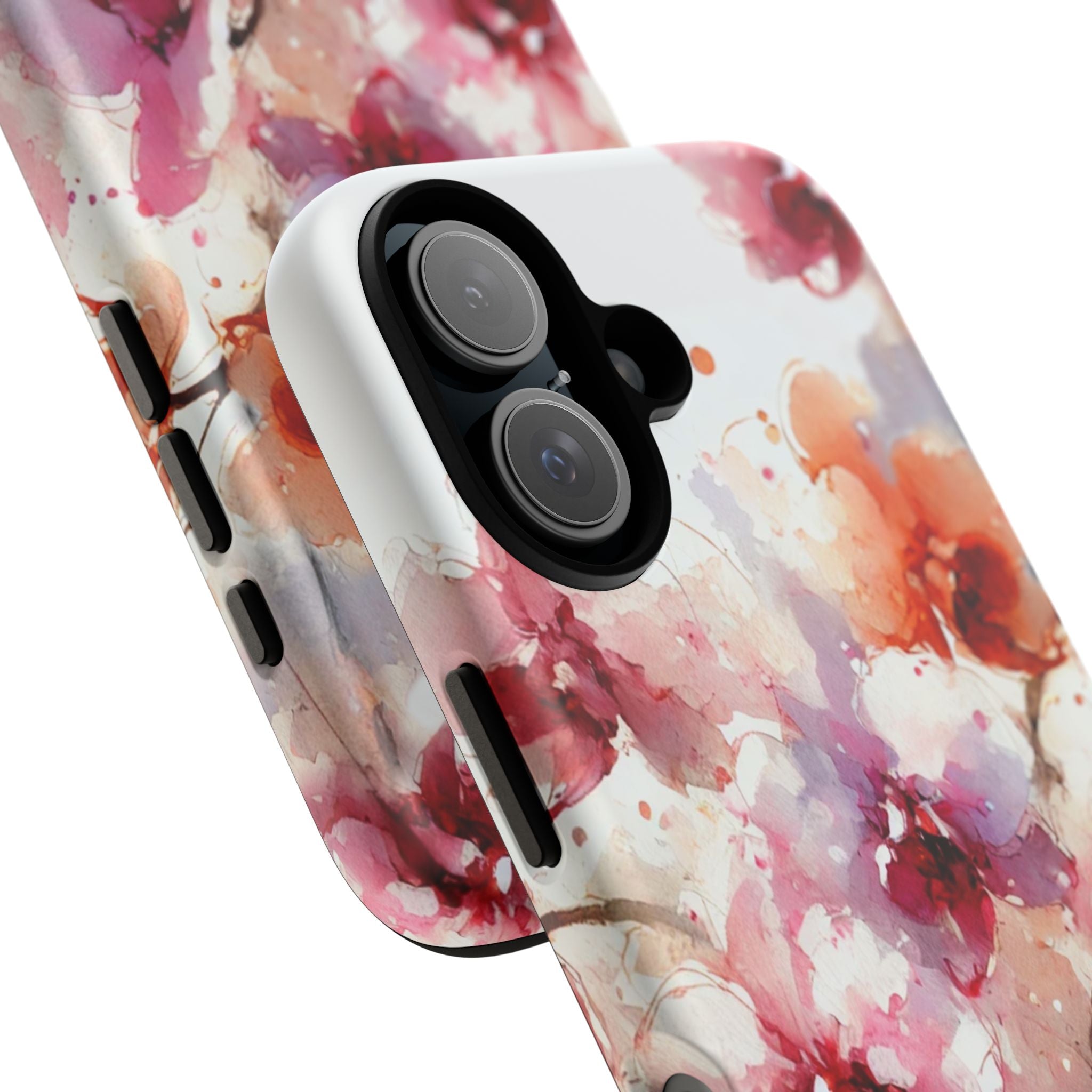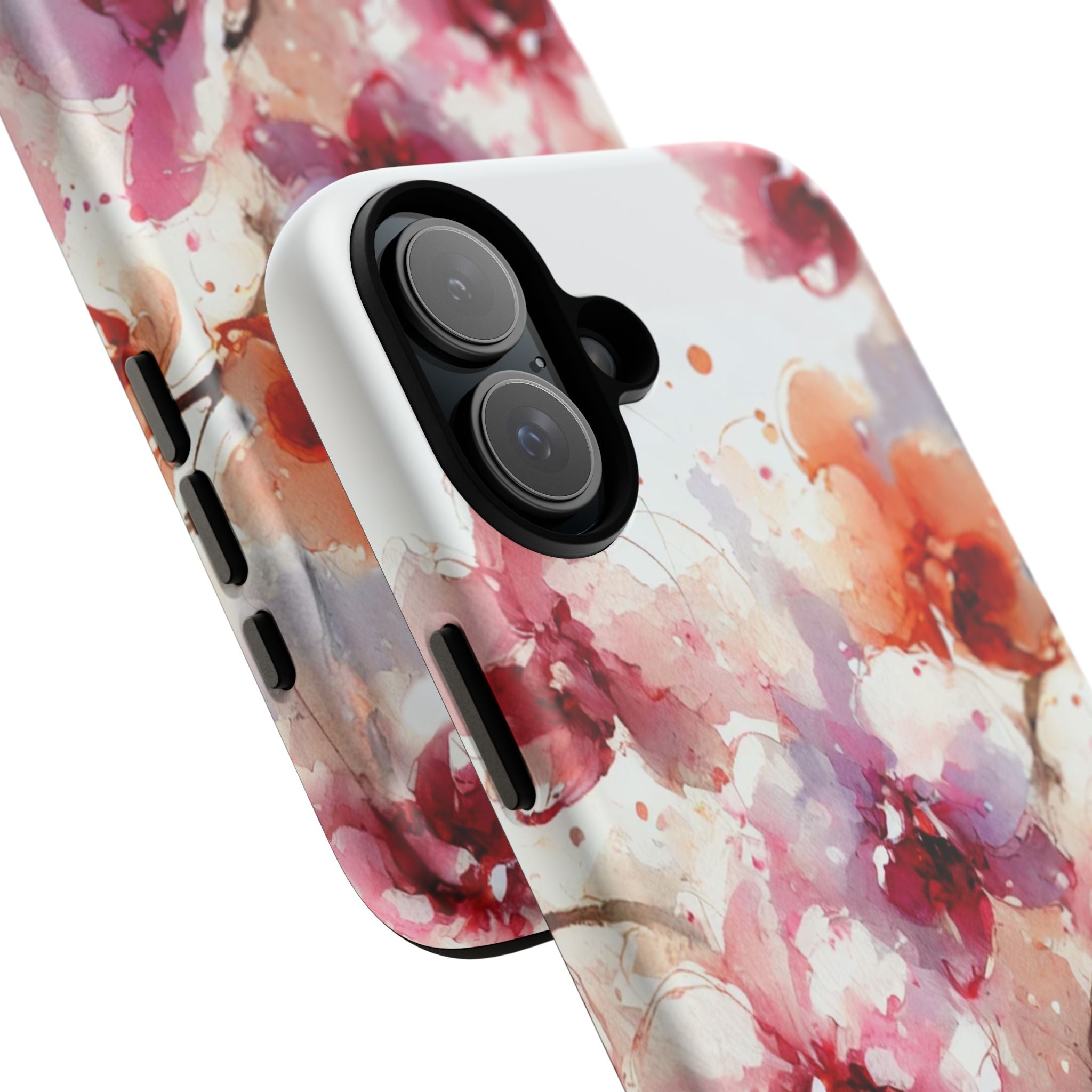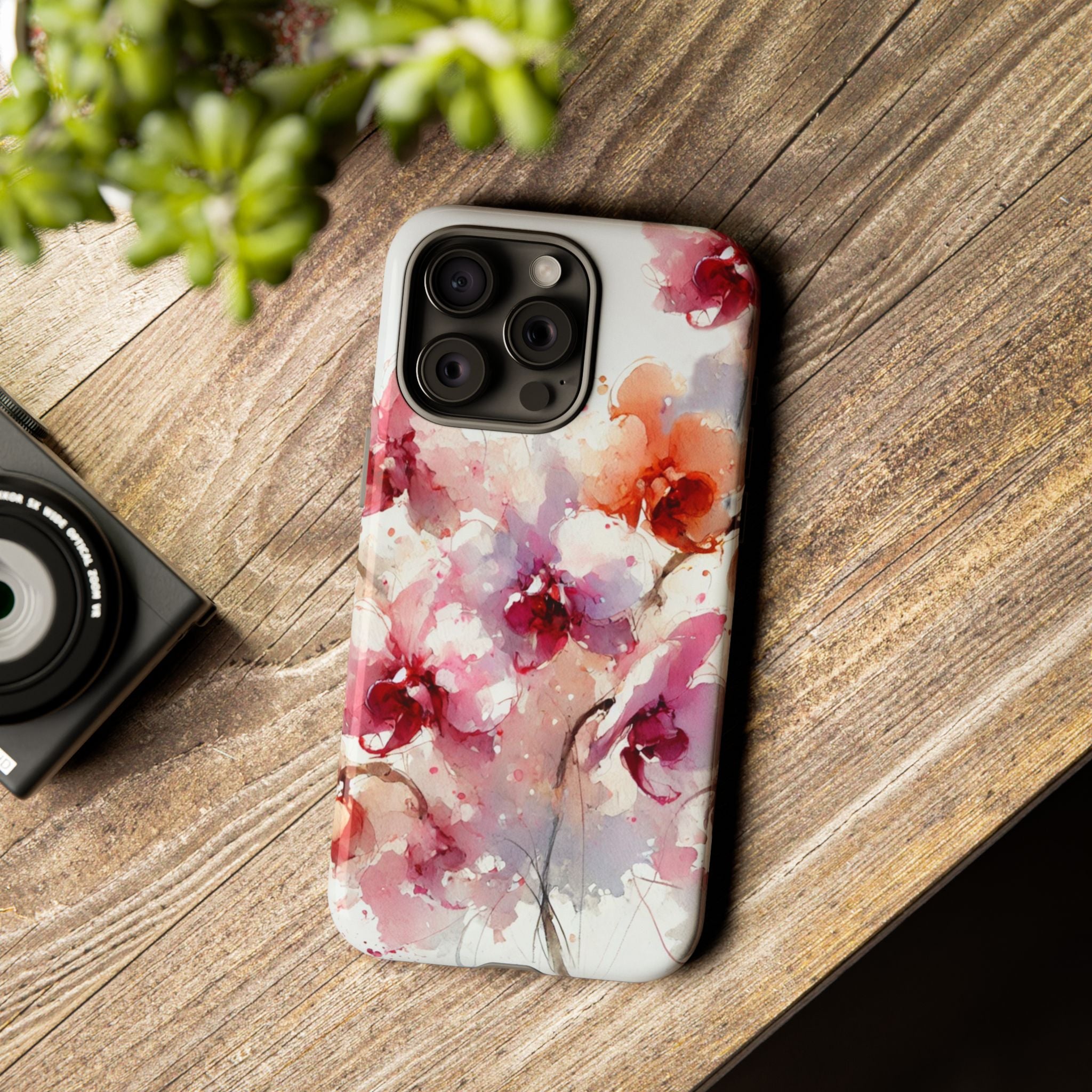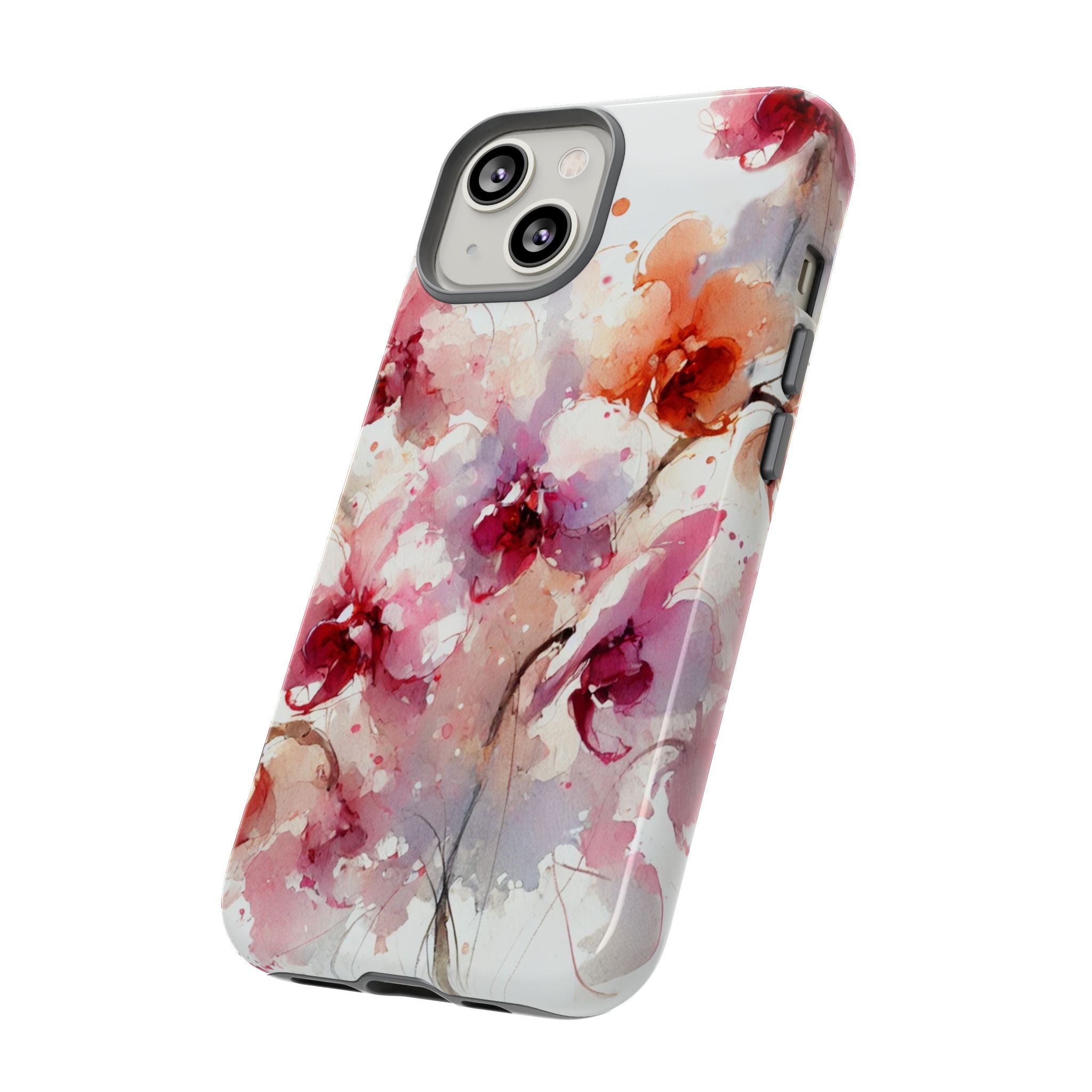 Experience the ultimate phone protection with the Tough Case - Autumn. This beautiful case features a stunning watercolor design of orchids in soft pinks and warm oranges, capturing the gentle, radiant beauty of nature in autumn. The design extends around the entire case and is sure to make a statement while protecting your phone with style.