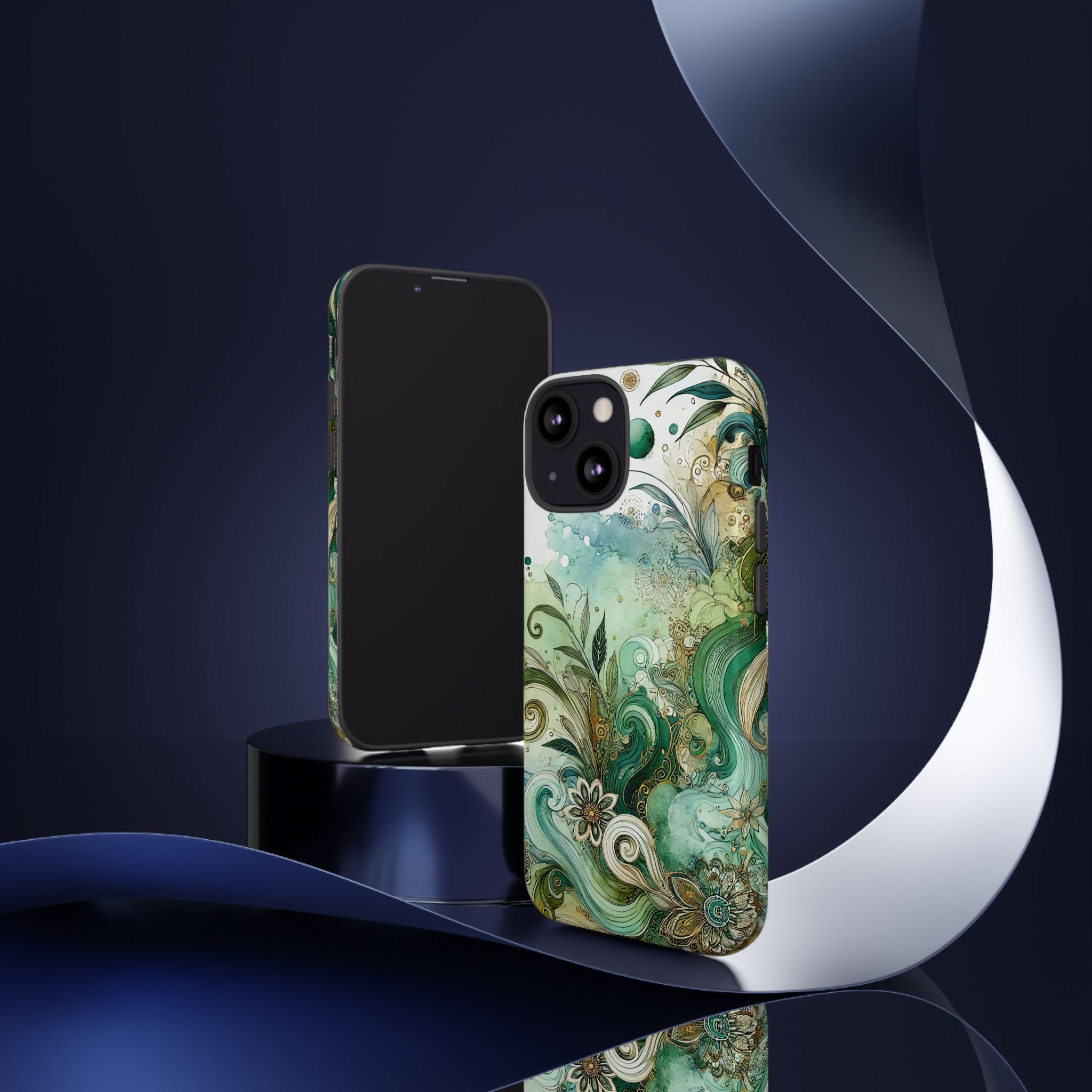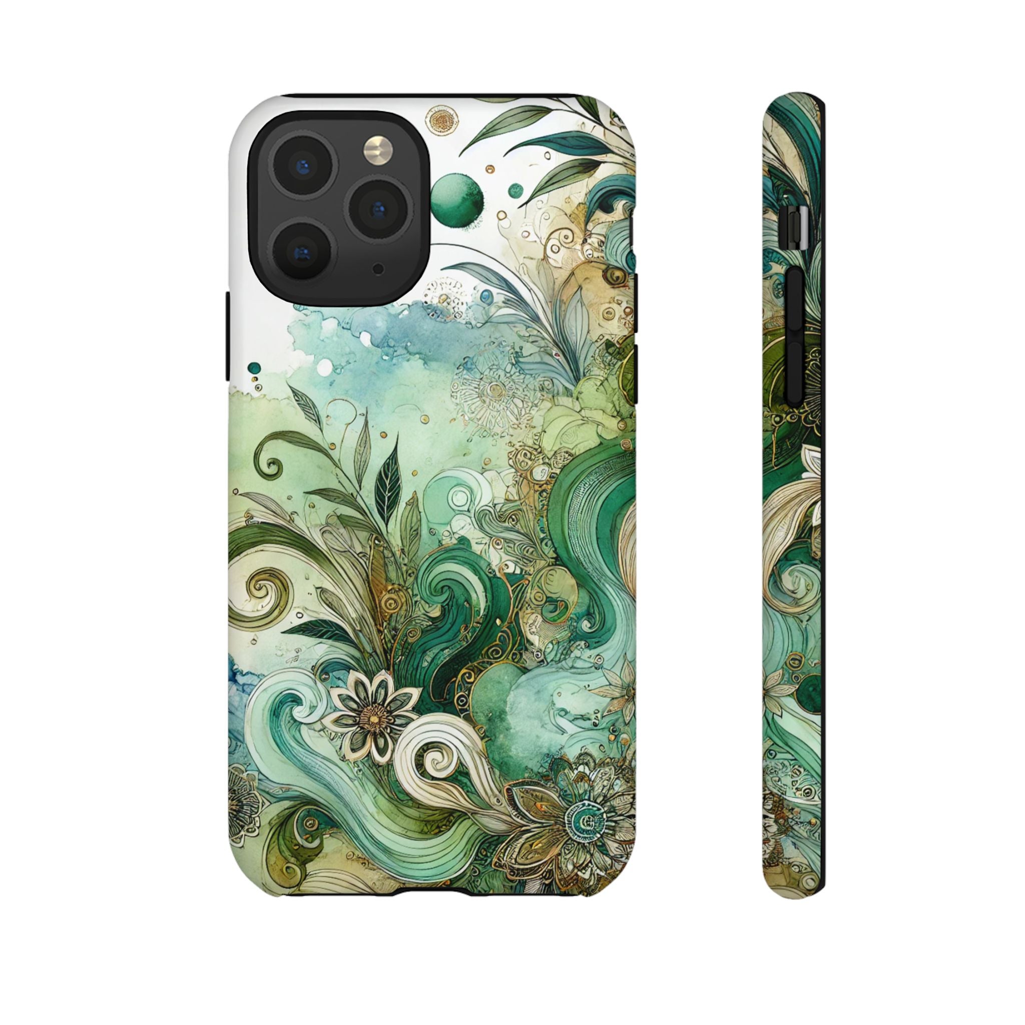 Experience the ultimate phone protection with the Tough Case - Enchantment. This beautiful case with its vibrant watercolour wash and intricate flowers in shades of green captures the essence of enchantment. The design extends around the entire case and is sure to make a statement while protecting your phone with style.