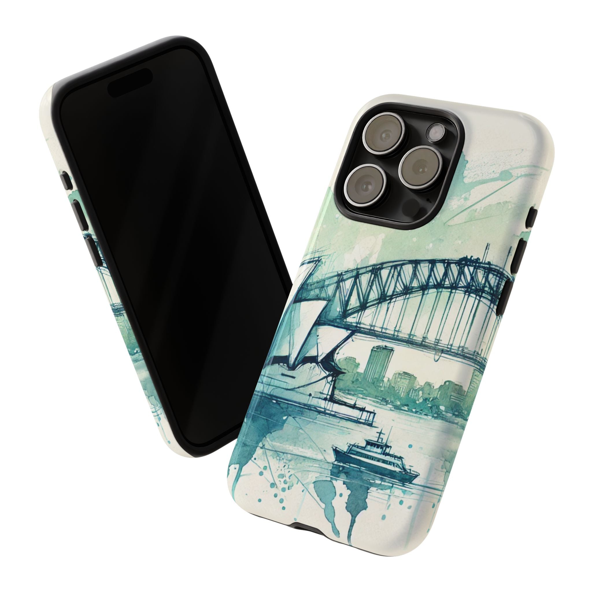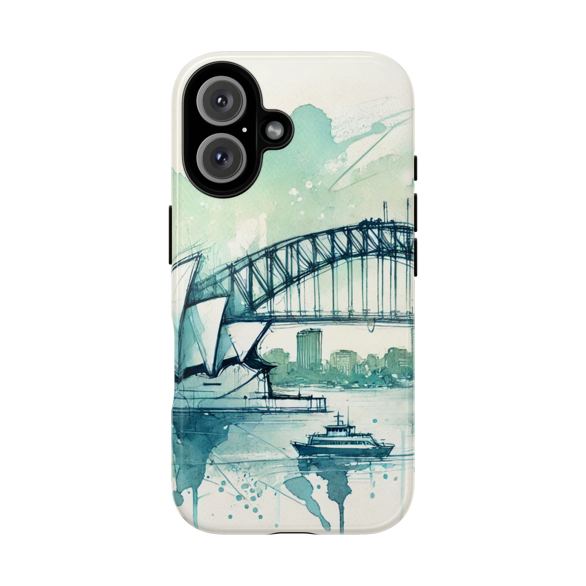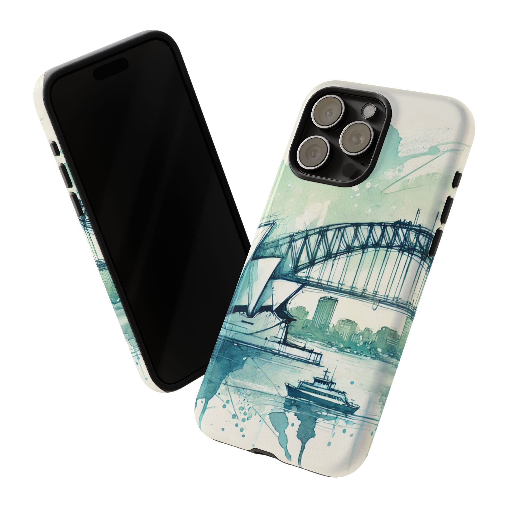 Experience the ultimate phone protection with the Tough Case - Sydney. This beautiful case features a stunning ink and watercolor design of Sydney Harbour, capturing the iconic beauty and vibrant energy of this world-famous landmark. The design extends around the entire case and is sure to make a statement while protecting your phone with style.