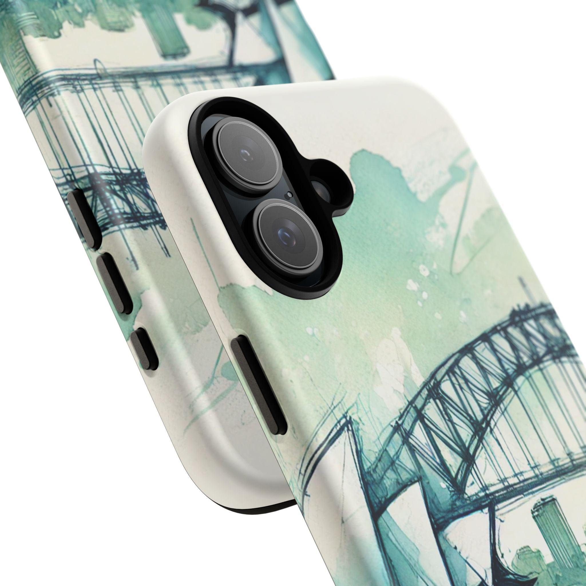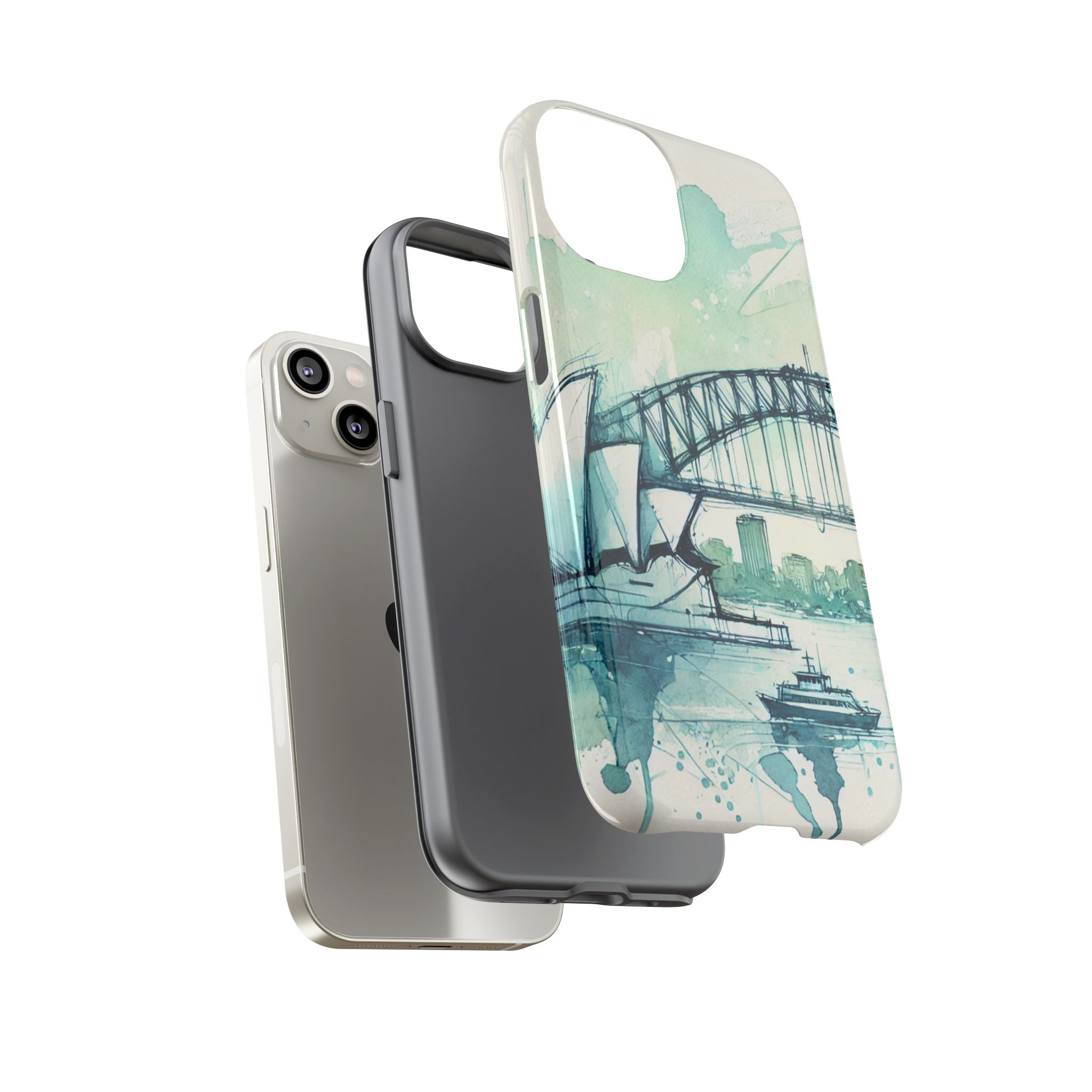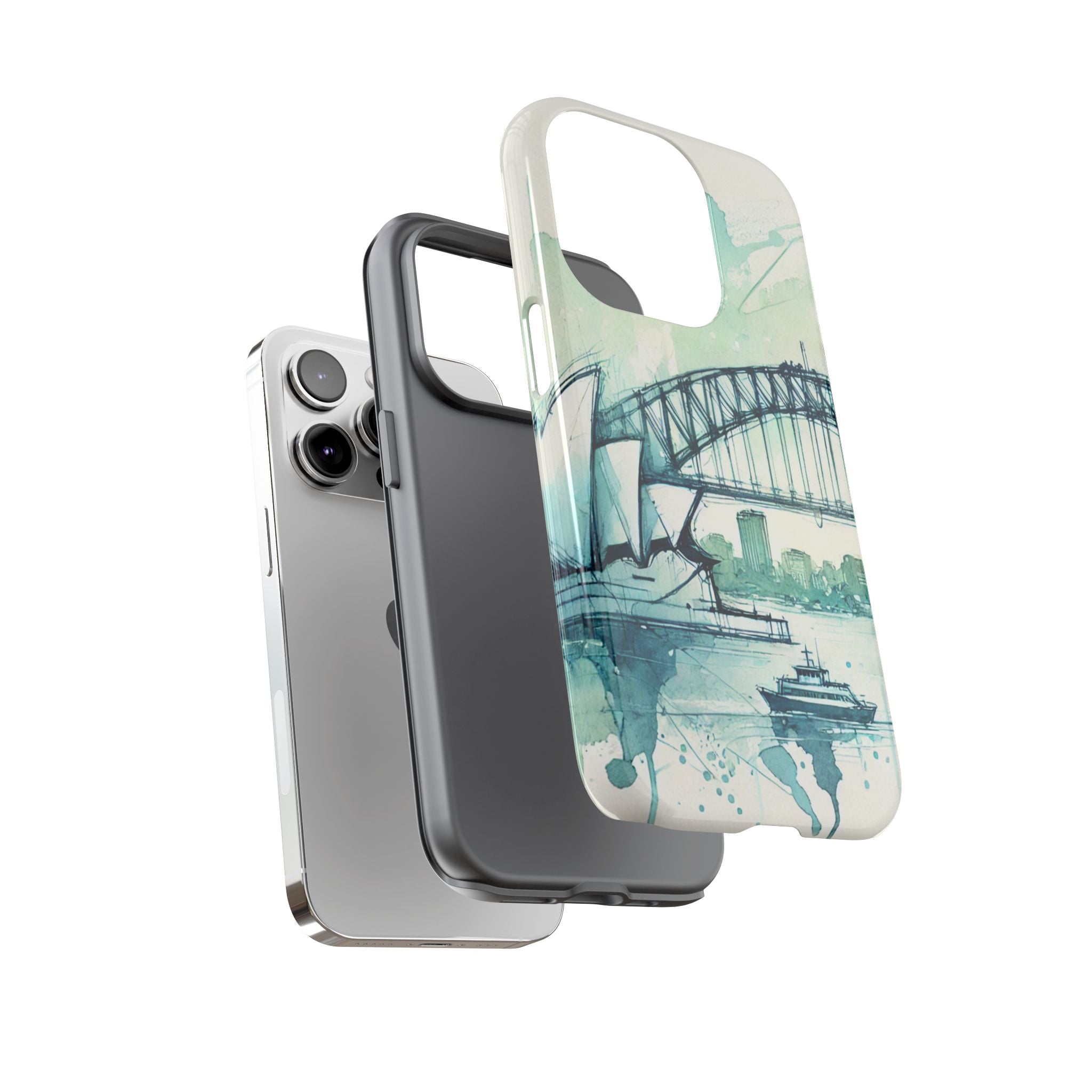 Experience the ultimate phone protection with the Tough Case - Sydney. This beautiful case features a stunning ink and watercolor design of Sydney Harbour, capturing the iconic beauty and vibrant energy of this world-famous landmark. The design extends around the entire case and is sure to make a statement while protecting your phone with style.