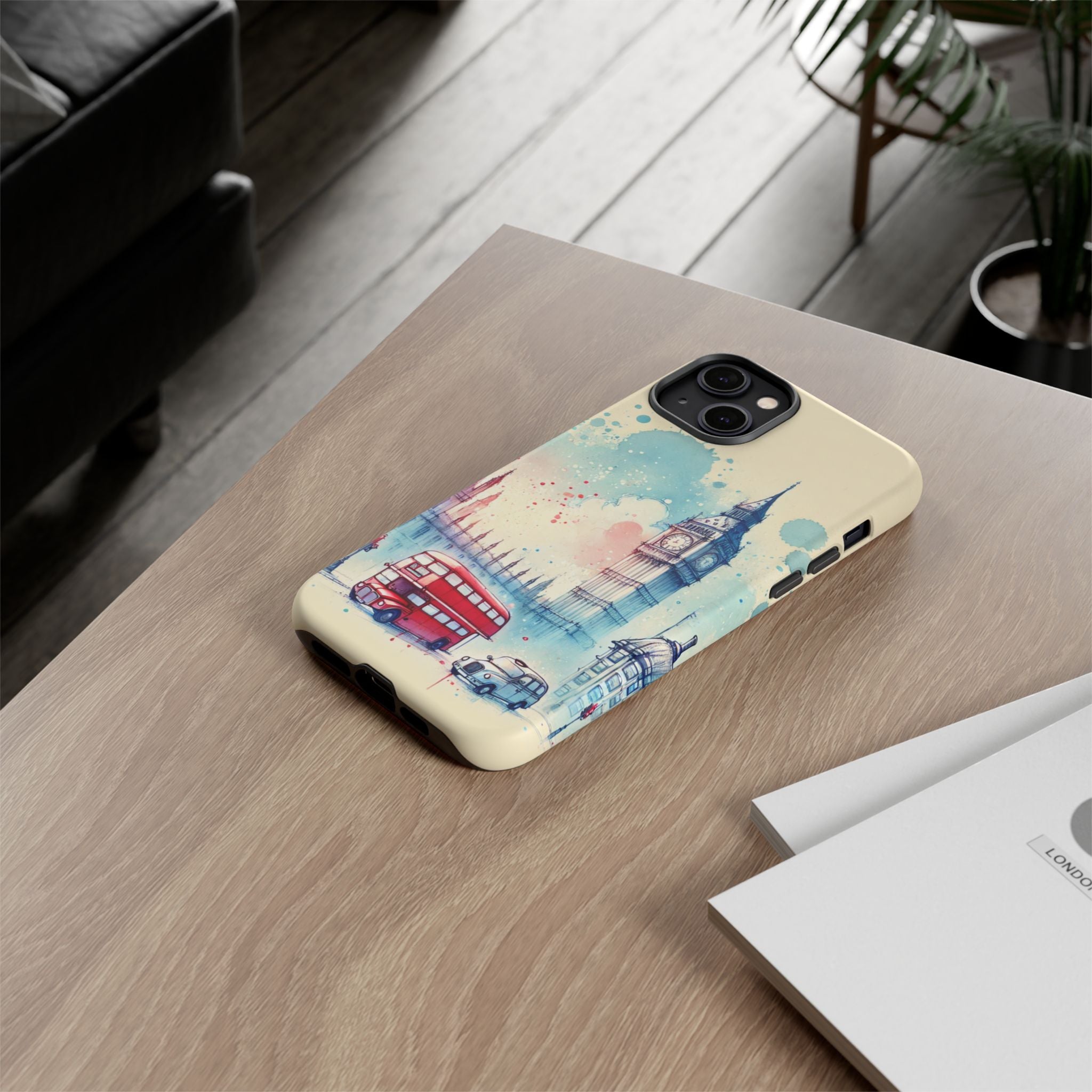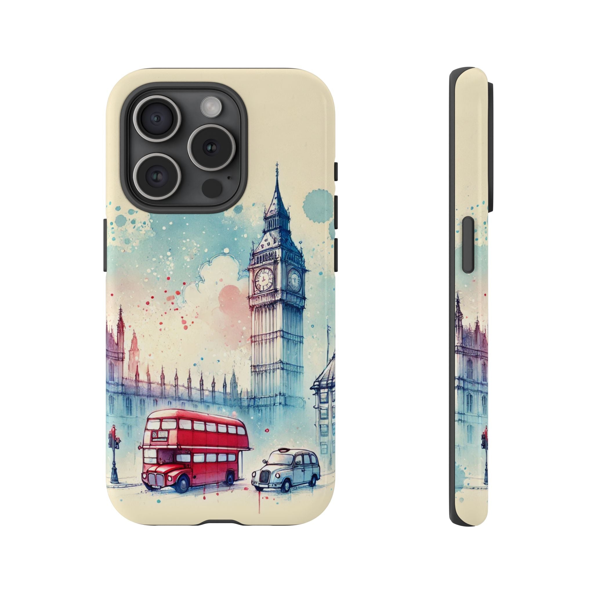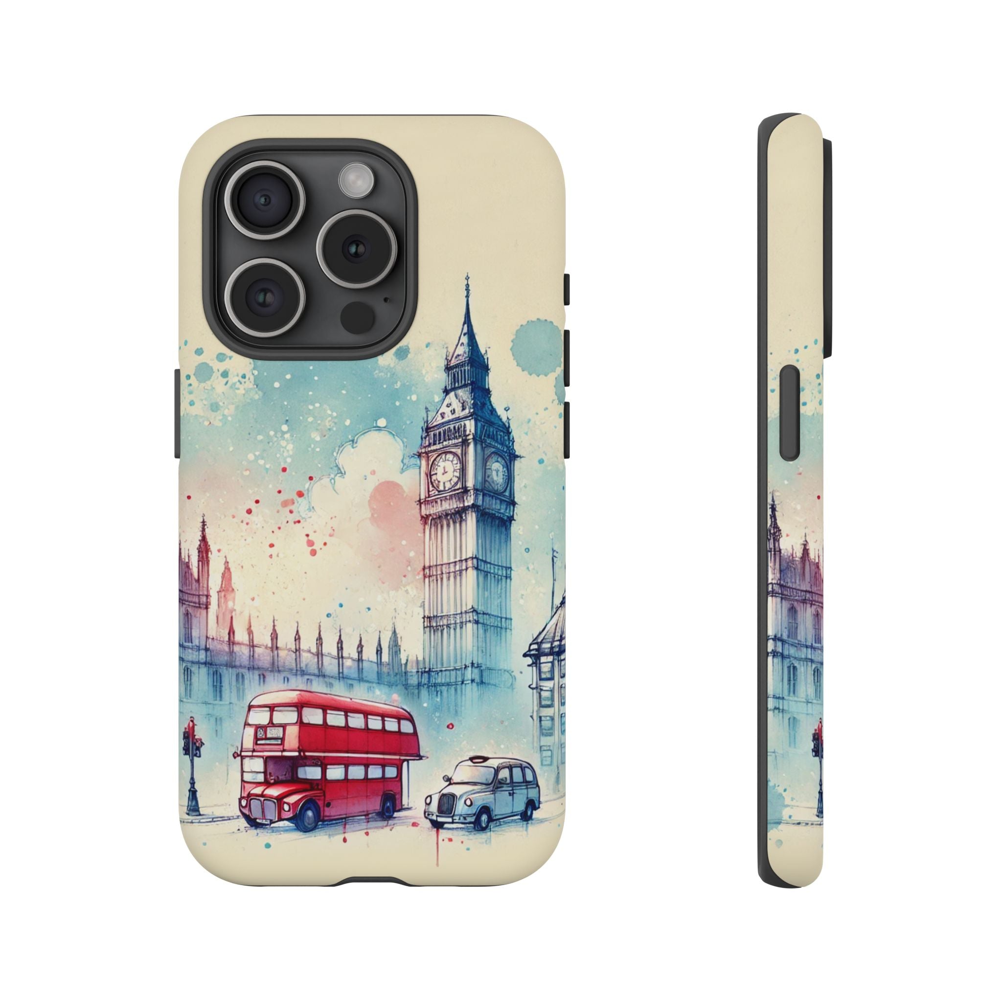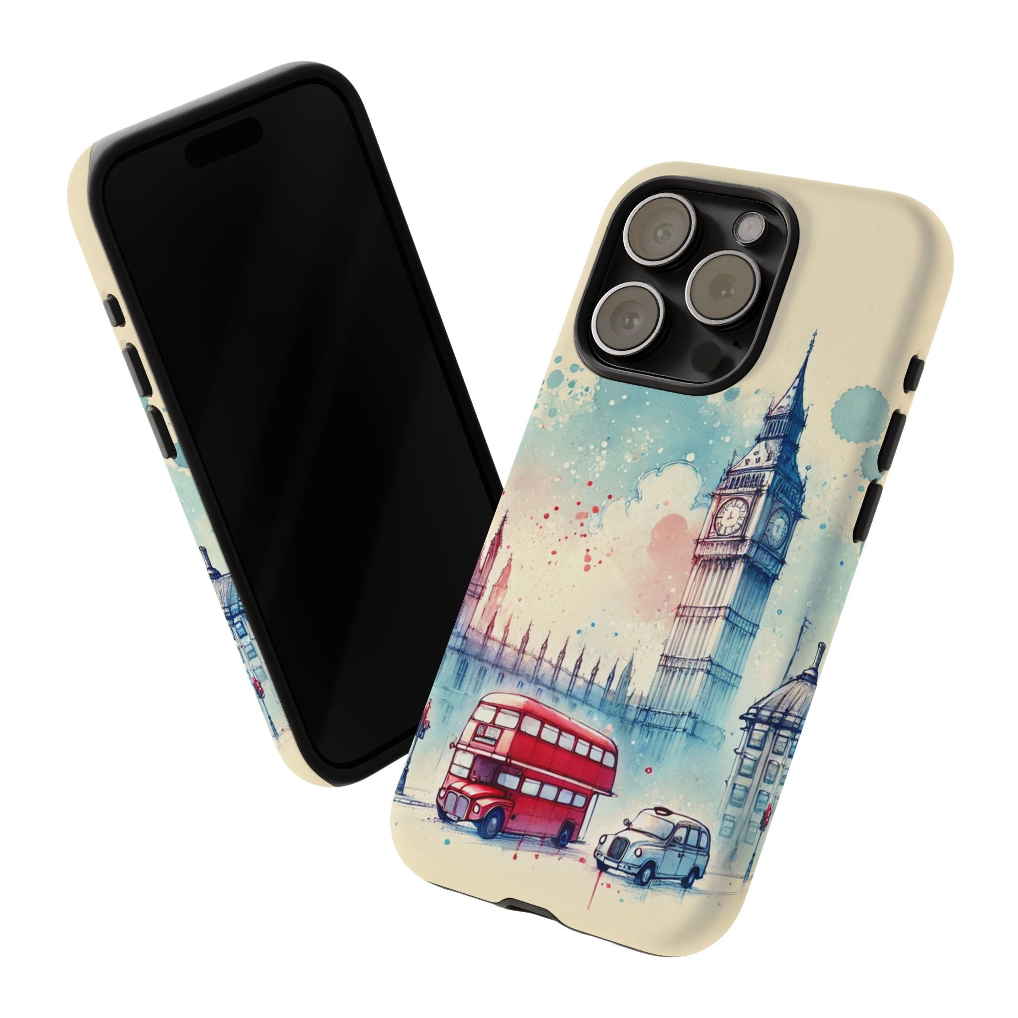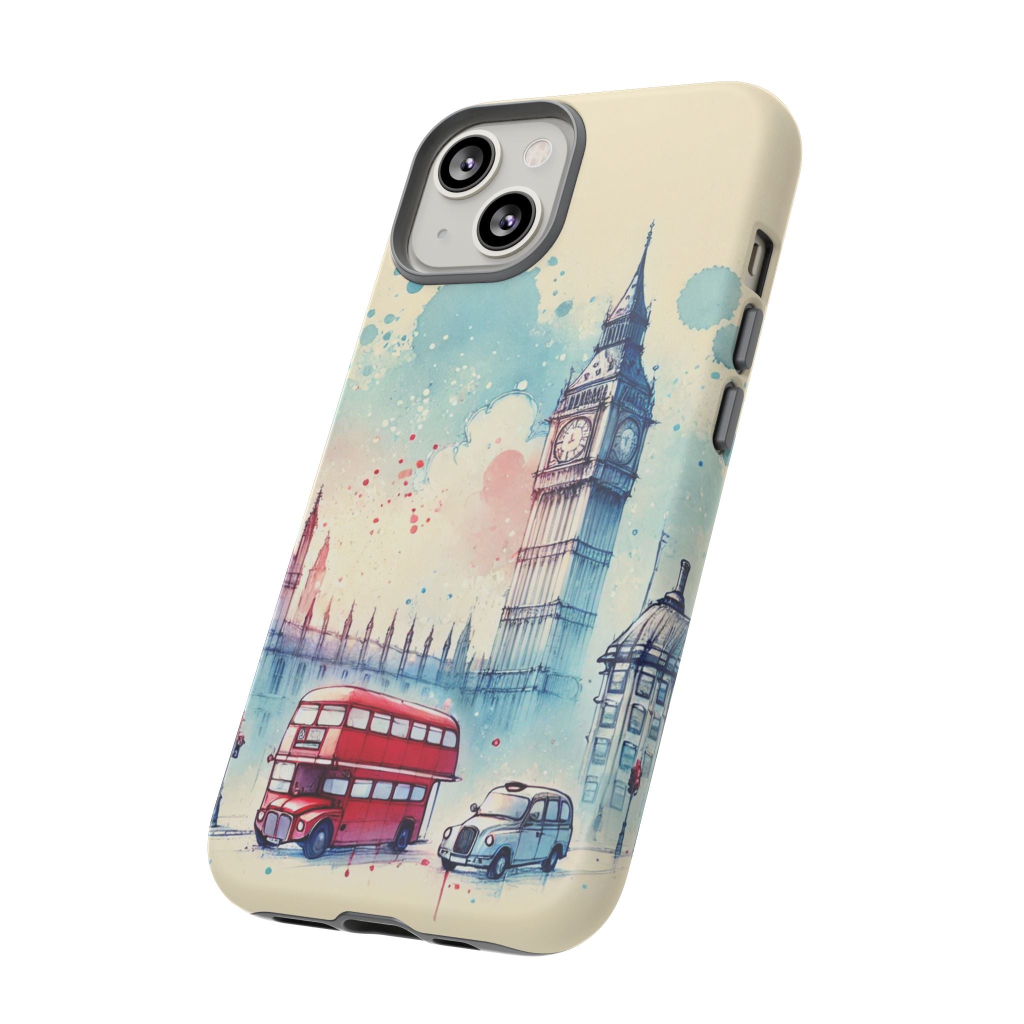 Experience the ultimate phone protection with the Tough MagSafe Case - London. This beautiful case features a stunning watercolor and ink design of London, showcasing the iconic Big Ben and a classic red London bus, capturing the charm and timeless energy of this historic city. The design extends around the entire case and is sure to make a statement while protecting your phone with style.