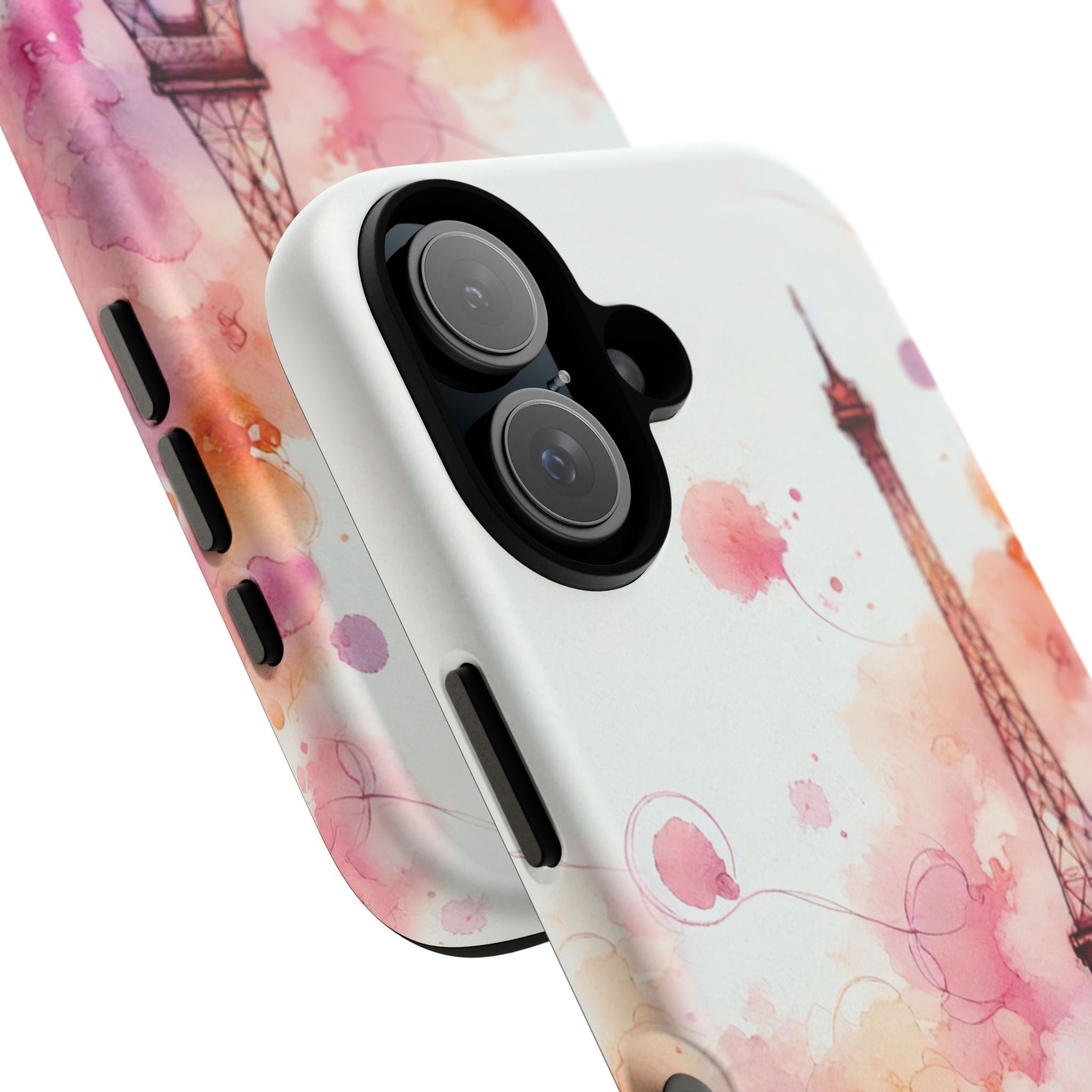 Experience the ultimate phone protection with the Tough MagSafe Case - Paris. This beautiful case features a stunning watercolor design of Paris, with soft pink hues and the iconic Eiffel Tower, capturing the romantic essence and timeless elegance of the City of Light. The design extends around the entire case and is sure to make a statement while protecting your phone with style.
