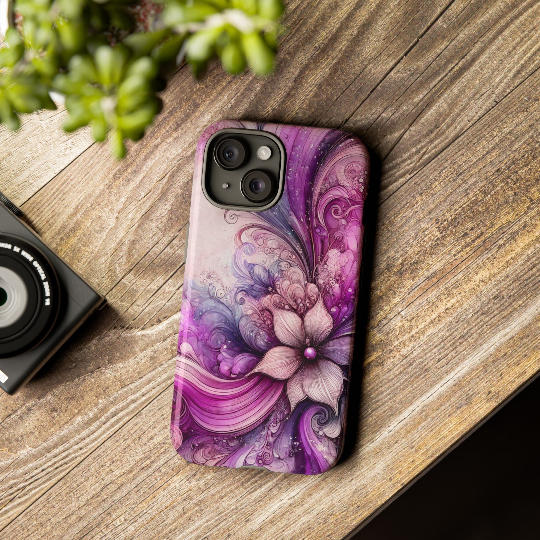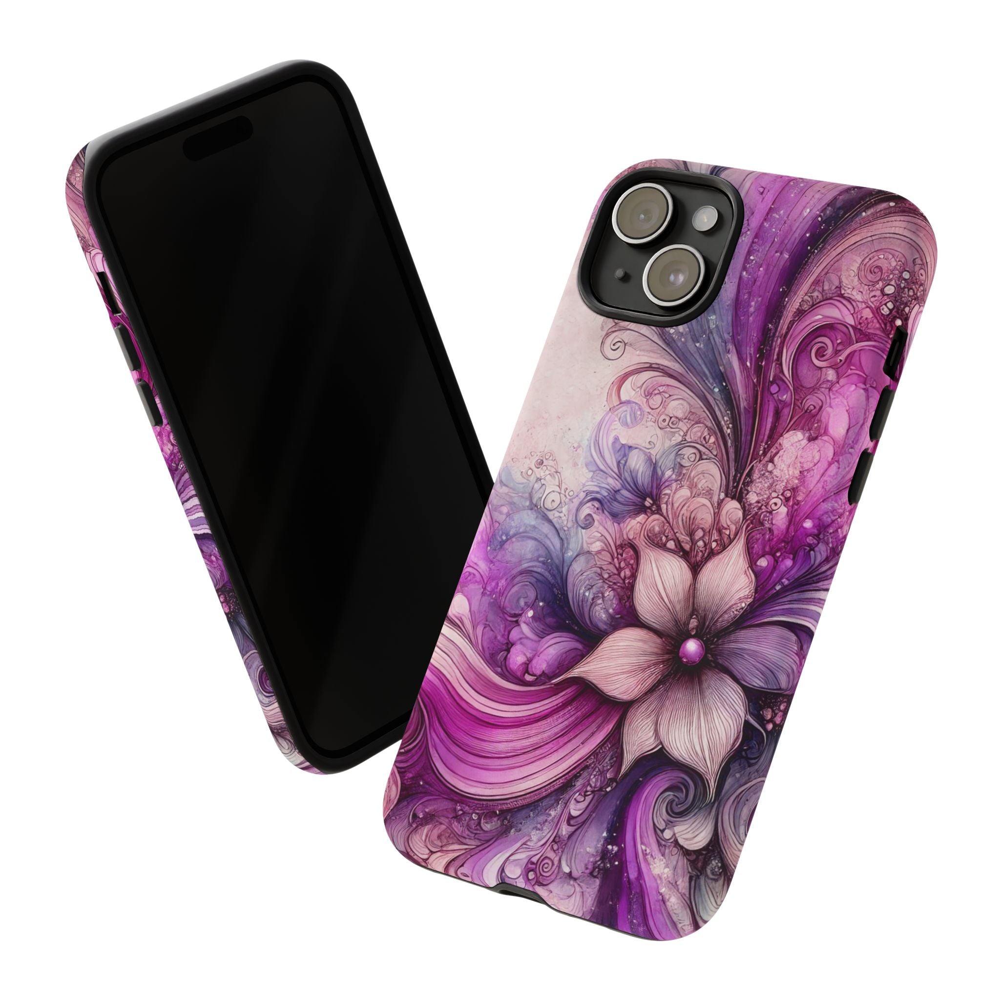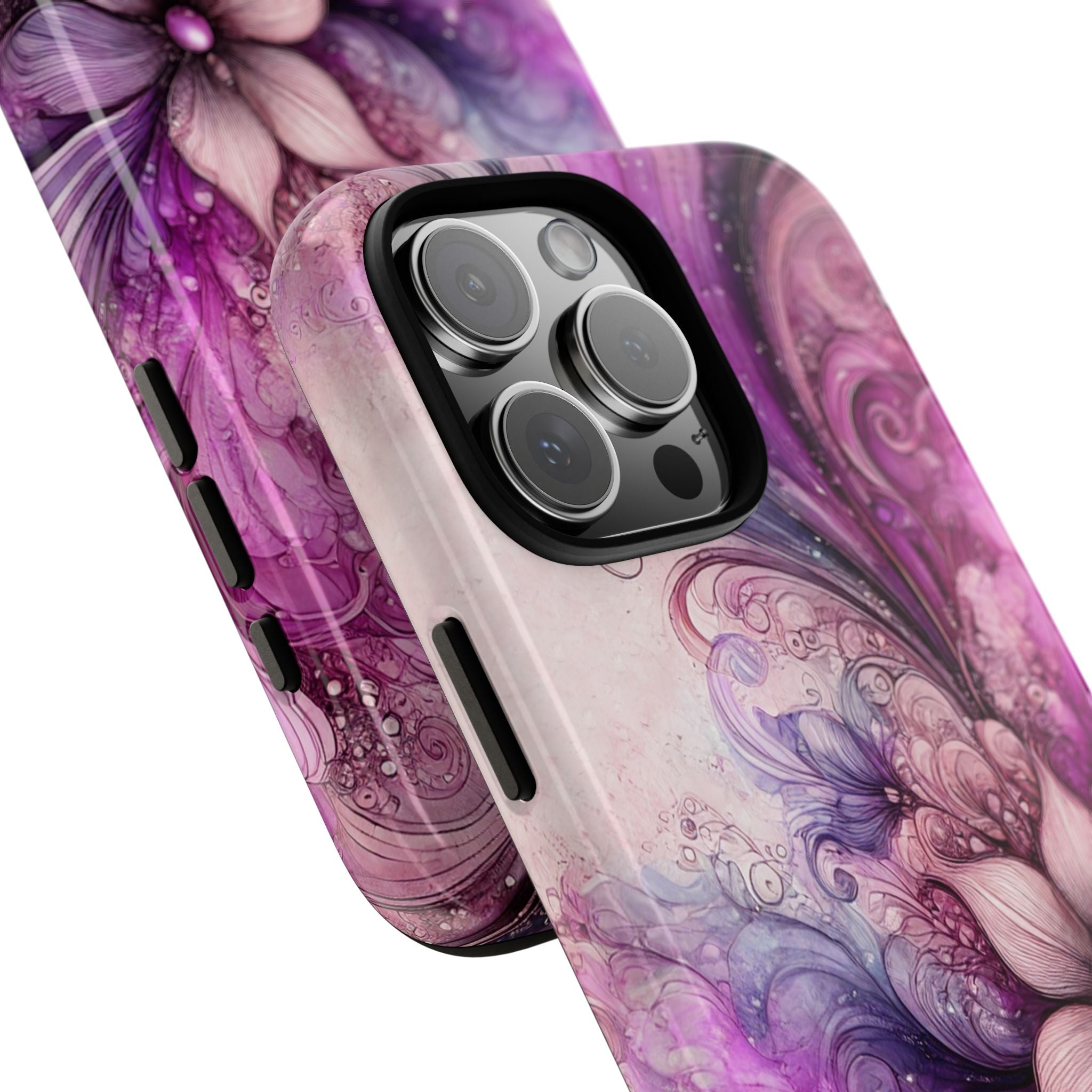 Experience the ultimate phone protection with the Tough MagSafe Case - Serenity. This beautiful case with its vibrant watercolour wash and intricate jewel-like flowers in shimmering pinks and purples captures the essence of serenity. The design extends around the entire case and is sure to make a statement while protecting your phone with style.