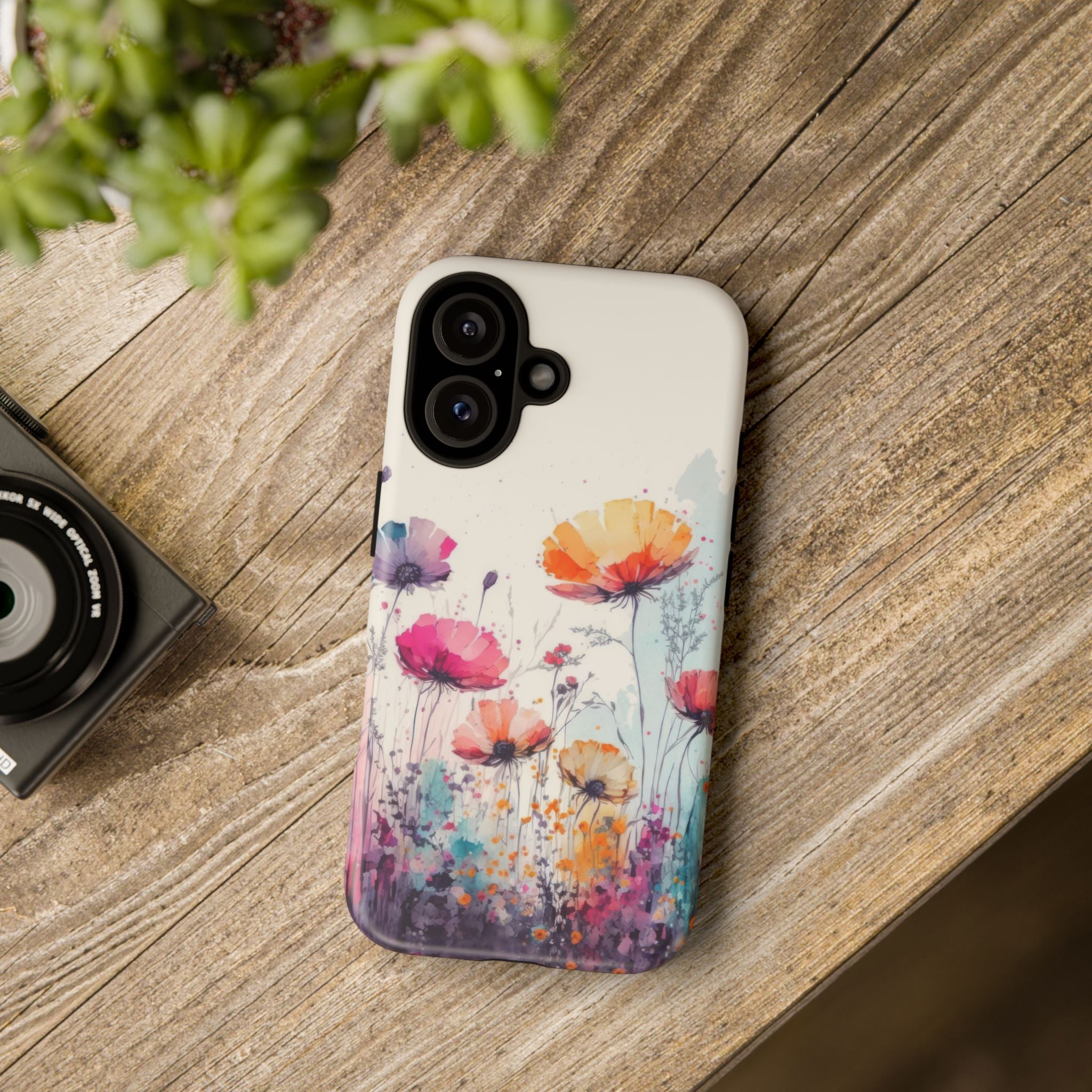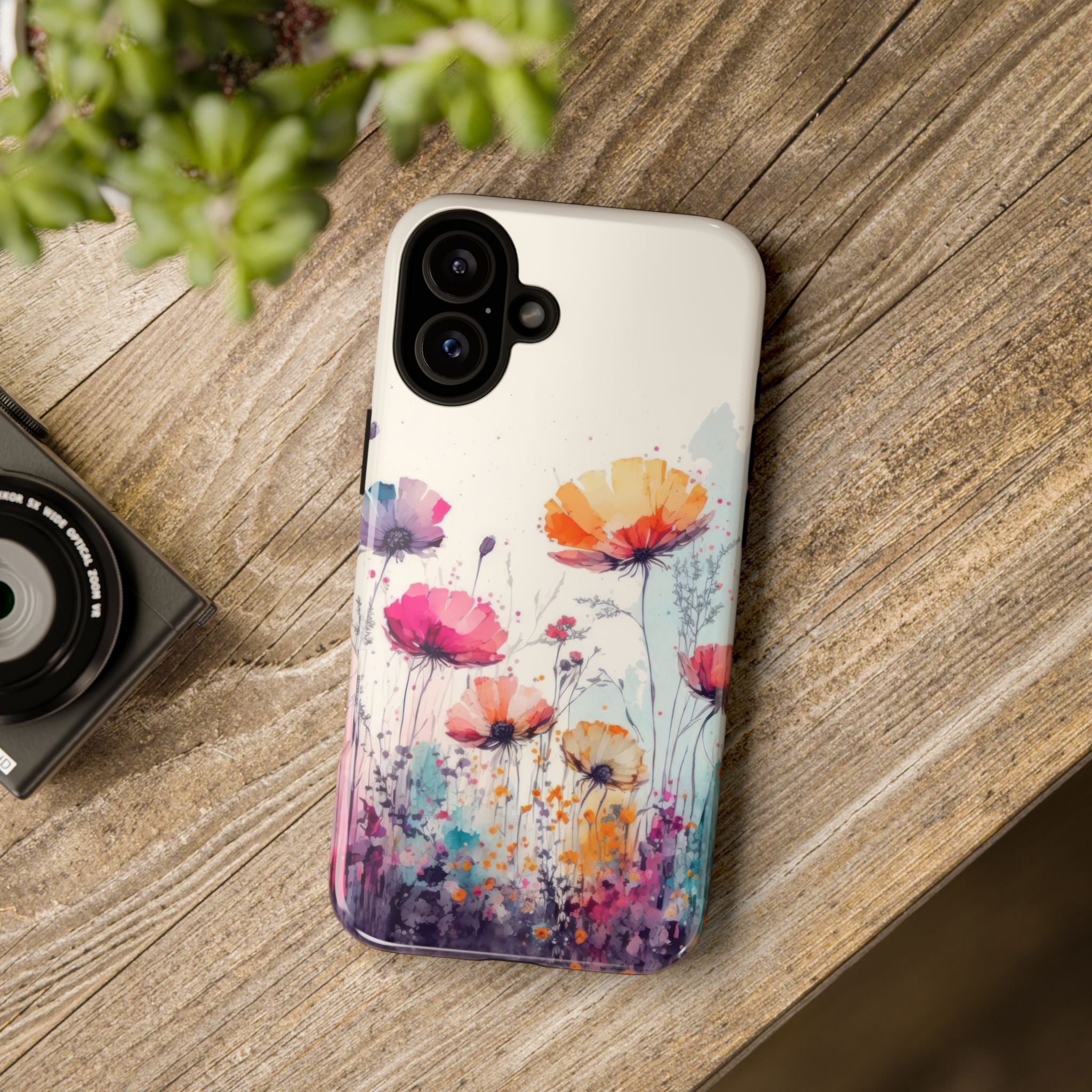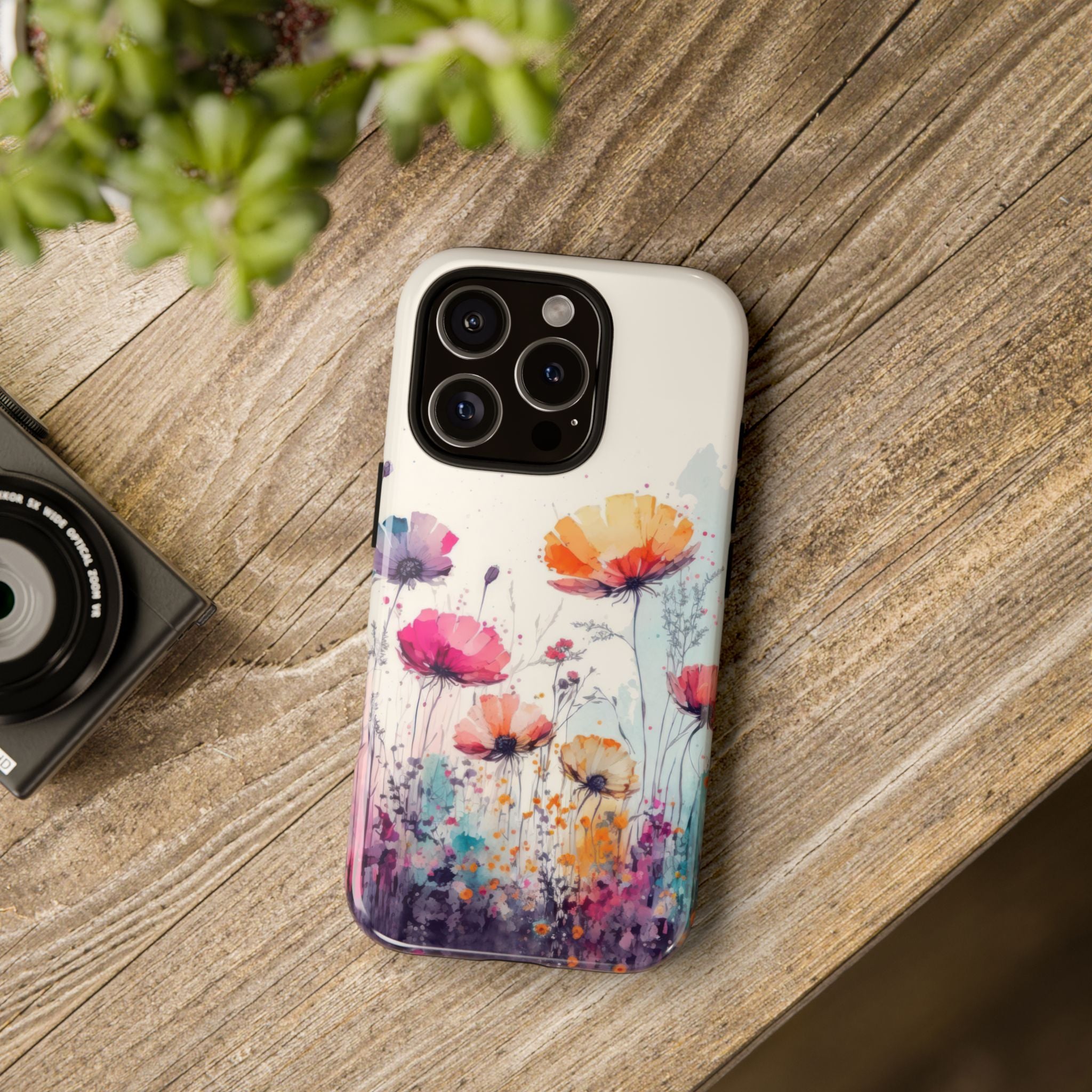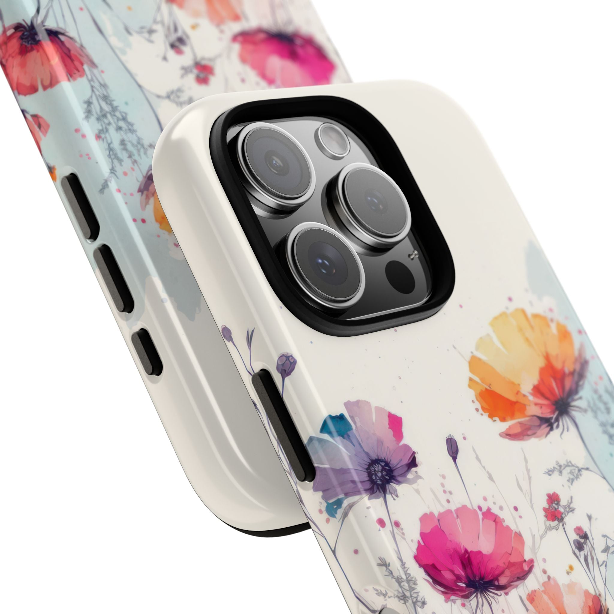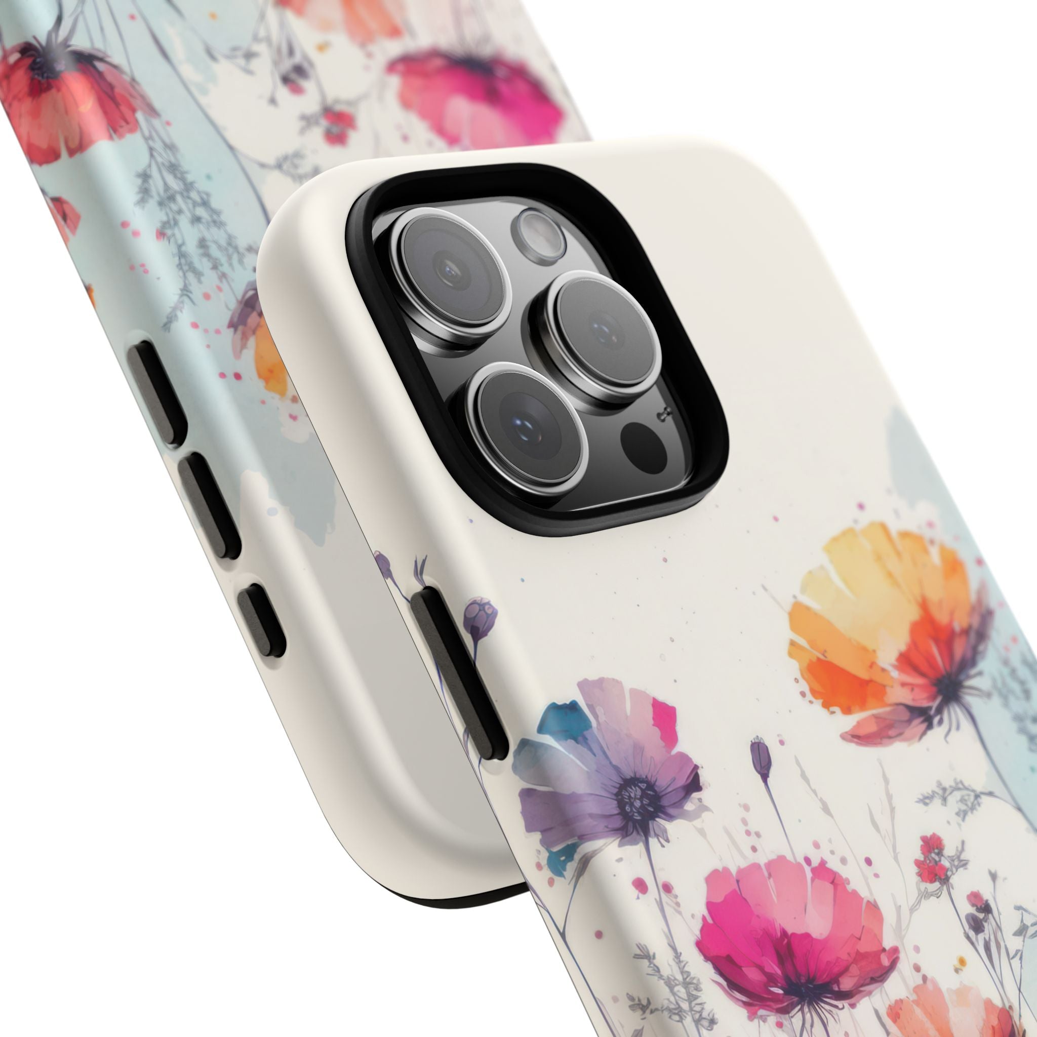 Experience the ultimate phone protection with the Tough MagSafe Case - Spring. This beautiful case features a stunning watercolor design of wild spring flowers, capturing the fresh, vibrant and wild beauty of nature in full bloom. The design wraps seamlessly around the entire case, making a bold statement while ensuring your phone is protected in style.
