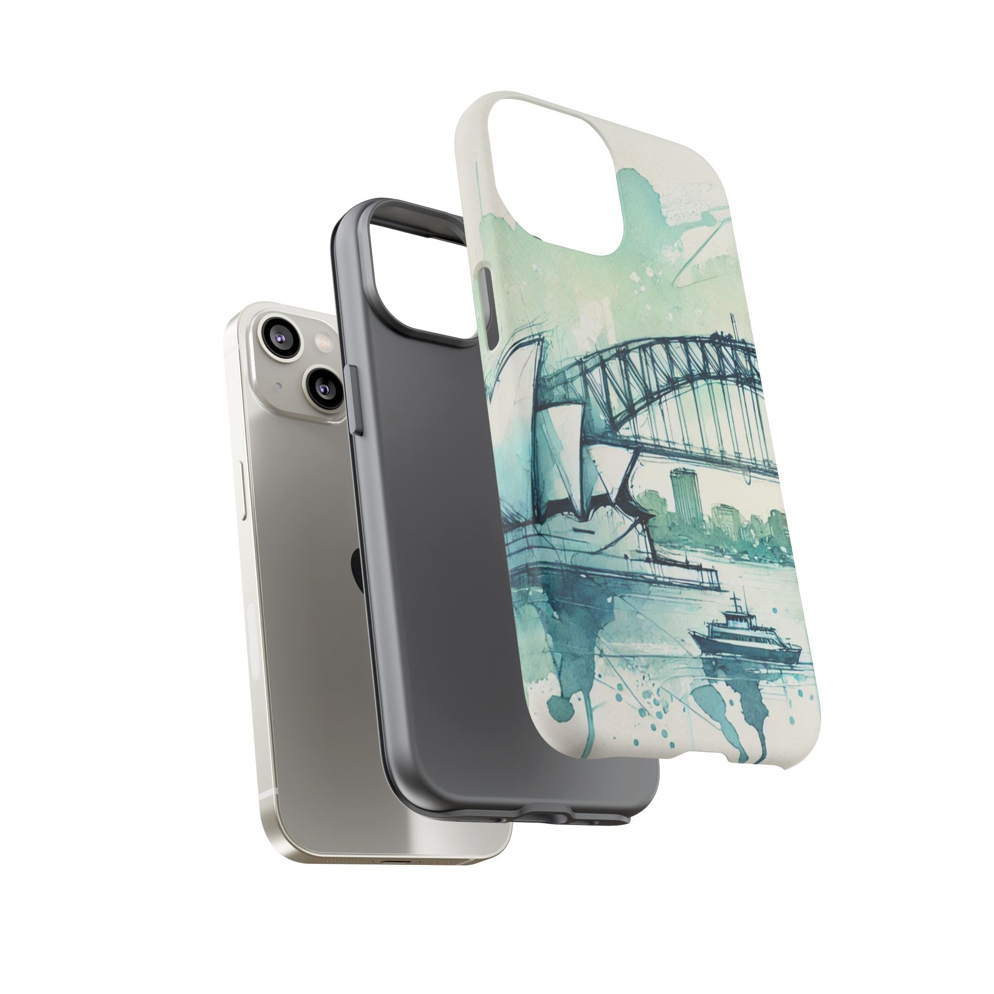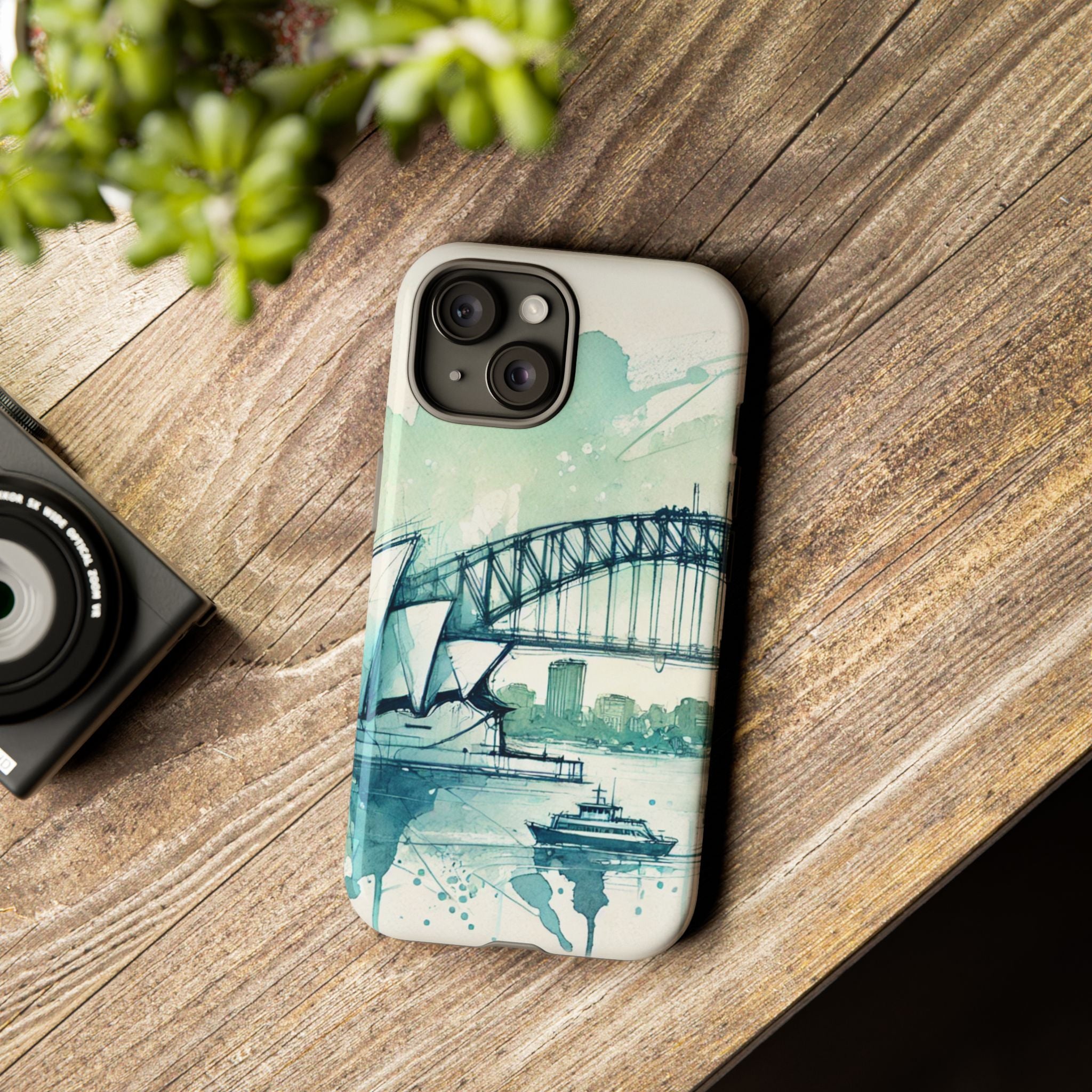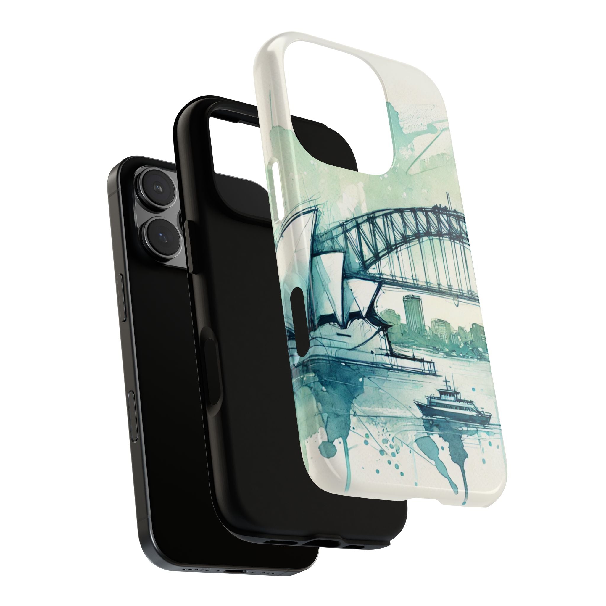 Experience the ultimate phone protection with the Tough MagSafe Case - Sydney. This beautiful case features a stunning ink and watercolor design of Sydney Harbour, capturing the iconic beauty and vibrant energy of this world-famous landmark. The design extends around the entire case and is sure to make a statement while protecting your phone with style.