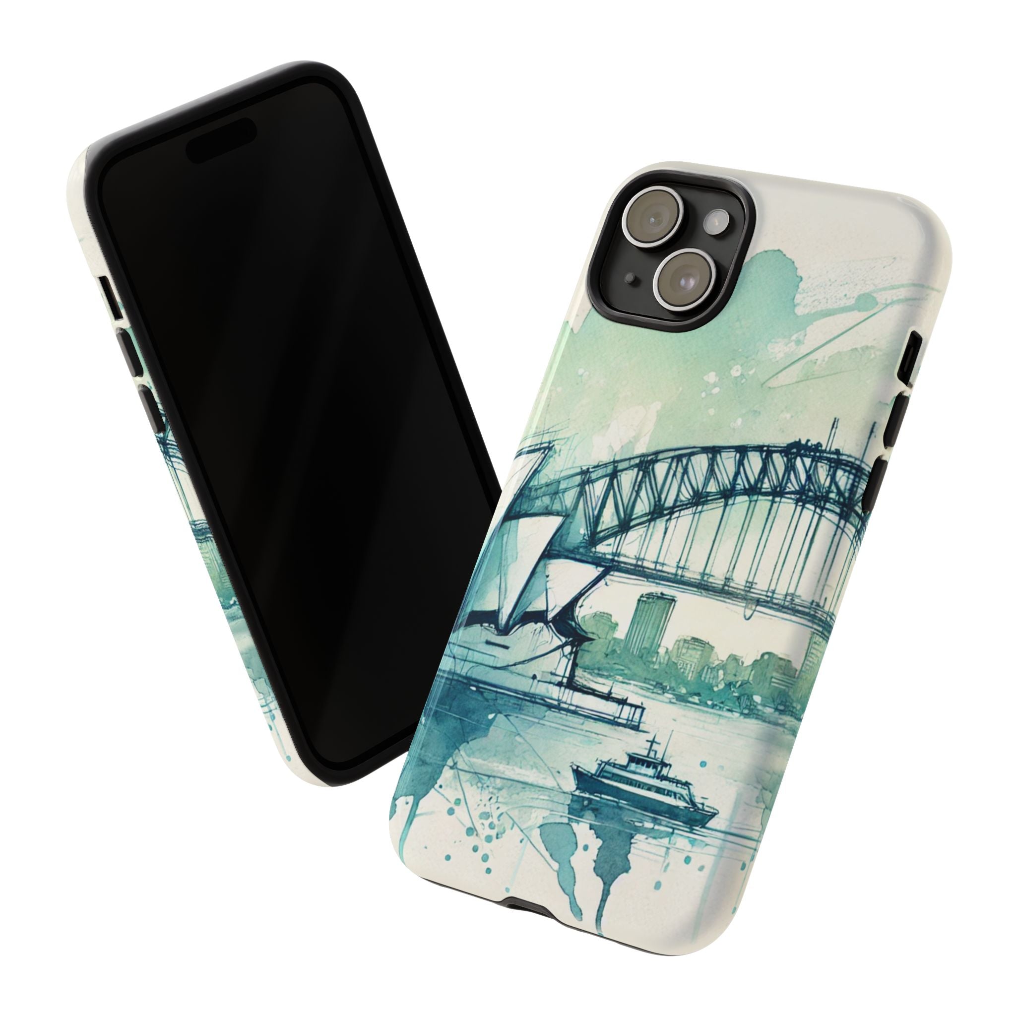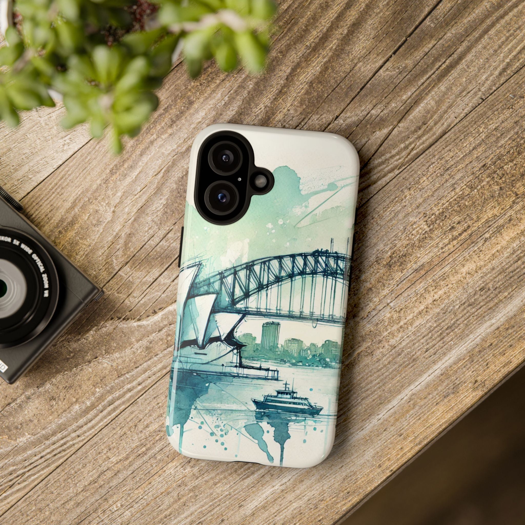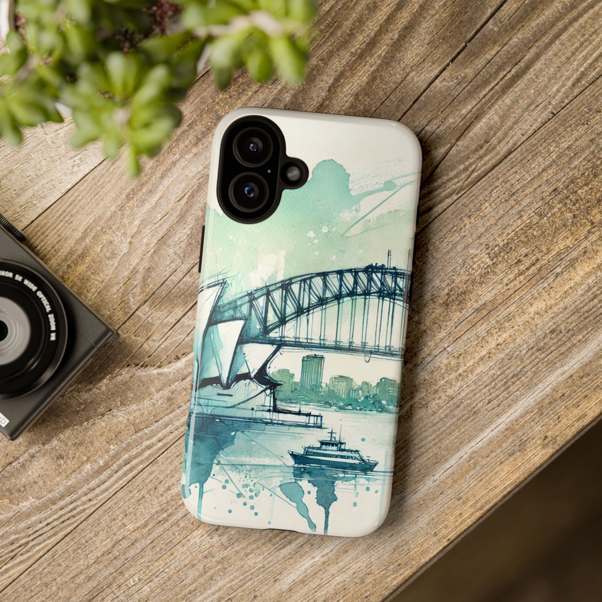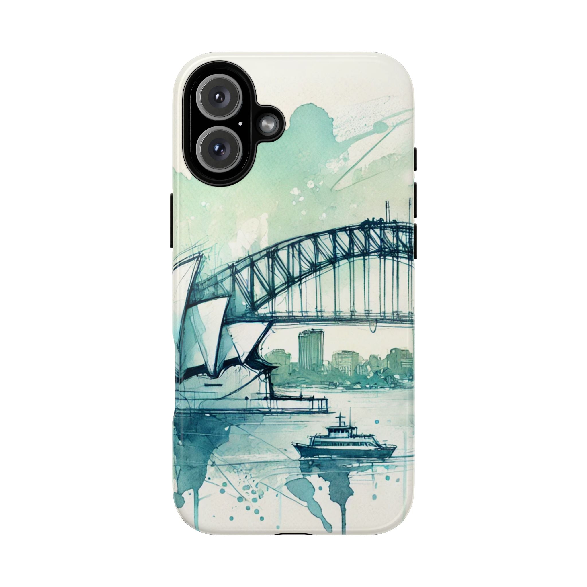 Experience the ultimate phone protection with the Tough MagSafe Case - Sydney. This beautiful case features a stunning ink and watercolor design of Sydney Harbour, capturing the iconic beauty and vibrant energy of this world-famous landmark. The design extends around the entire case and is sure to make a statement while protecting your phone with style.