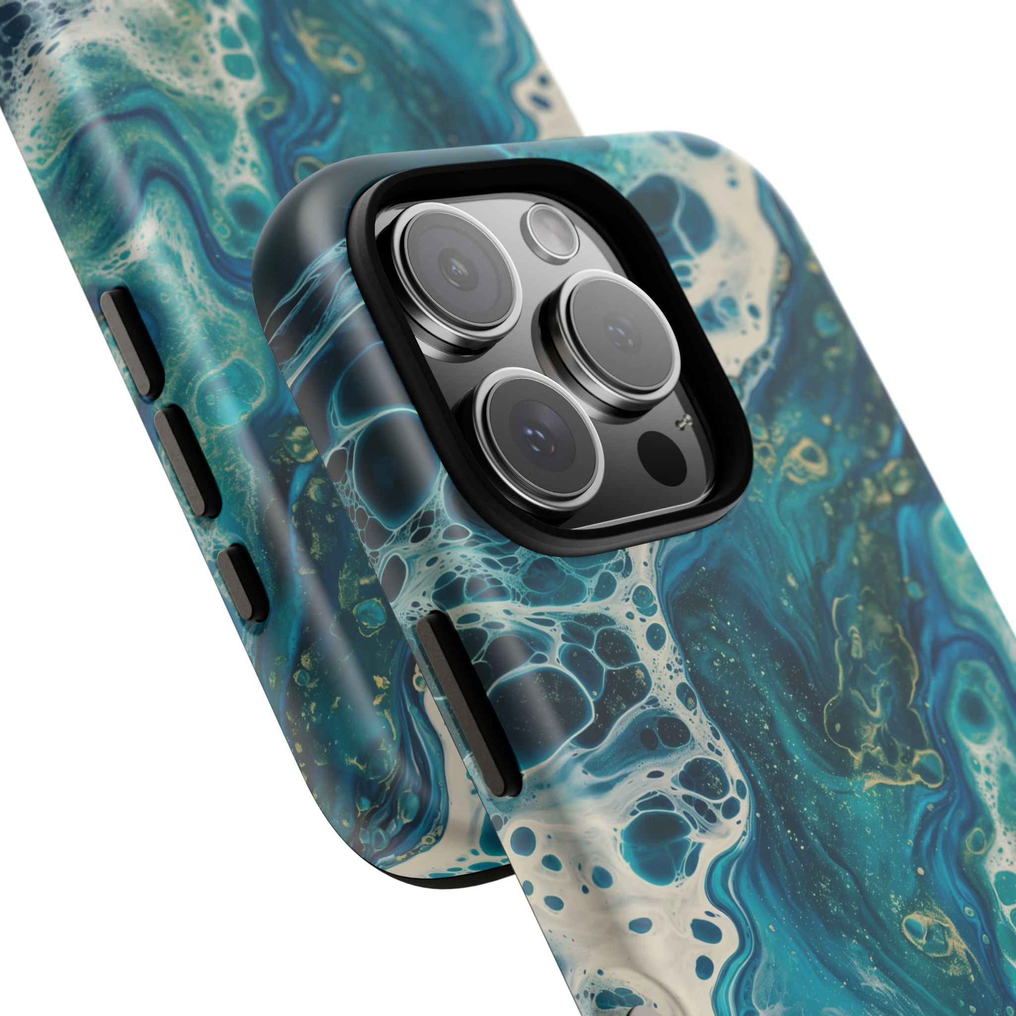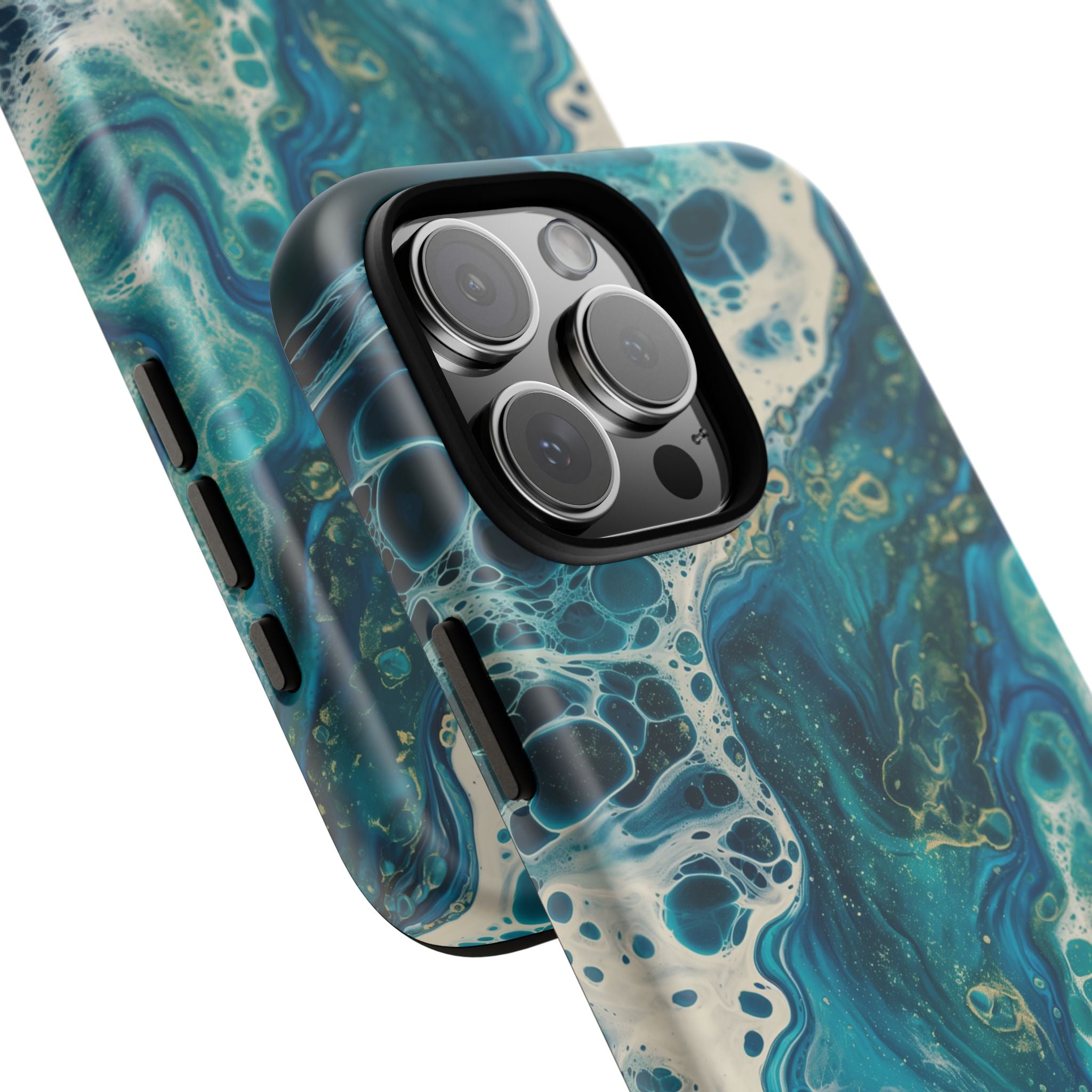 Experience the ultimate phone protection with the Tough MagSafe Case - Water. This beautiful case features a painted design in flowing blues and aquas, capturing both the serene beauty and the raw, powerful force of water in motion. The design wraps seamlessly around the entire case, making a bold statement while ensuring your phone is protected in style.