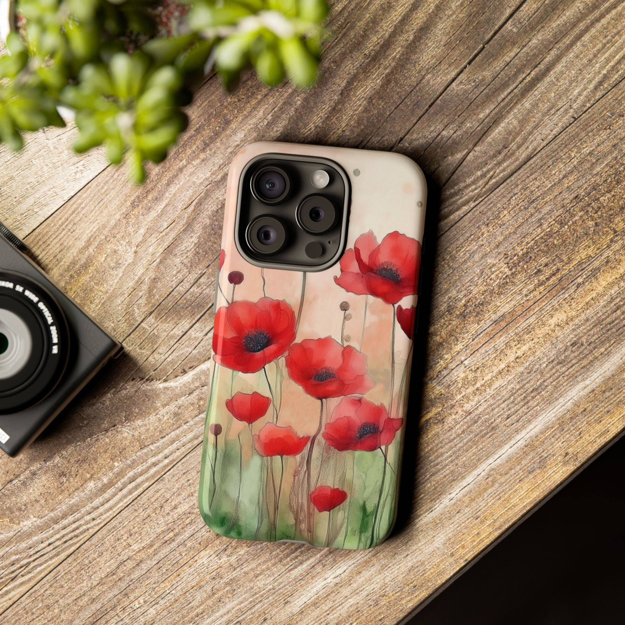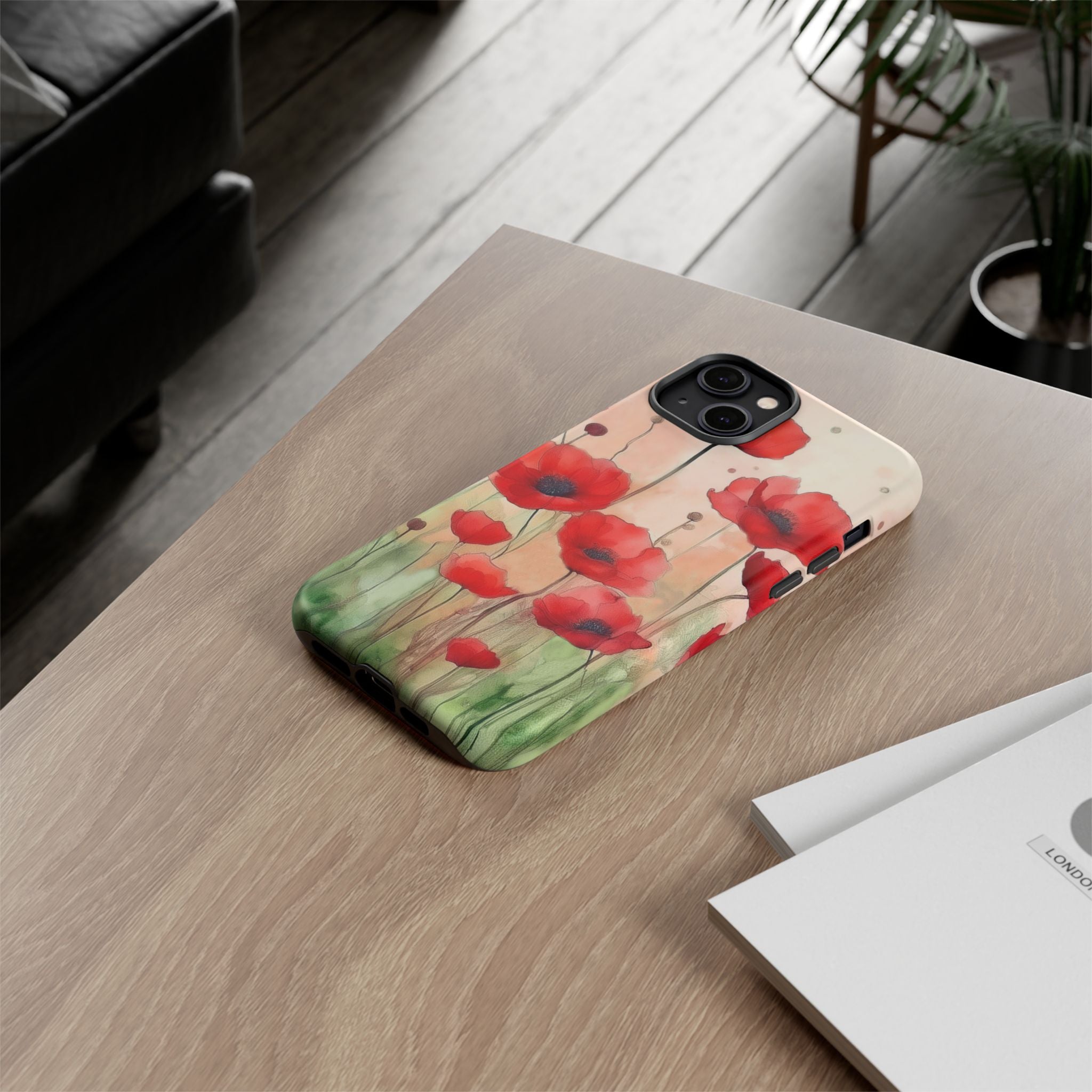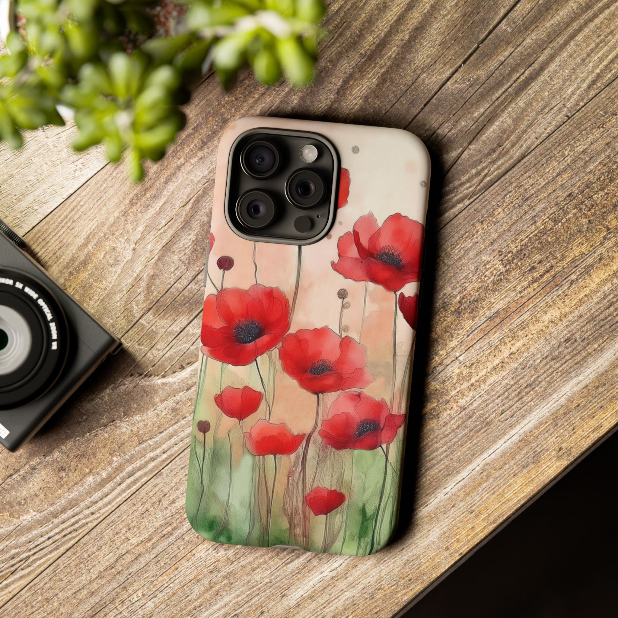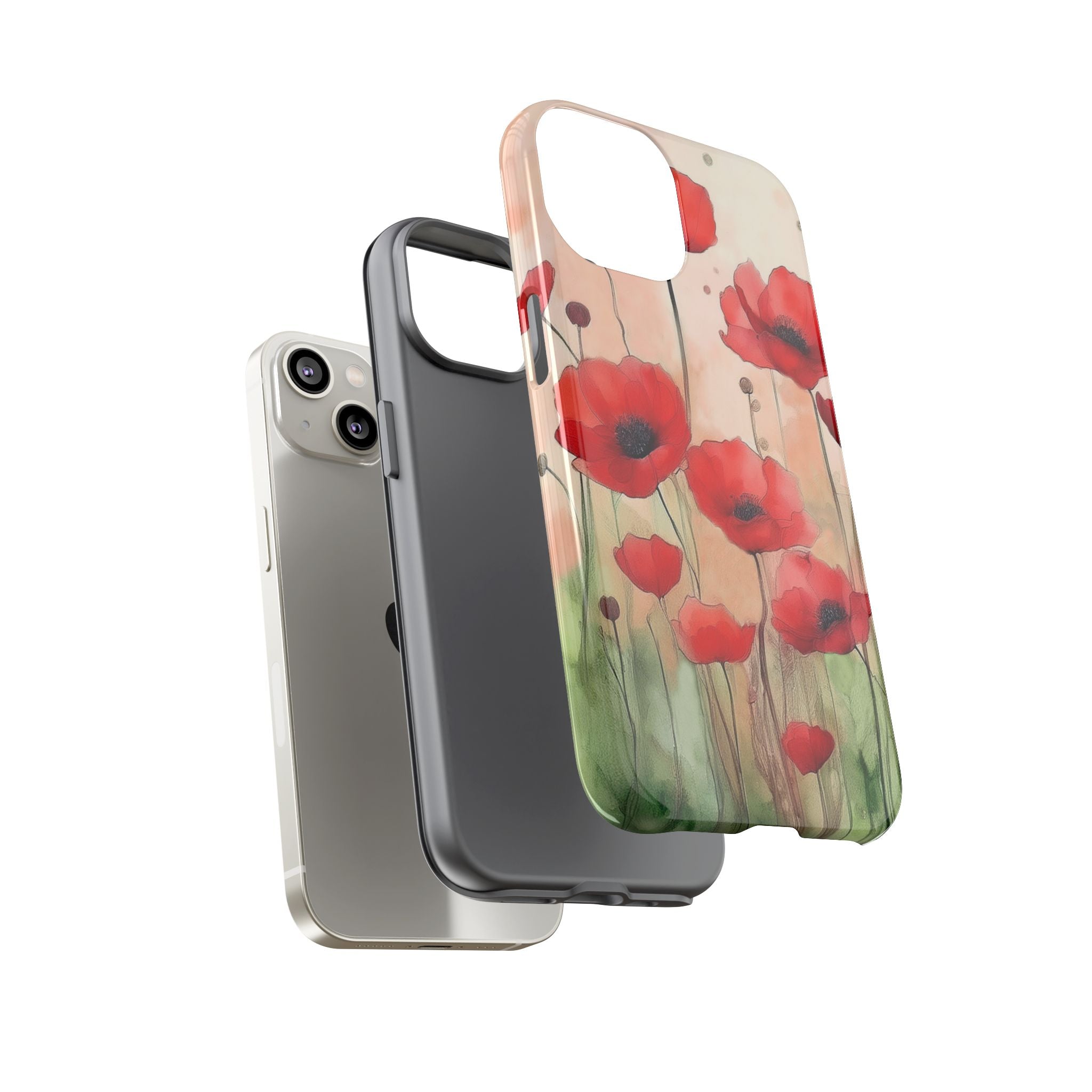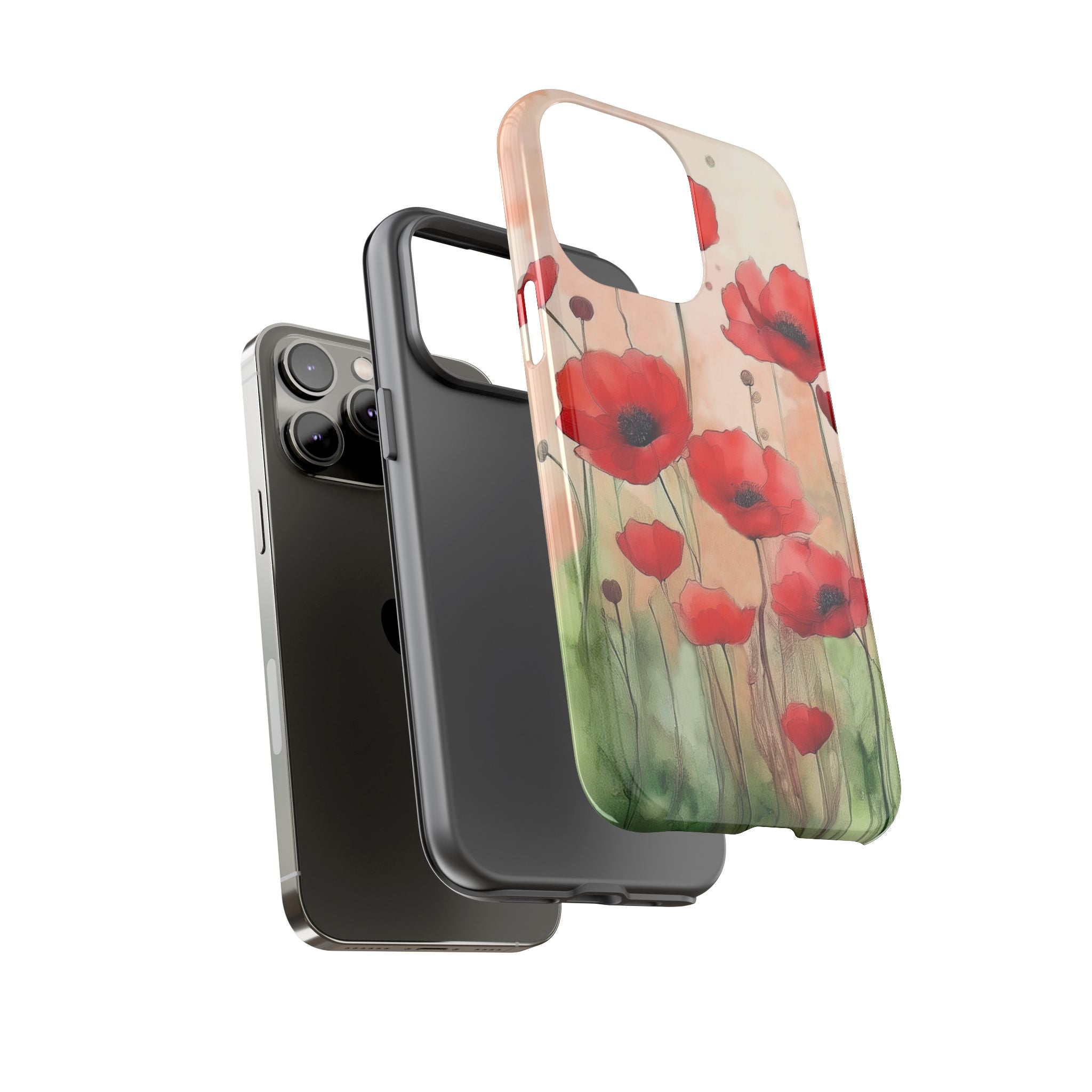 Experience the ultimate phone protection with the Tough MagSafe Case - Winter. This beautiful case features a stunning watercolor design of vibrant red poppies flourishing in an open field, evoking the contrasting beauty of nature in winter. The design extends around the entire case and is sure to make a statement while protecting your phone with style.