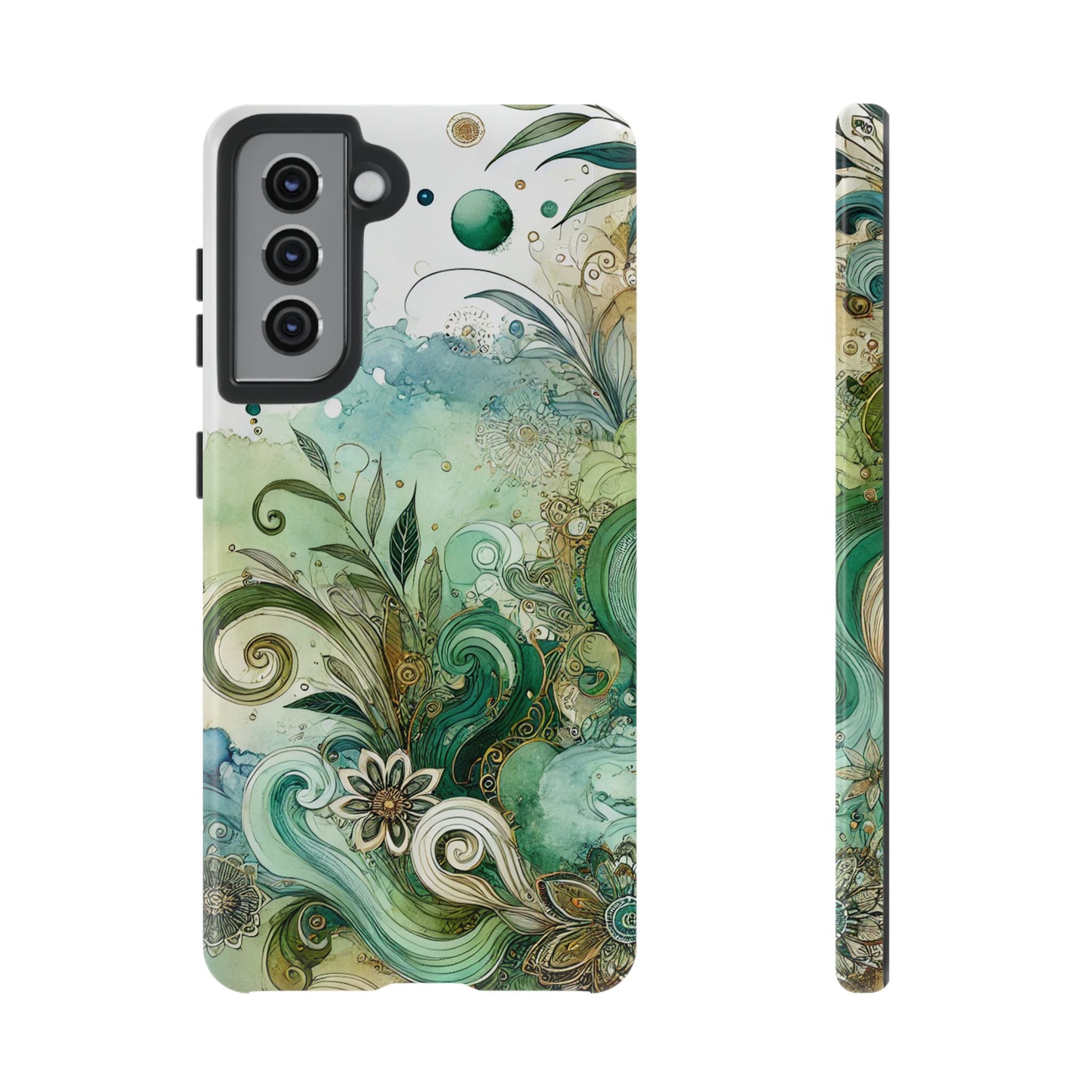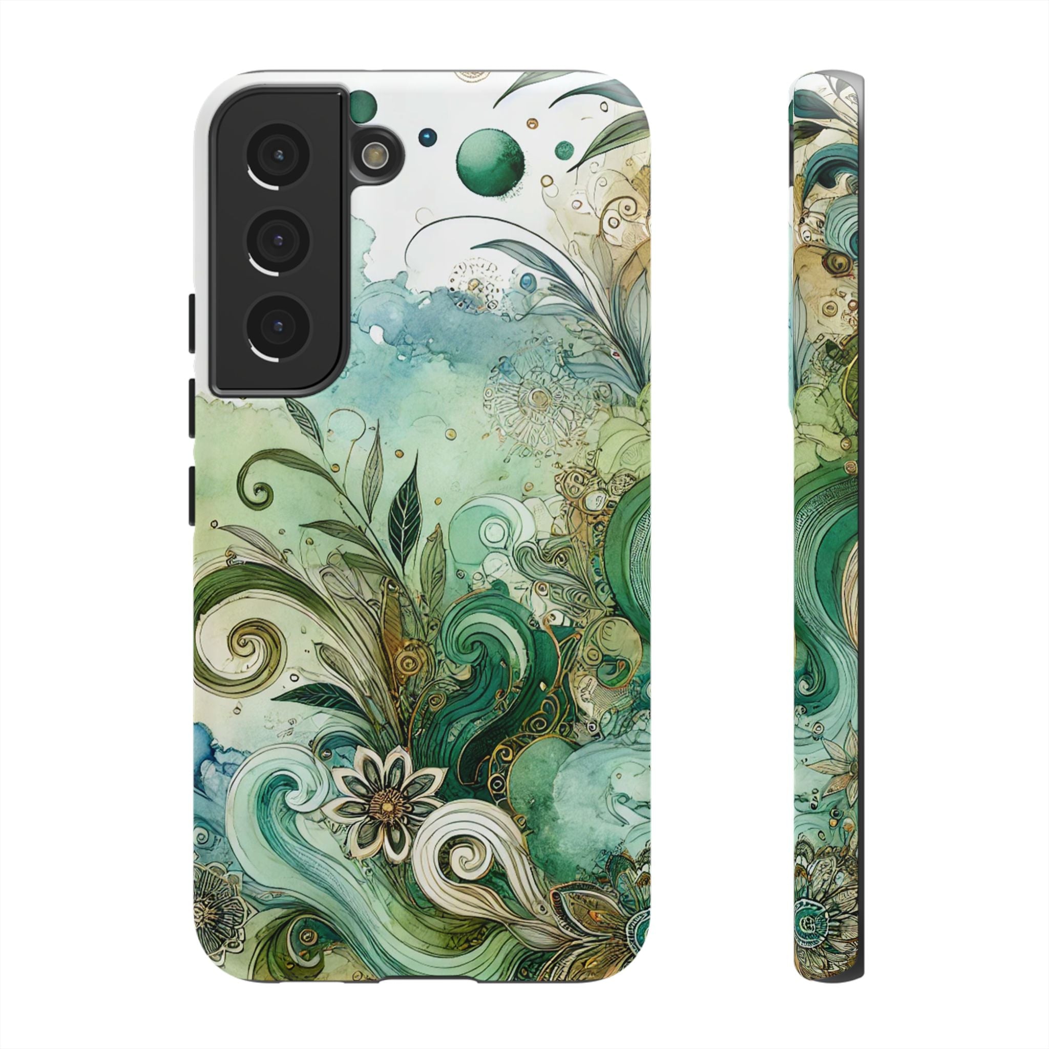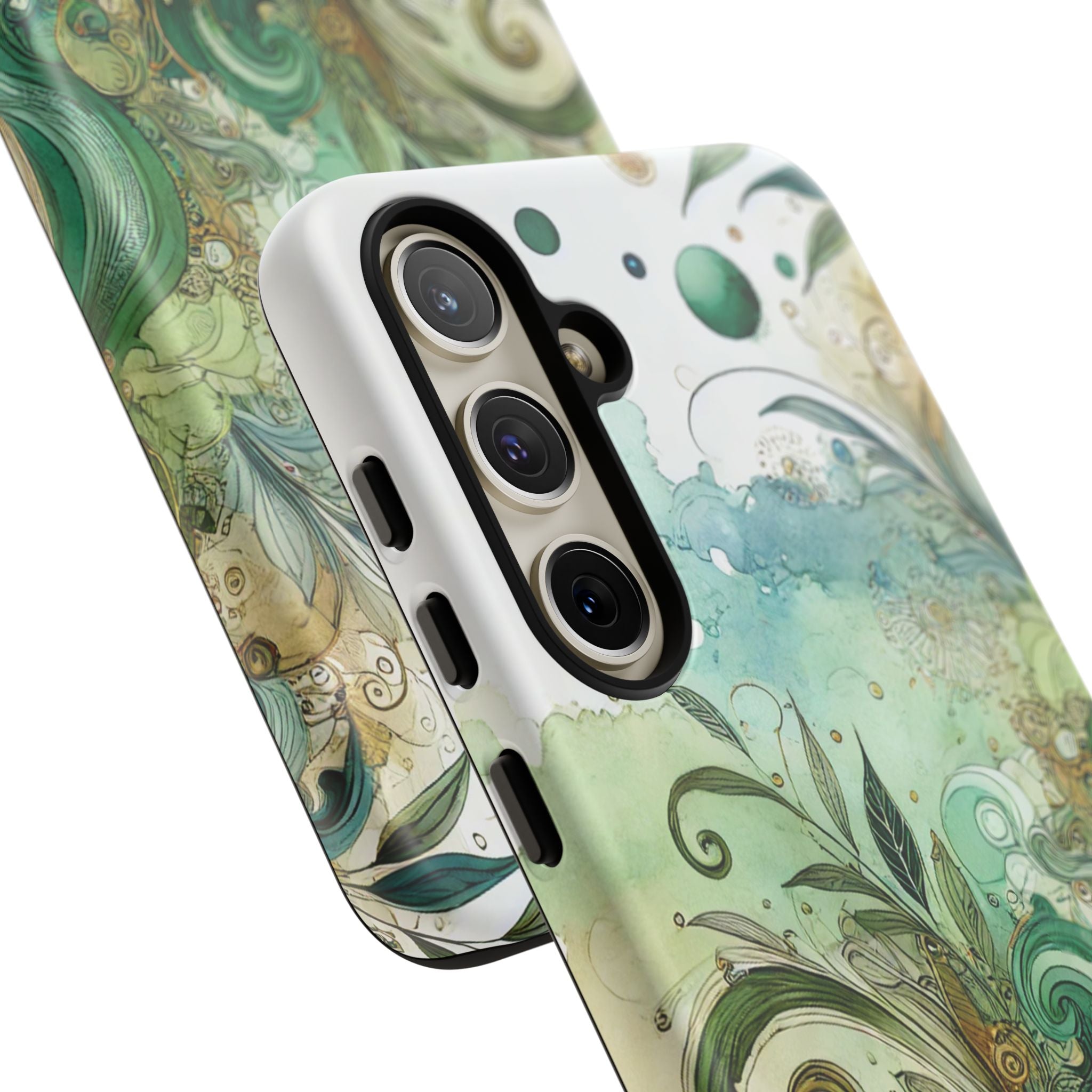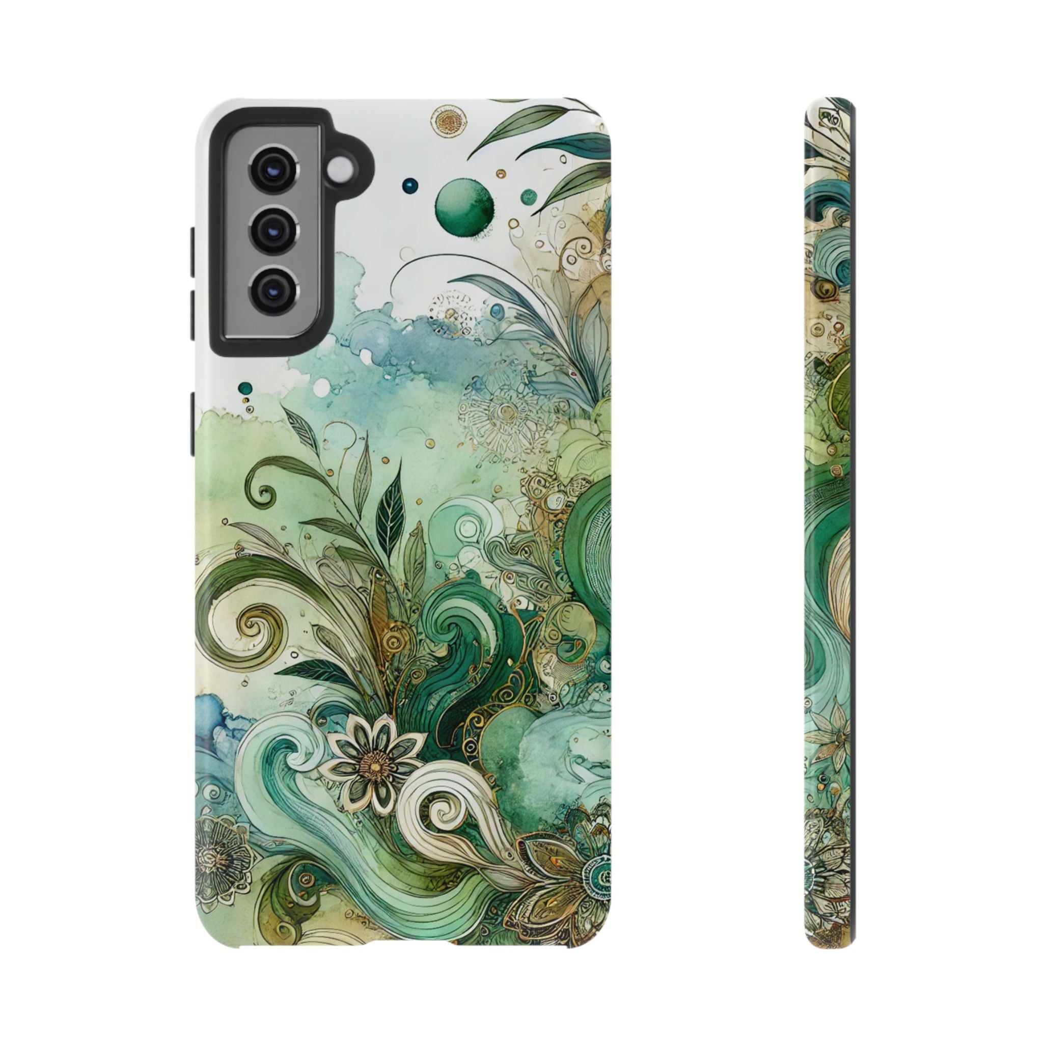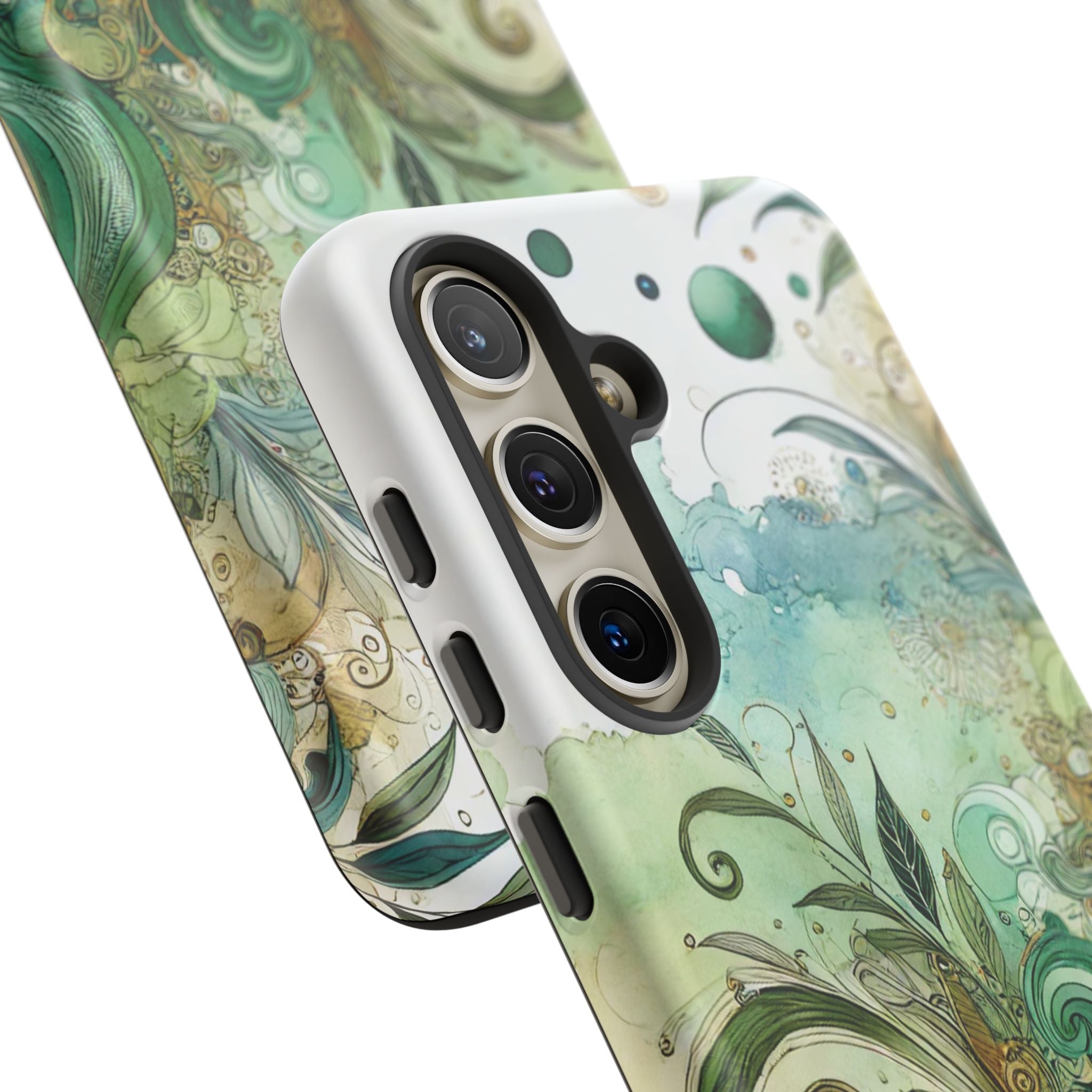 Experience the ultimate phone protection with the Tough Case - Enchantment. This beautiful case with its vibrant watercolour wash and intricate flowers in shades of green captures the essence of enchantment. The design extends around the entire case and is sure to make a statement while protecting your phone with style.