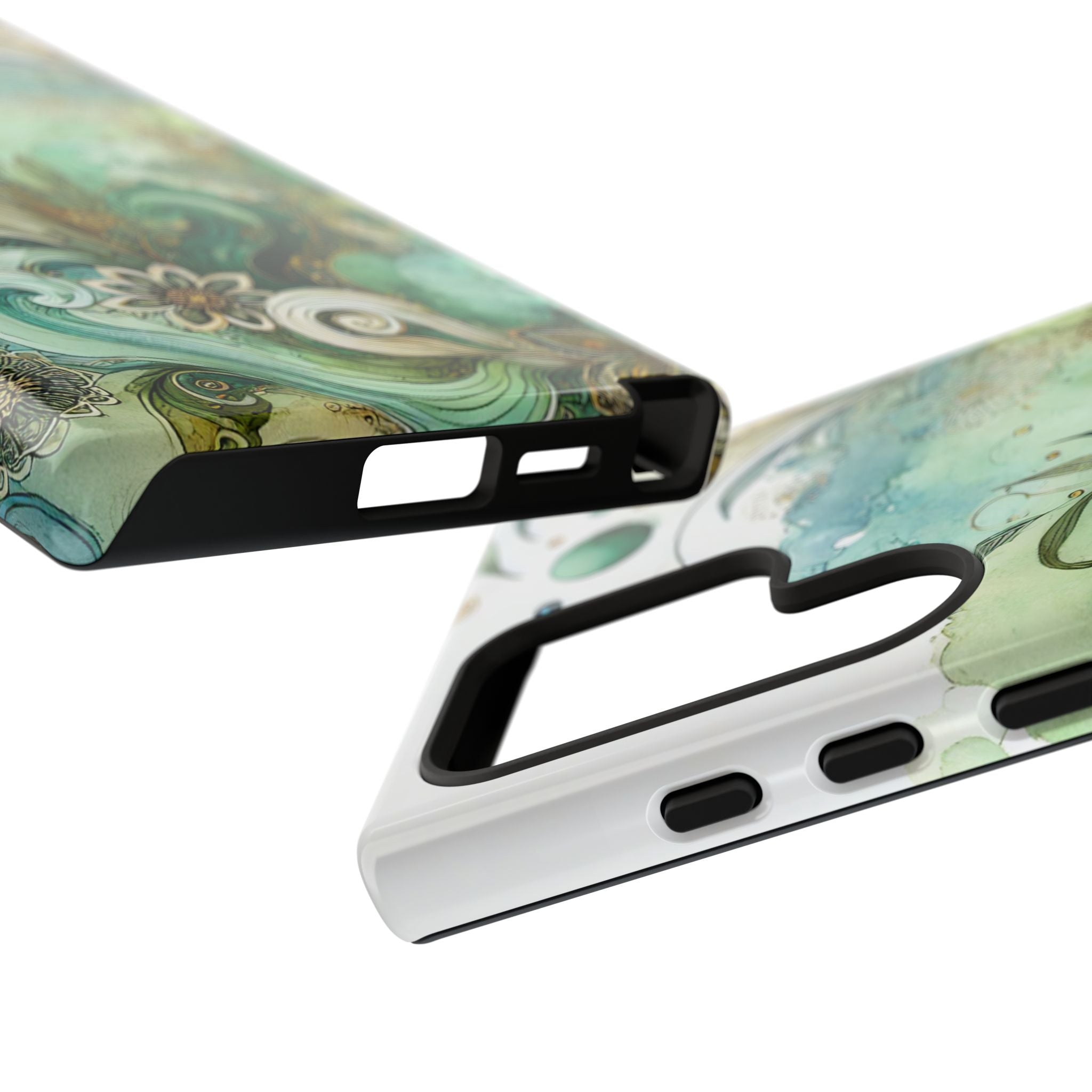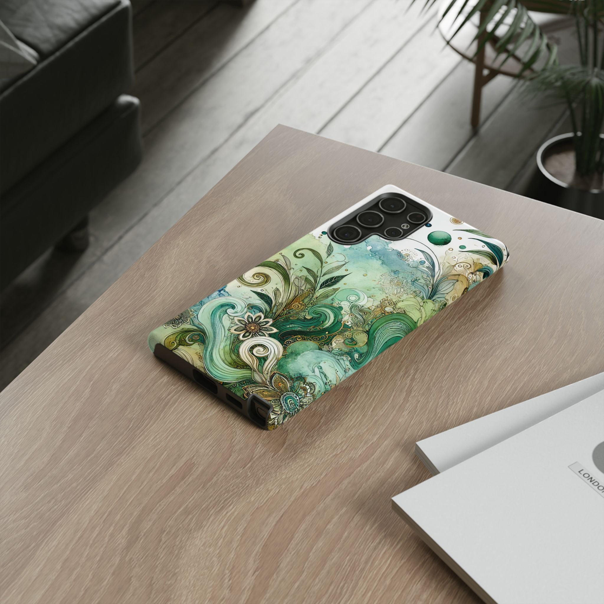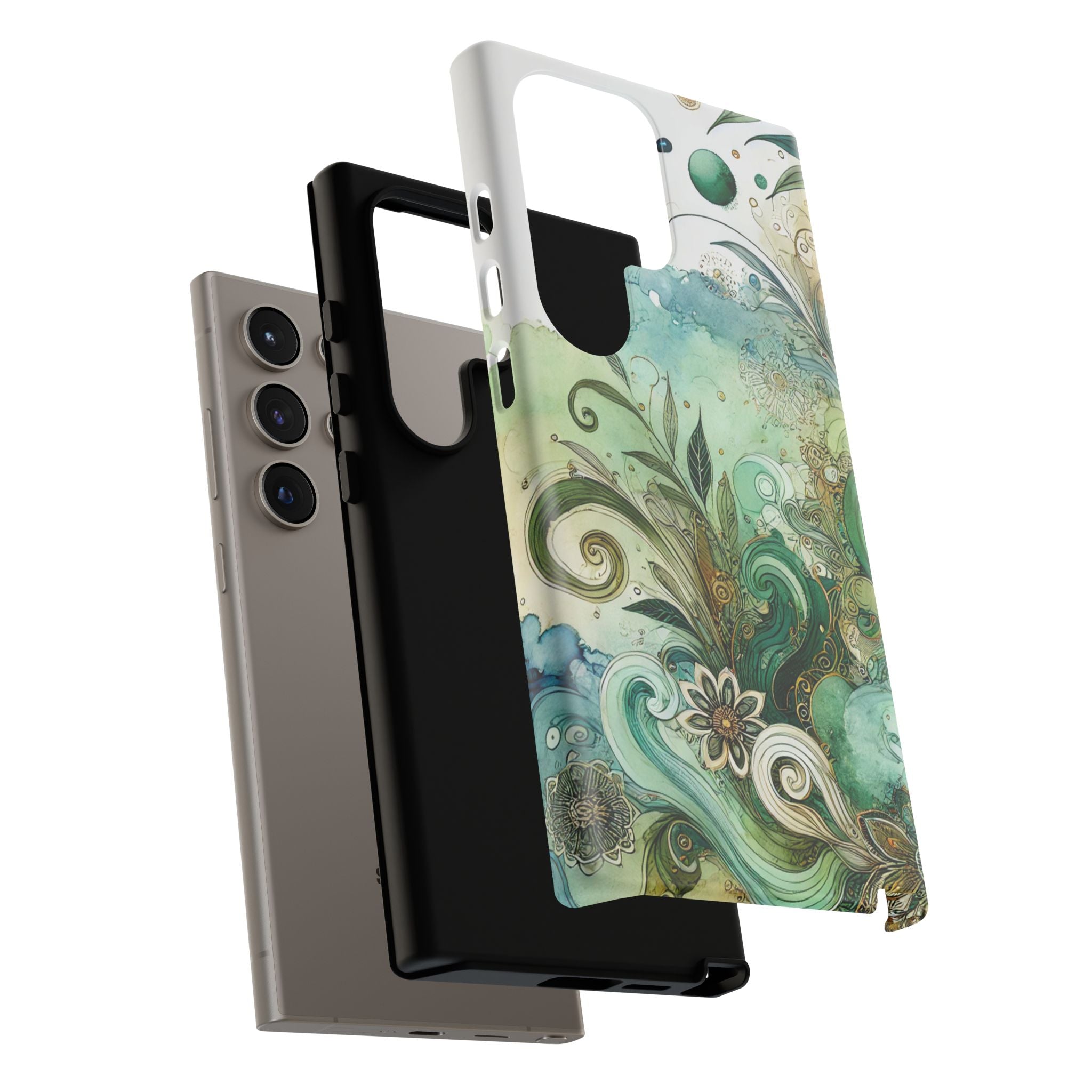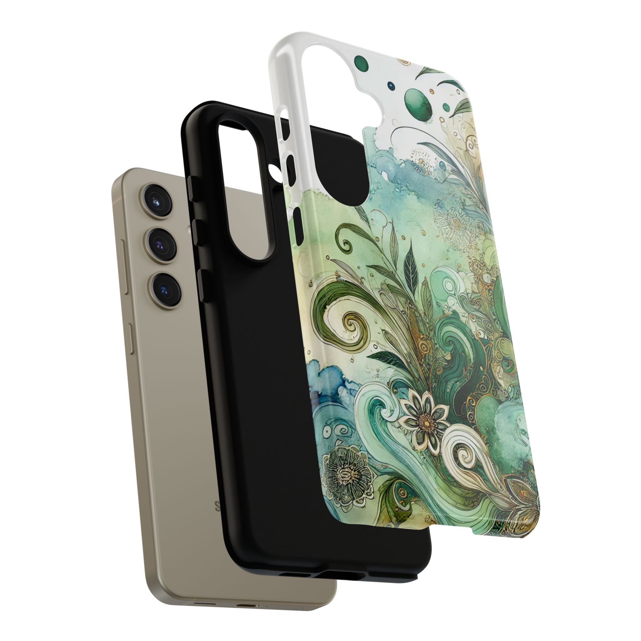 Experience the ultimate phone protection with the Tough Case - Enchantment. This beautiful case with its vibrant watercolour wash and intricate flowers in shades of green captures the essence of enchantment. The design extends around the entire case and is sure to make a statement while protecting your phone with style.