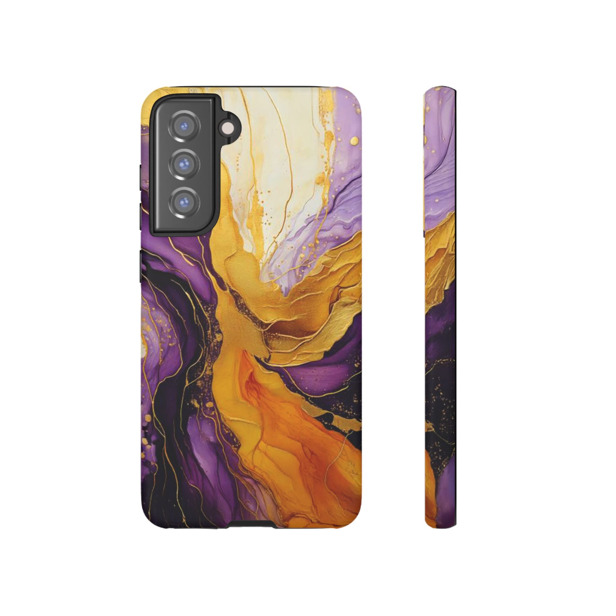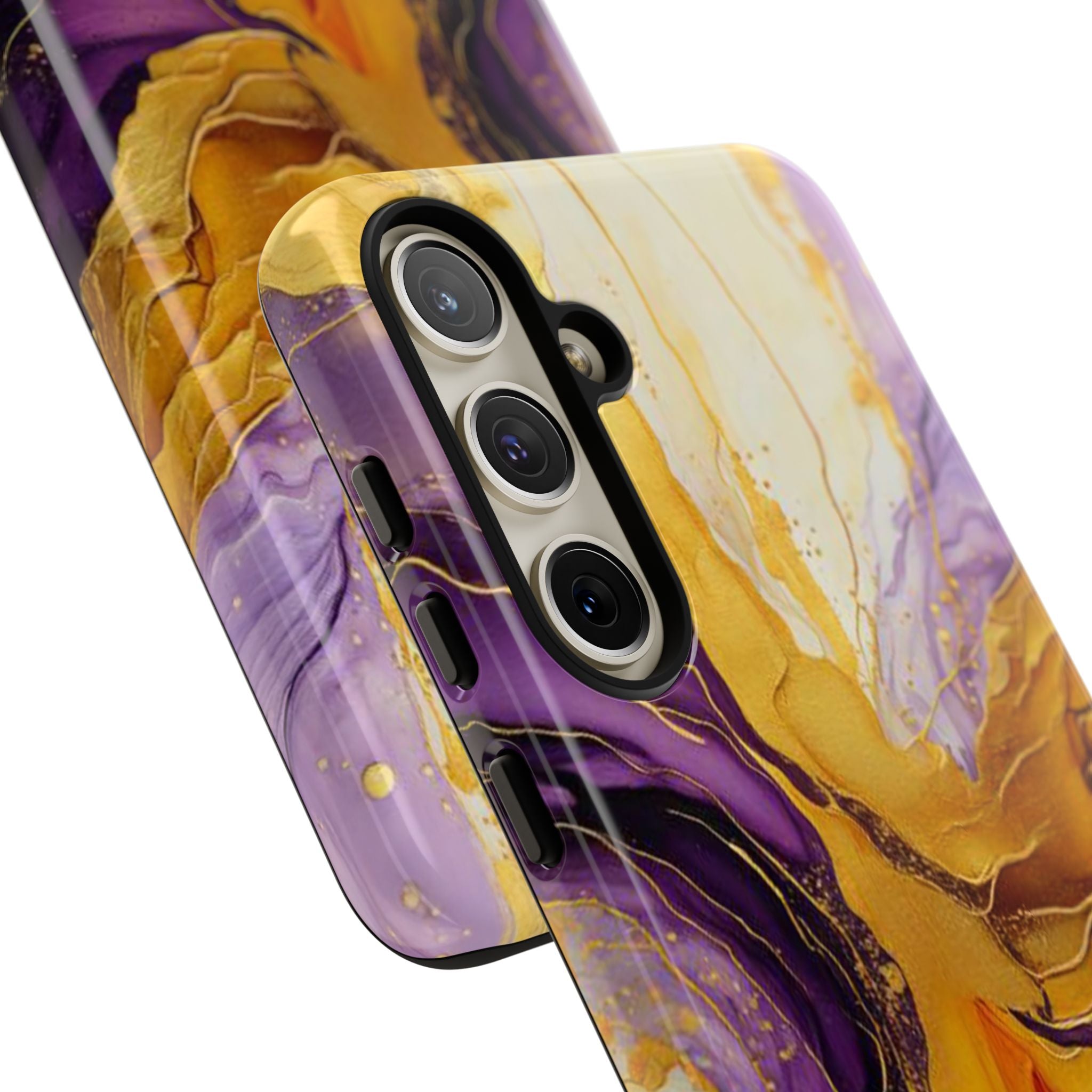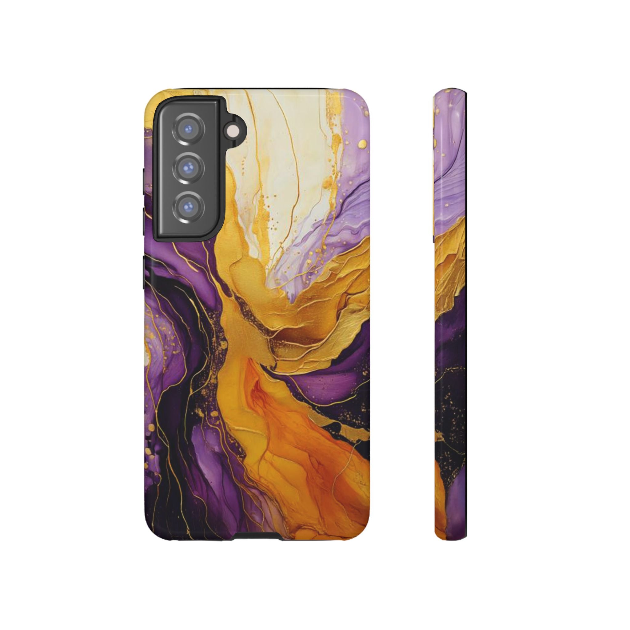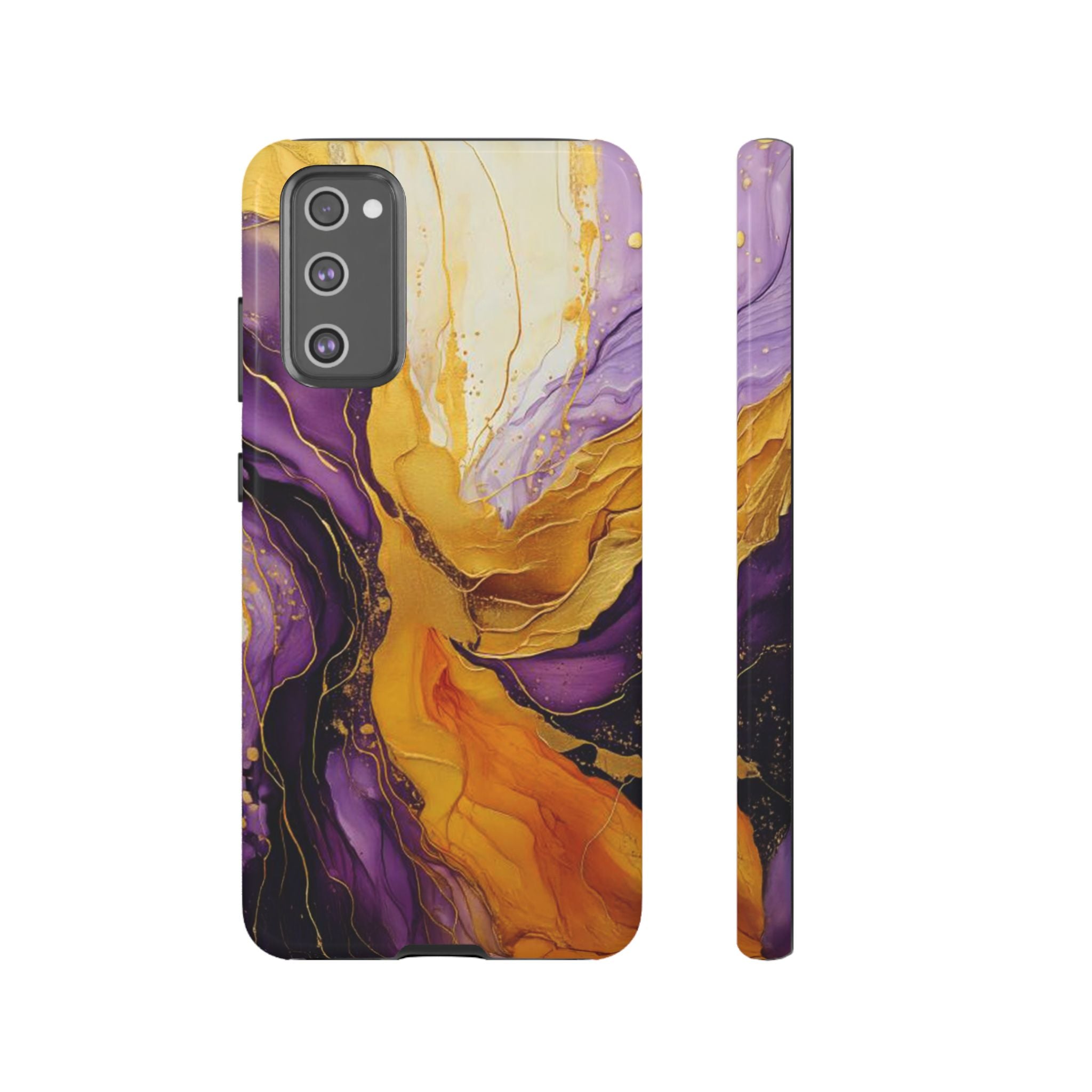 Experience the ultimate phone protection with the Tough Case - Gratitude. This beautiful case features an abstract design of deep violet and golden yellow swirls. The rich hues and flowing patterns evoke a sense of appreciation and joy, making it a meaningful reminder of life's blessings.The design extends around the entire case and is sure to make a statement while protecting your phone with style.