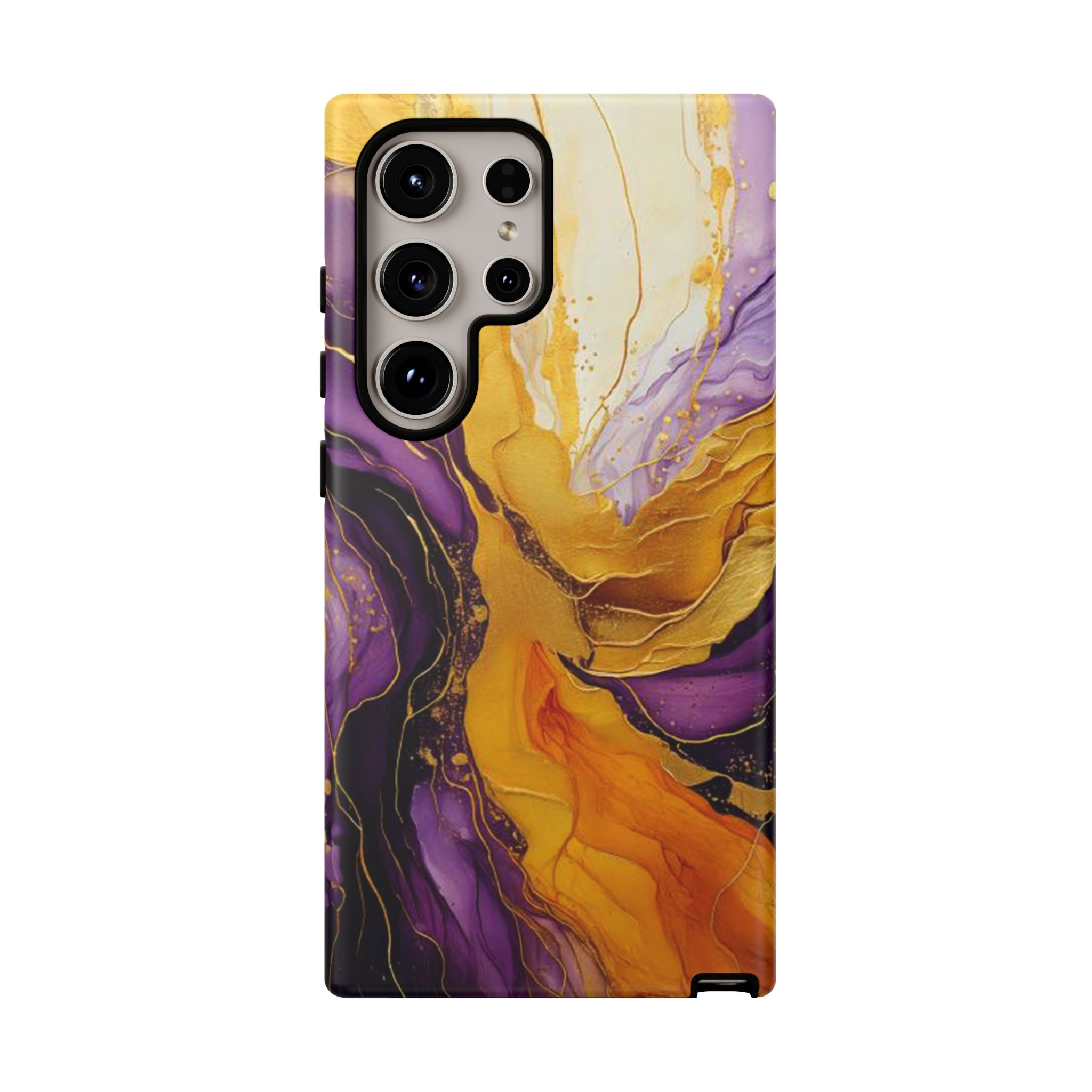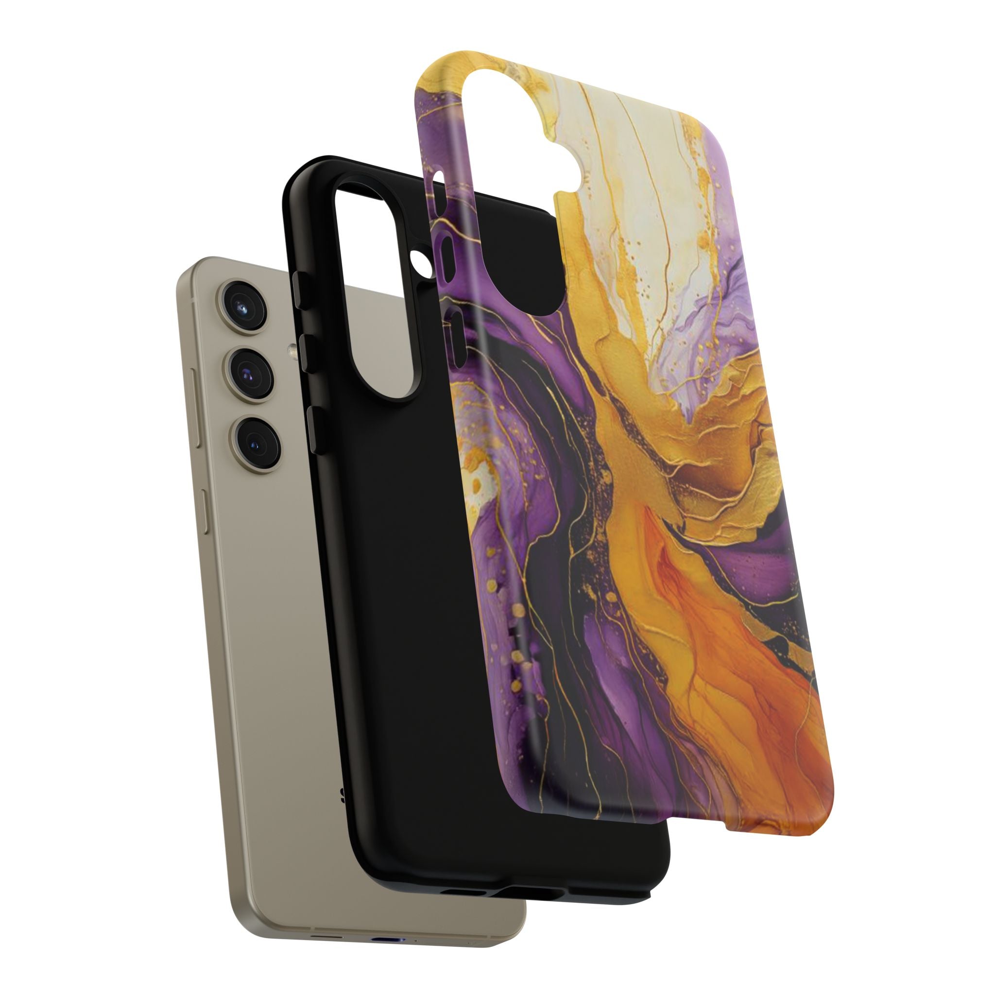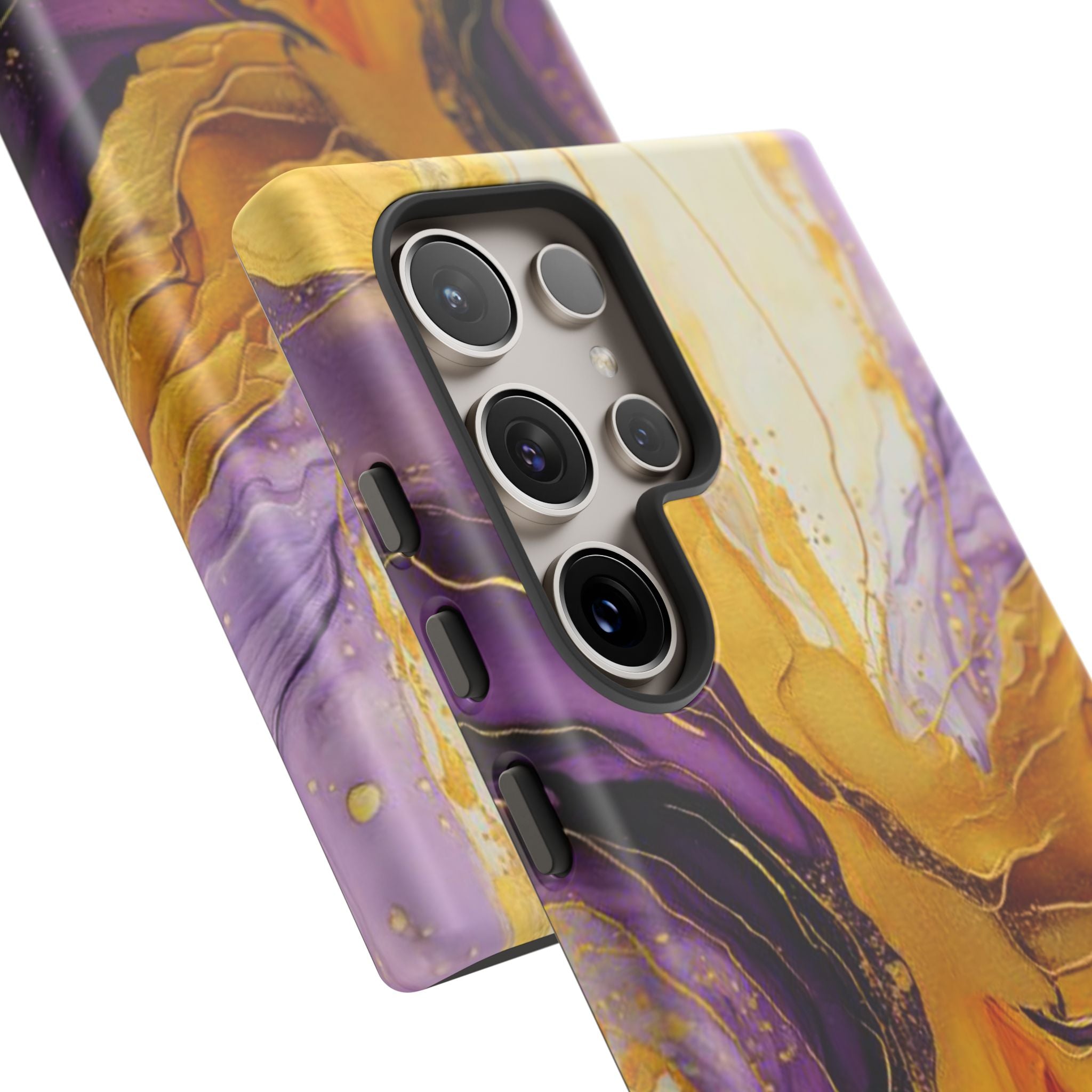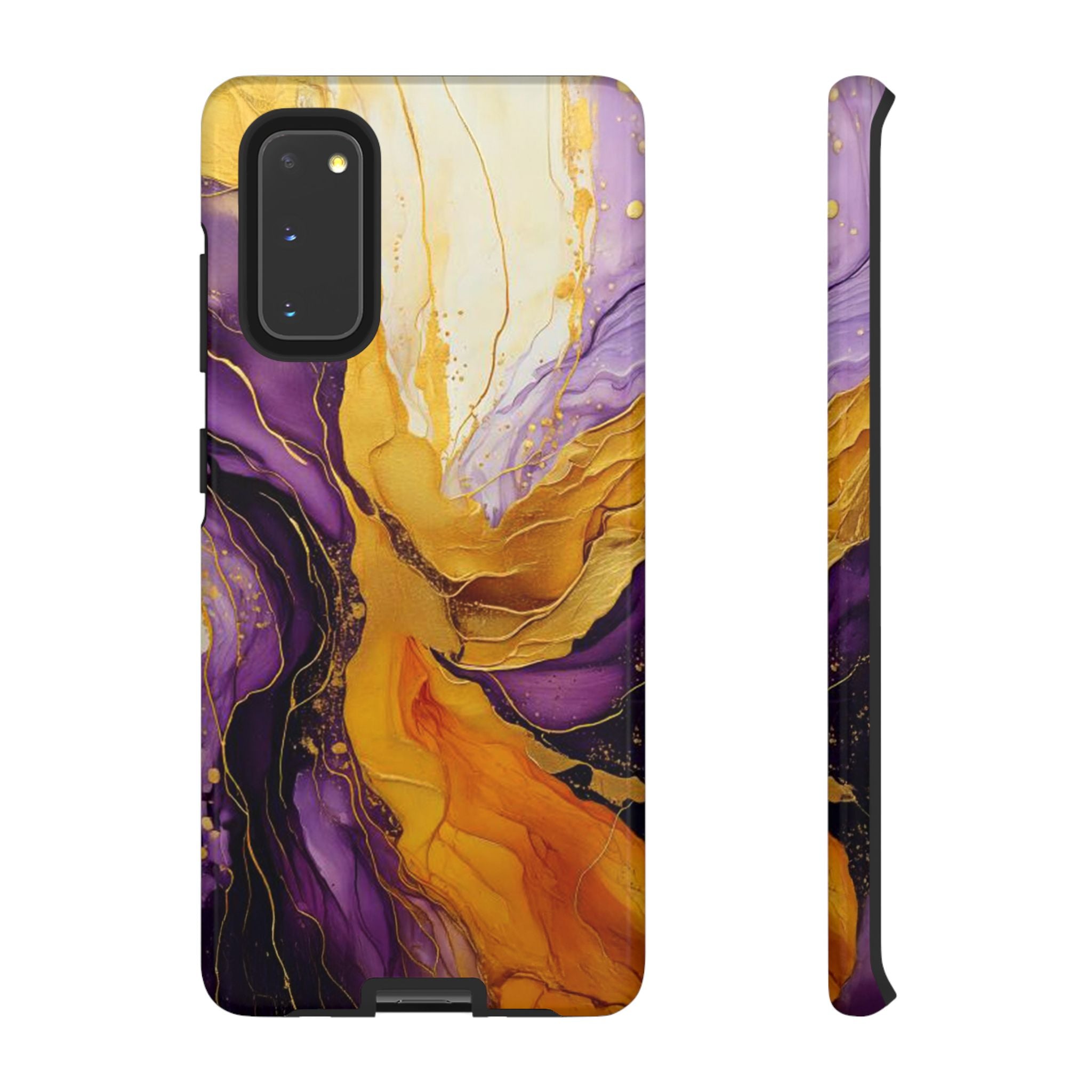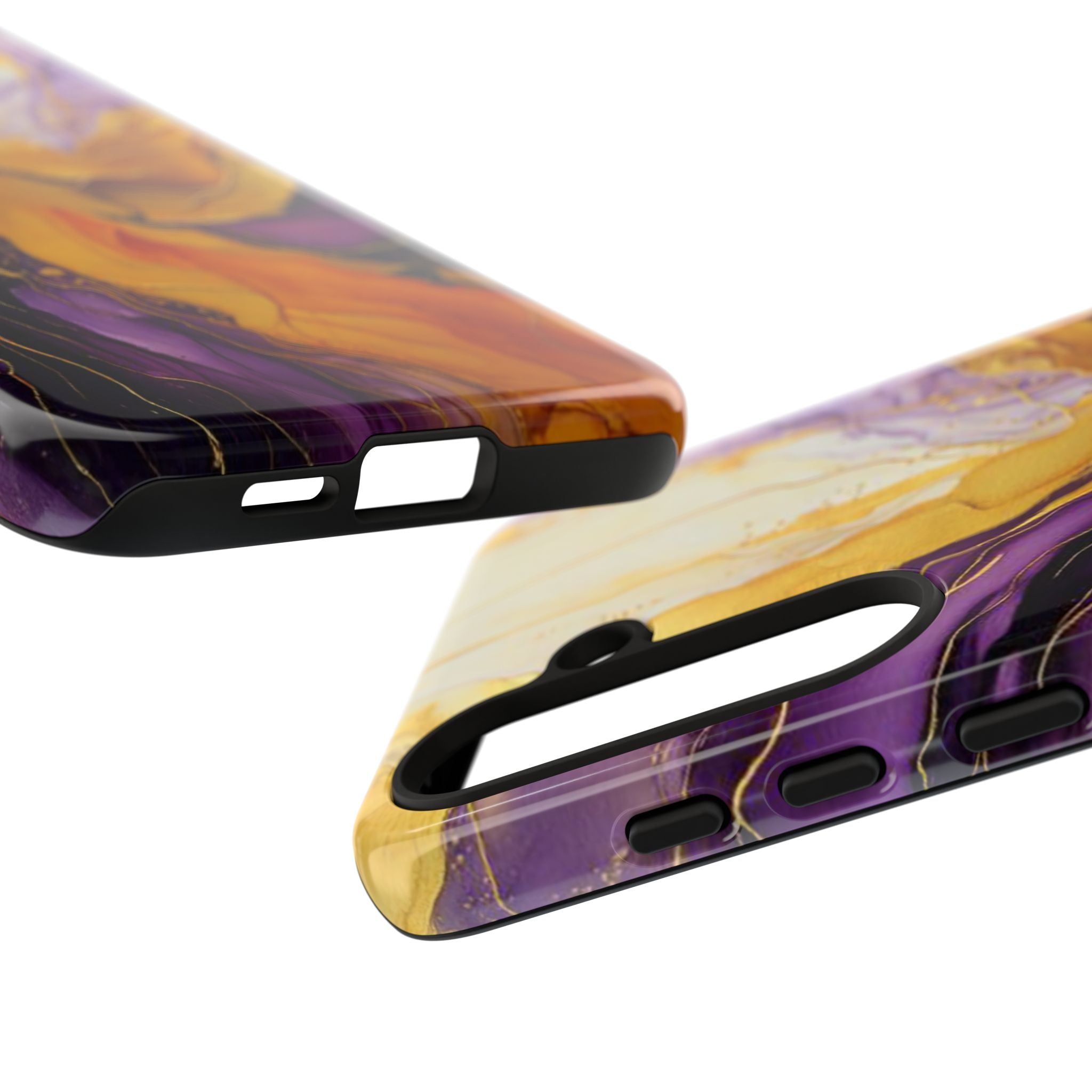 Experience the ultimate phone protection with the Tough Case - Gratitude. This beautiful case features an abstract design of deep violet and golden yellow swirls. The rich hues and flowing patterns evoke a sense of appreciation and joy, making it a meaningful reminder of life's blessings.The design extends around the entire case and is sure to make a statement while protecting your phone with style.