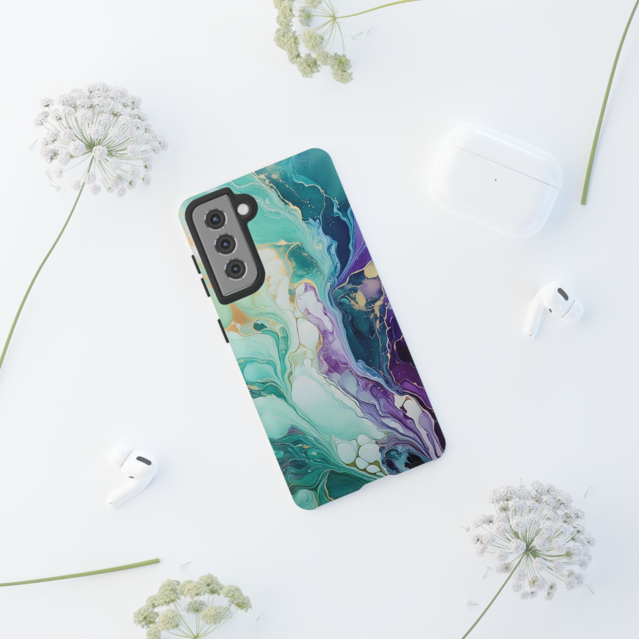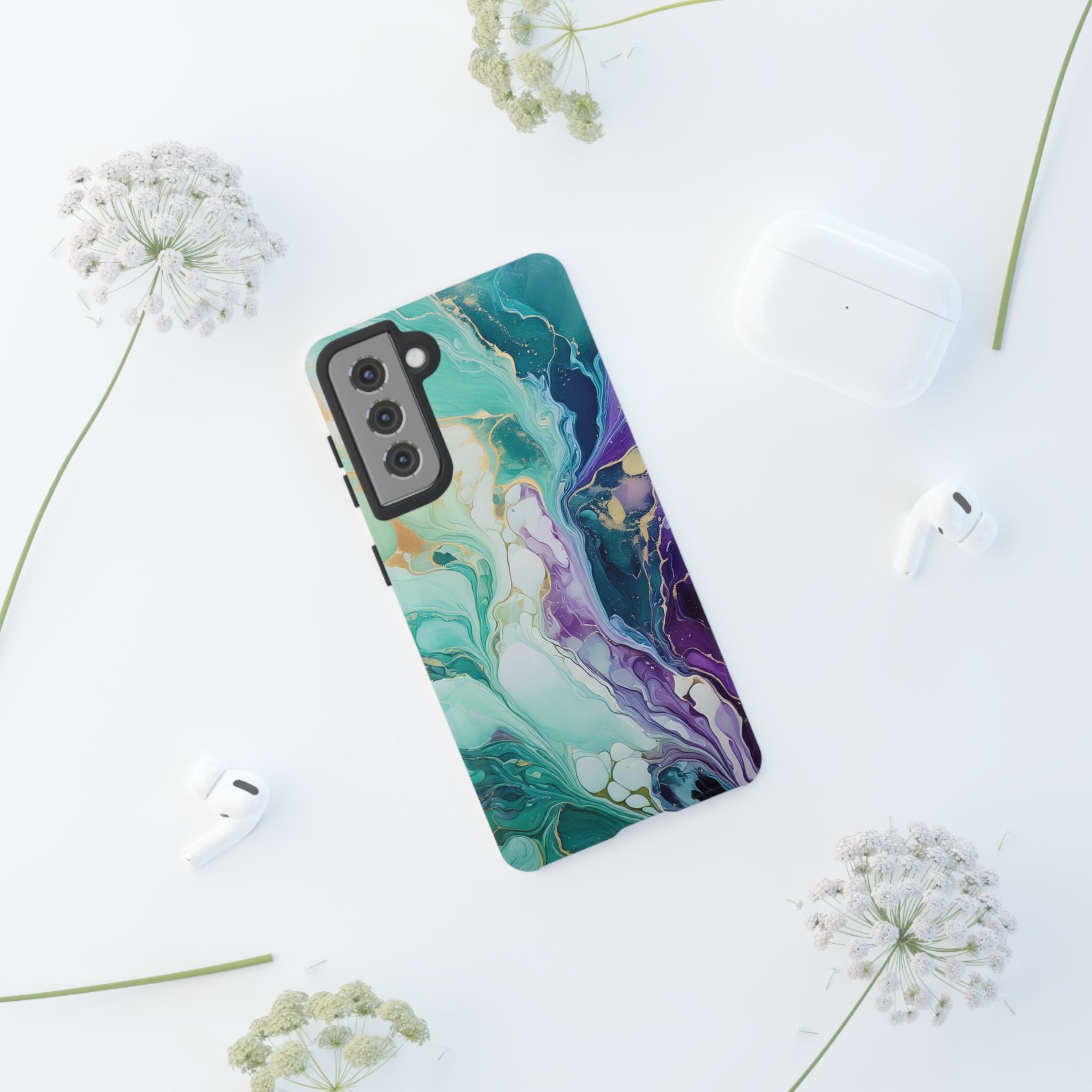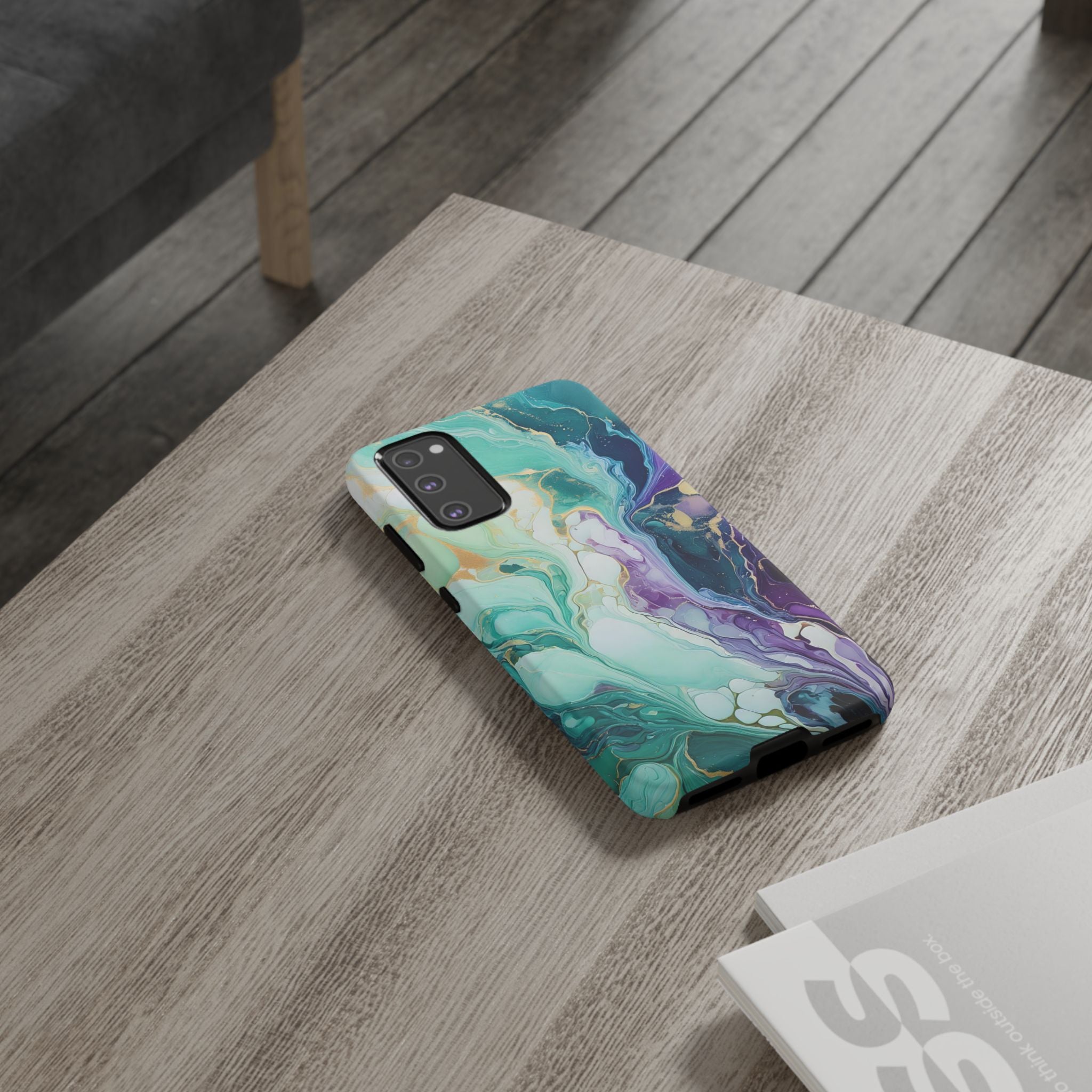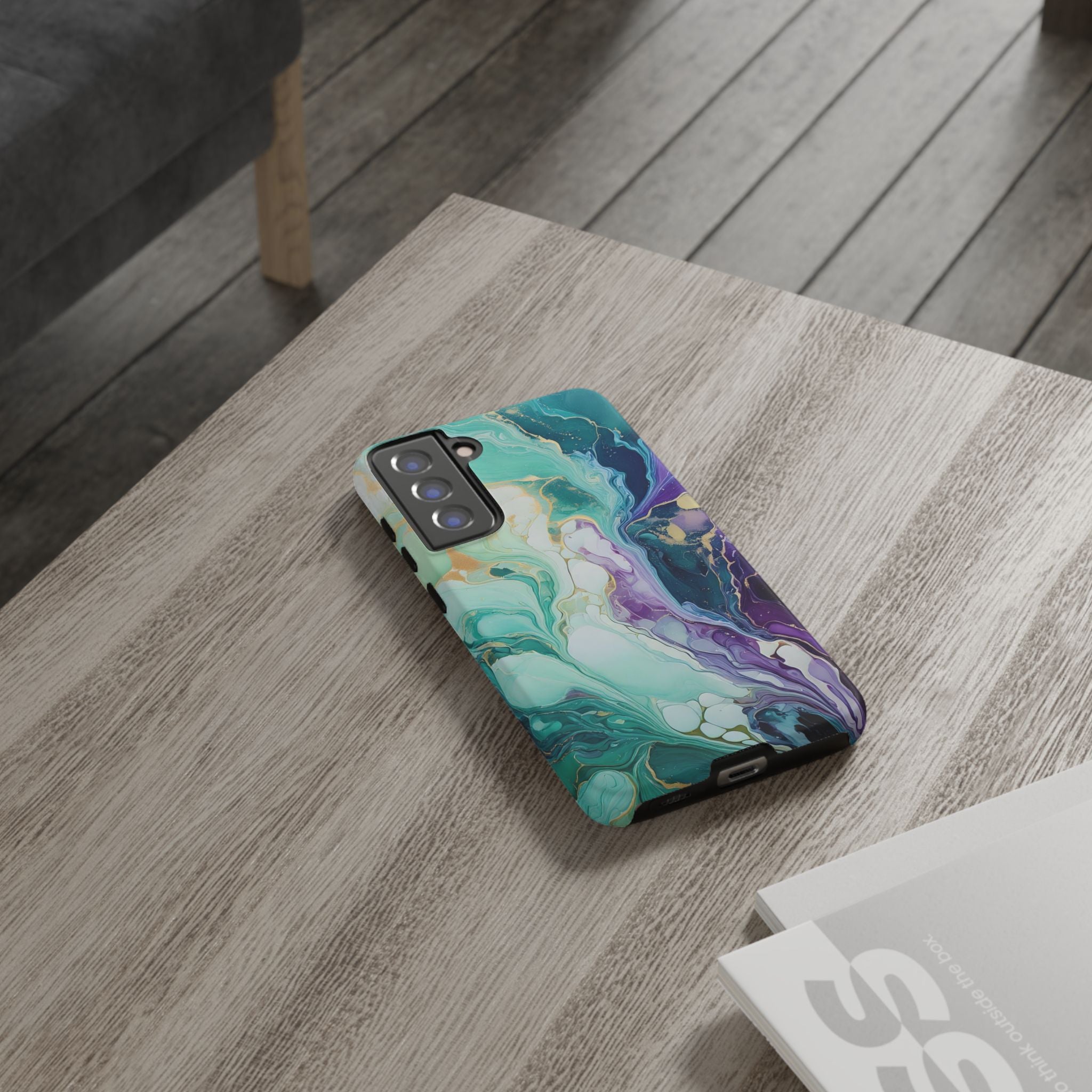 Experience the ultimate phone protection with the Tough Case - Hope. This beautiful case features a stunning marbled design in calming shades of teal, aqua, violet and gold evoking the strength and peace that come with hope. The flowing colors symbolize resilience and renewal and remind us that even in the darkest times, hope shines through.The design extends around the entire case and is sure to make a statement while protecting your phone with style.