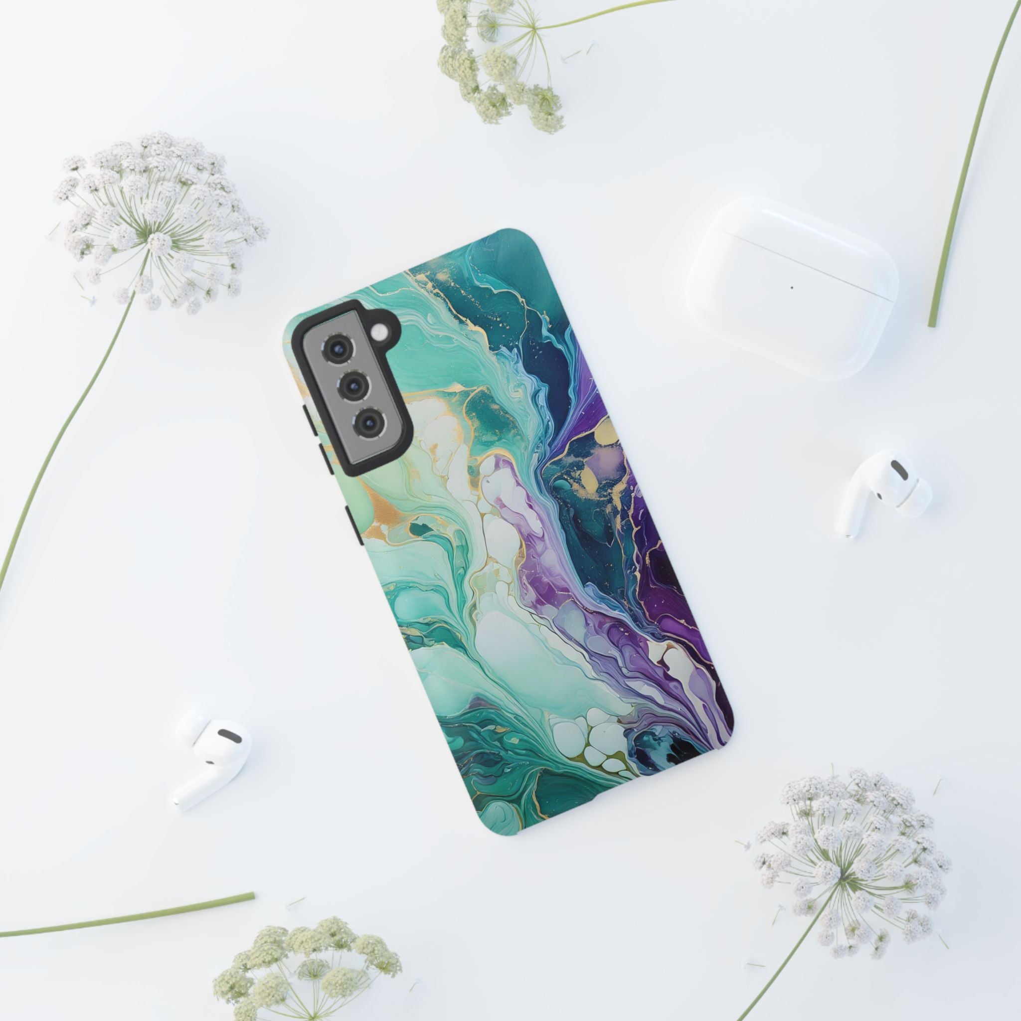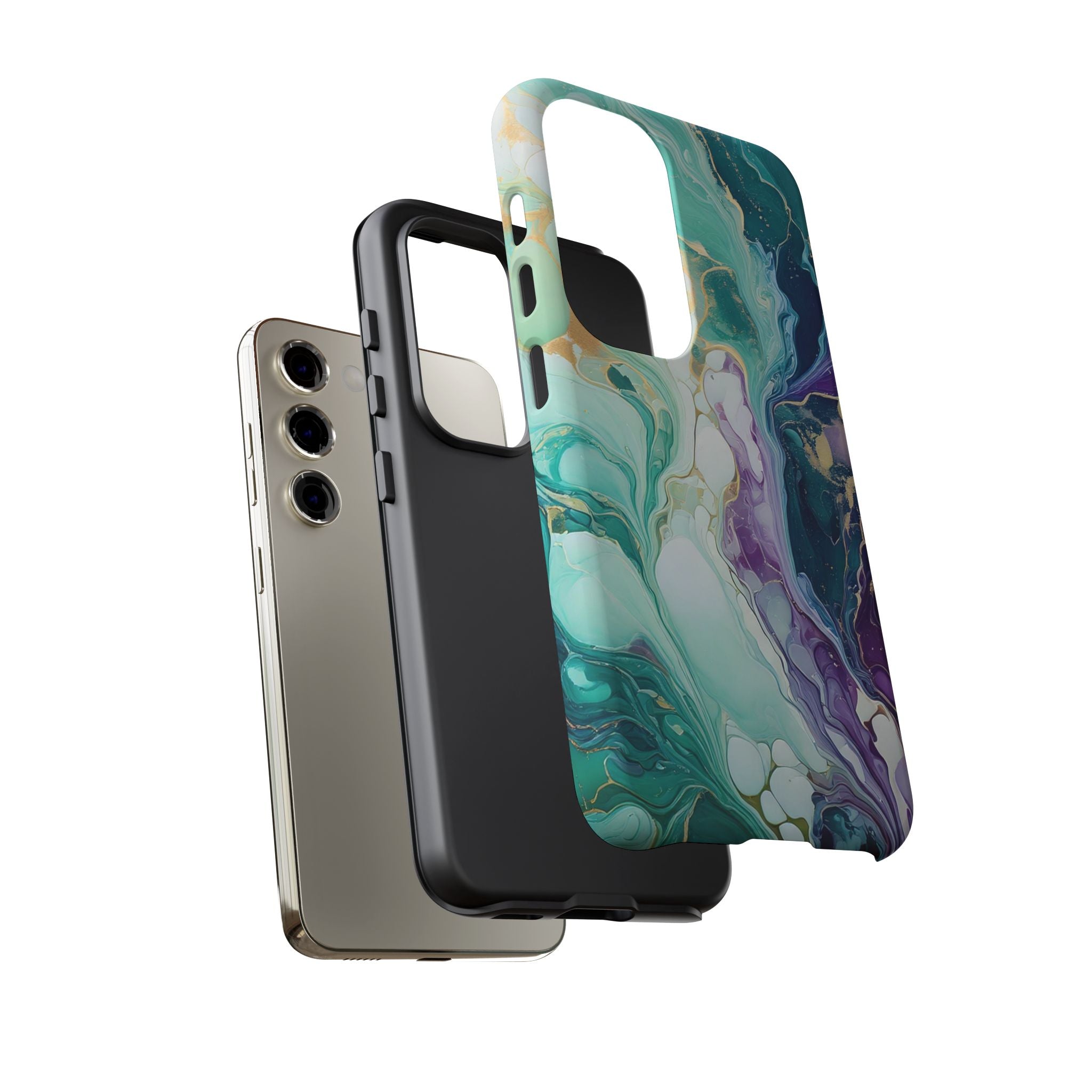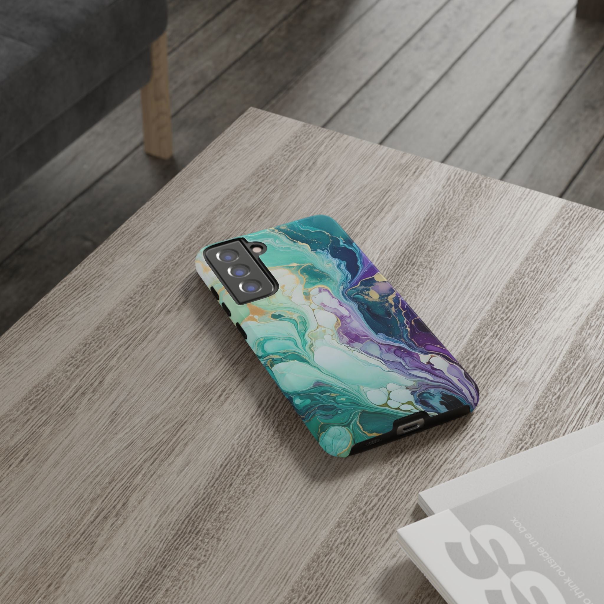 Experience the ultimate phone protection with the Tough Case - Hope. This beautiful case features a stunning marbled design in calming shades of teal, aqua, violet and gold evoking the strength and peace that come with hope. The flowing colors symbolize resilience and renewal and remind us that even in the darkest times, hope shines through.The design extends around the entire case and is sure to make a statement while protecting your phone with style.