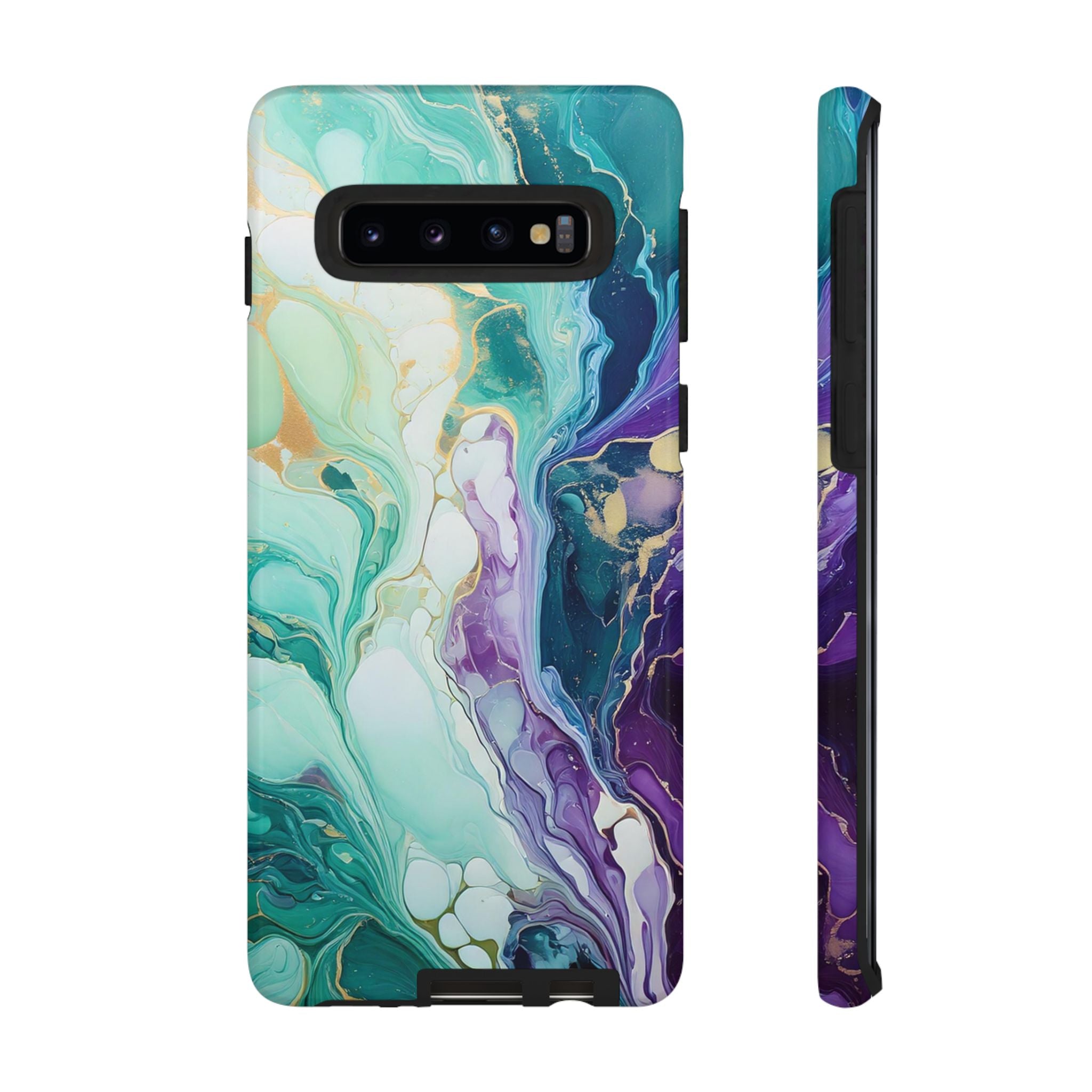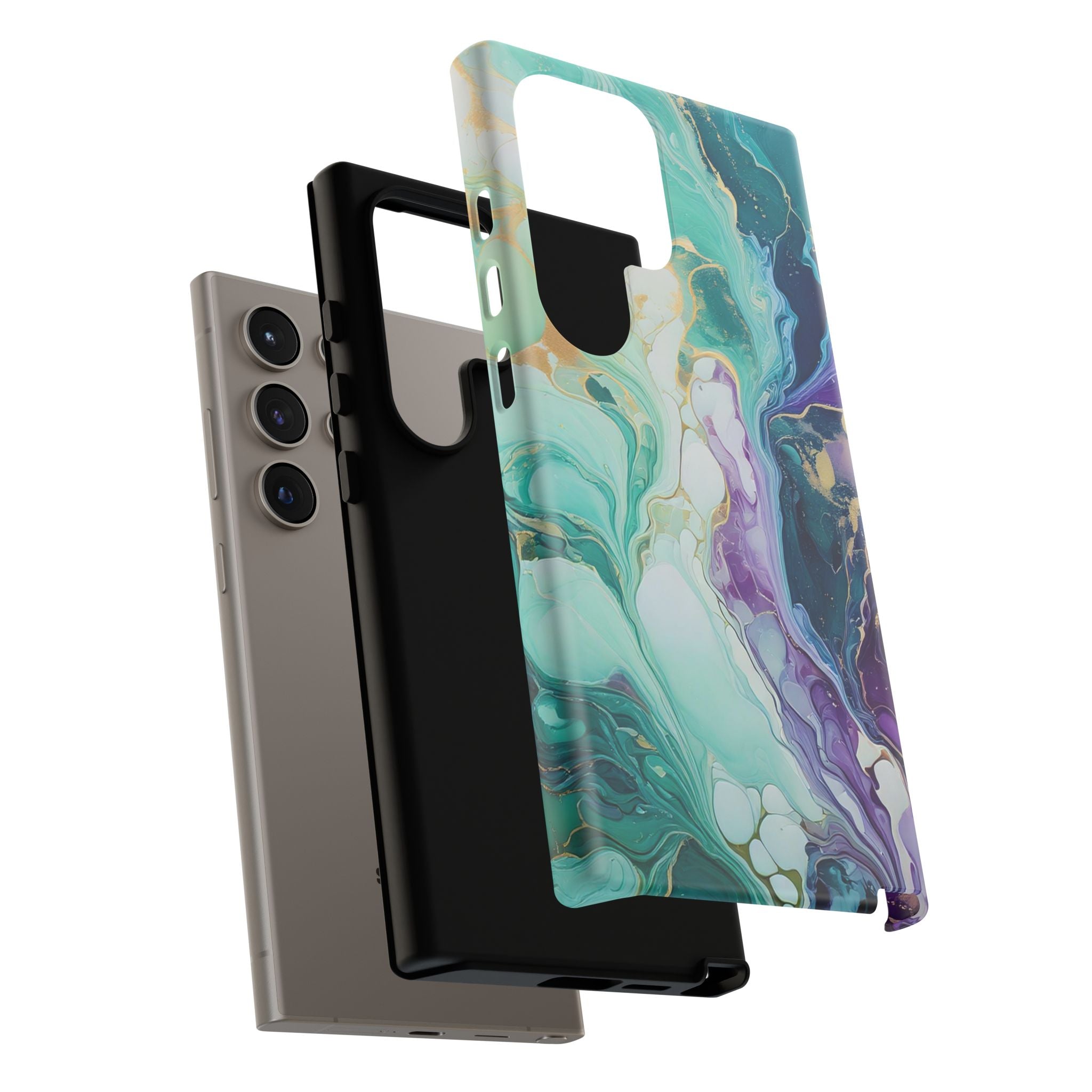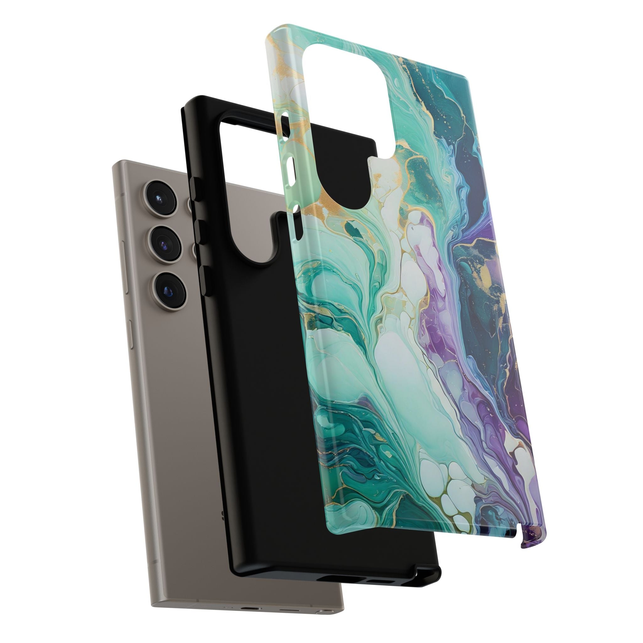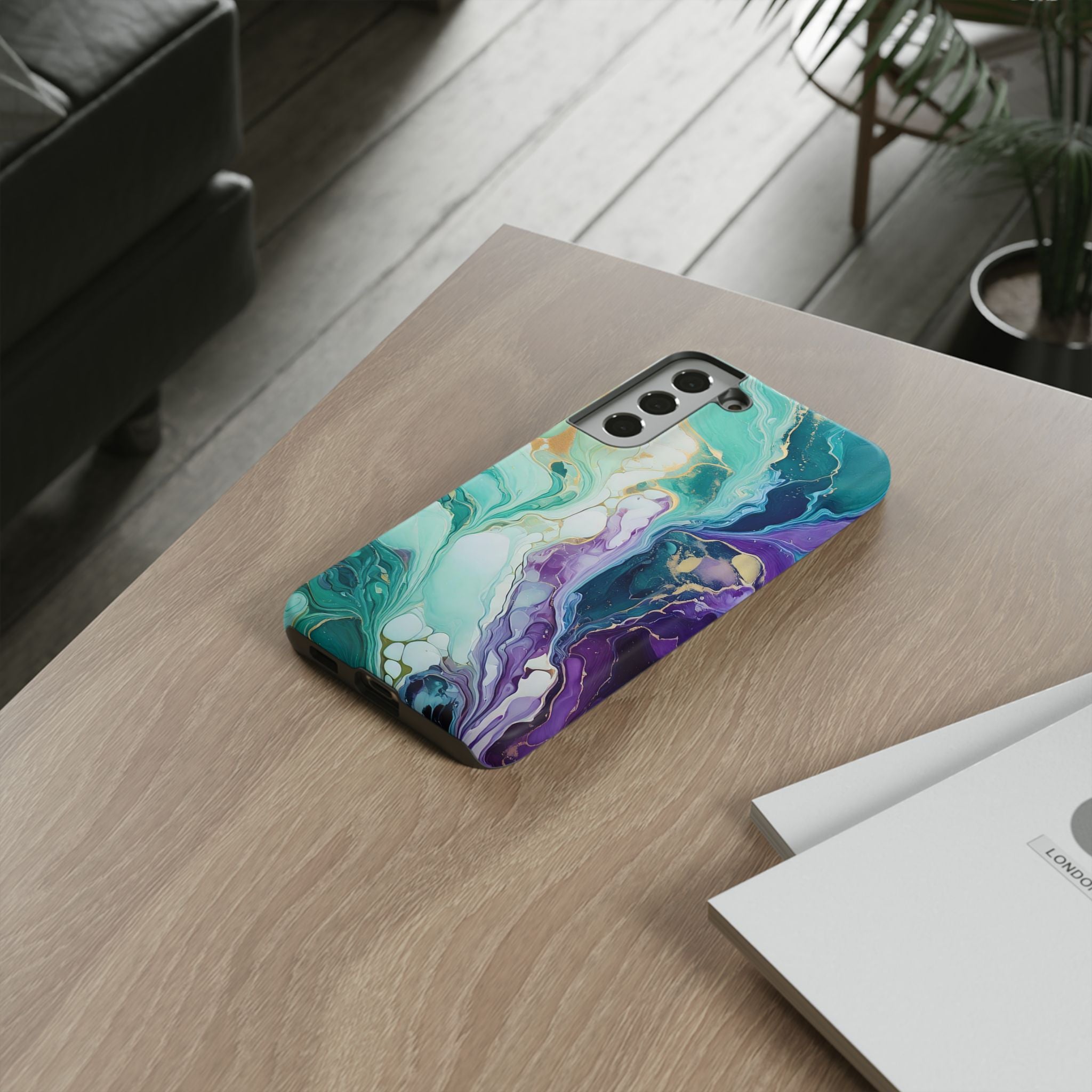 Experience the ultimate phone protection with the Tough Case - Hope. This beautiful case features a stunning marbled design in calming shades of teal, aqua, violet and gold evoking the strength and peace that come with hope. The flowing colors symbolize resilience and renewal and remind us that even in the darkest times, hope shines through.The design extends around the entire case and is sure to make a statement while protecting your phone with style.