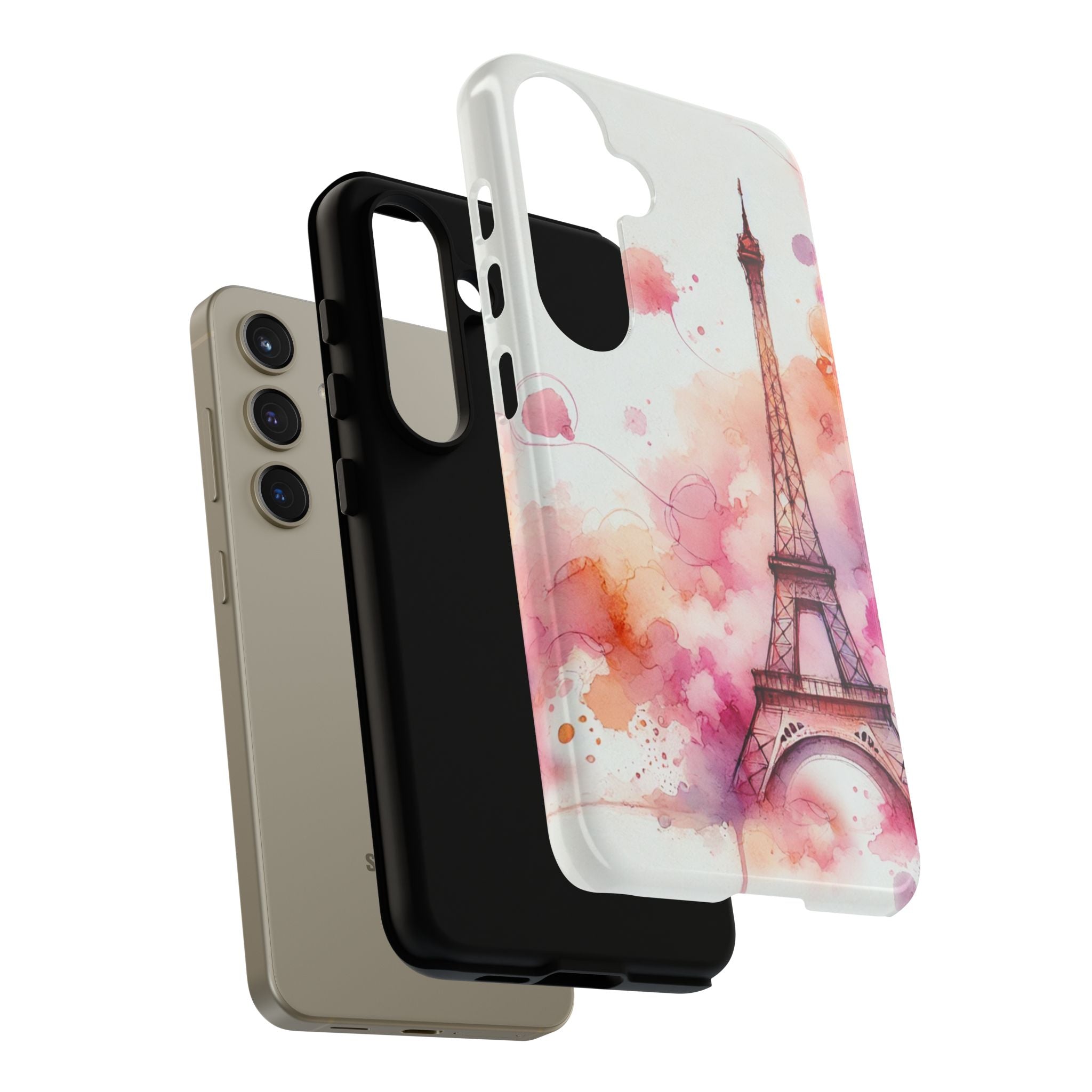 Experience the ultimate phone protection with the Tough Case - Paris. This beautiful case features a stunning watercolor design of Paris, with soft pink hues and the iconic Eiffel Tower, capturing the romantic essence and timeless elegance of the City of Light. The design extends around the entire case and is sure to make a statement while protecting your phone with style.