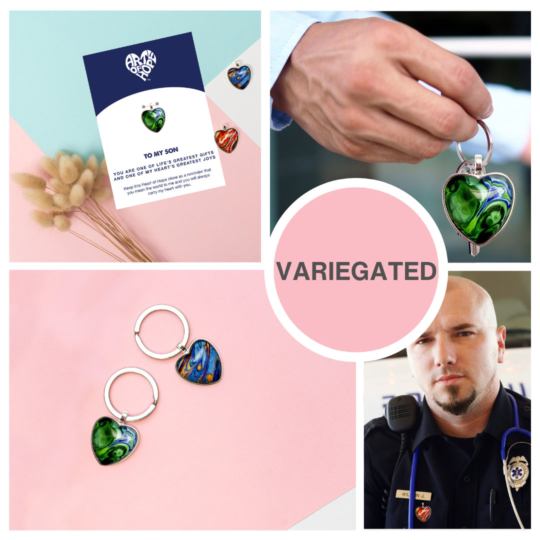 The hearts are made with love and care in our Sydney studio and each one is attached to a card with a safety pin so they can be worn on uniforms, clothes and scrubs. They also include a keyring so they can be kept close on keys and bags. Each one is enclosed in a cellophane bag for protection and there is space at the back of the card for you to write a personal message. Our most popular hearts are the variegated ones which are a delightful mix of colours and shapes. If you prefer, individual colours are also available. Make your Heart of Hope extra special by adding a necklace - chain, wax or suede cord - a suede gift pouch or beautiful gift wrapping.